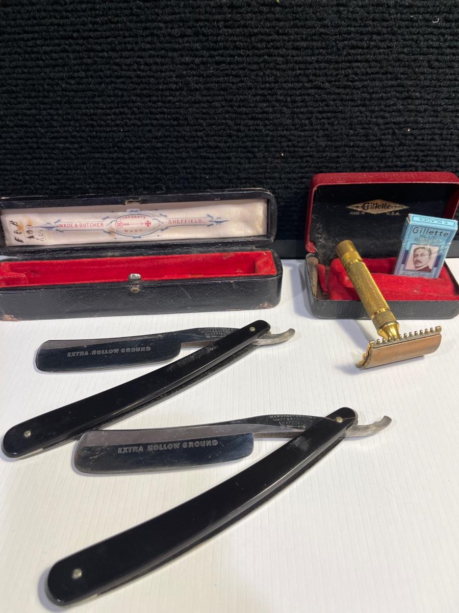 9- Vintage Wade & Butcher Straight Razor Set & Gillette Razor