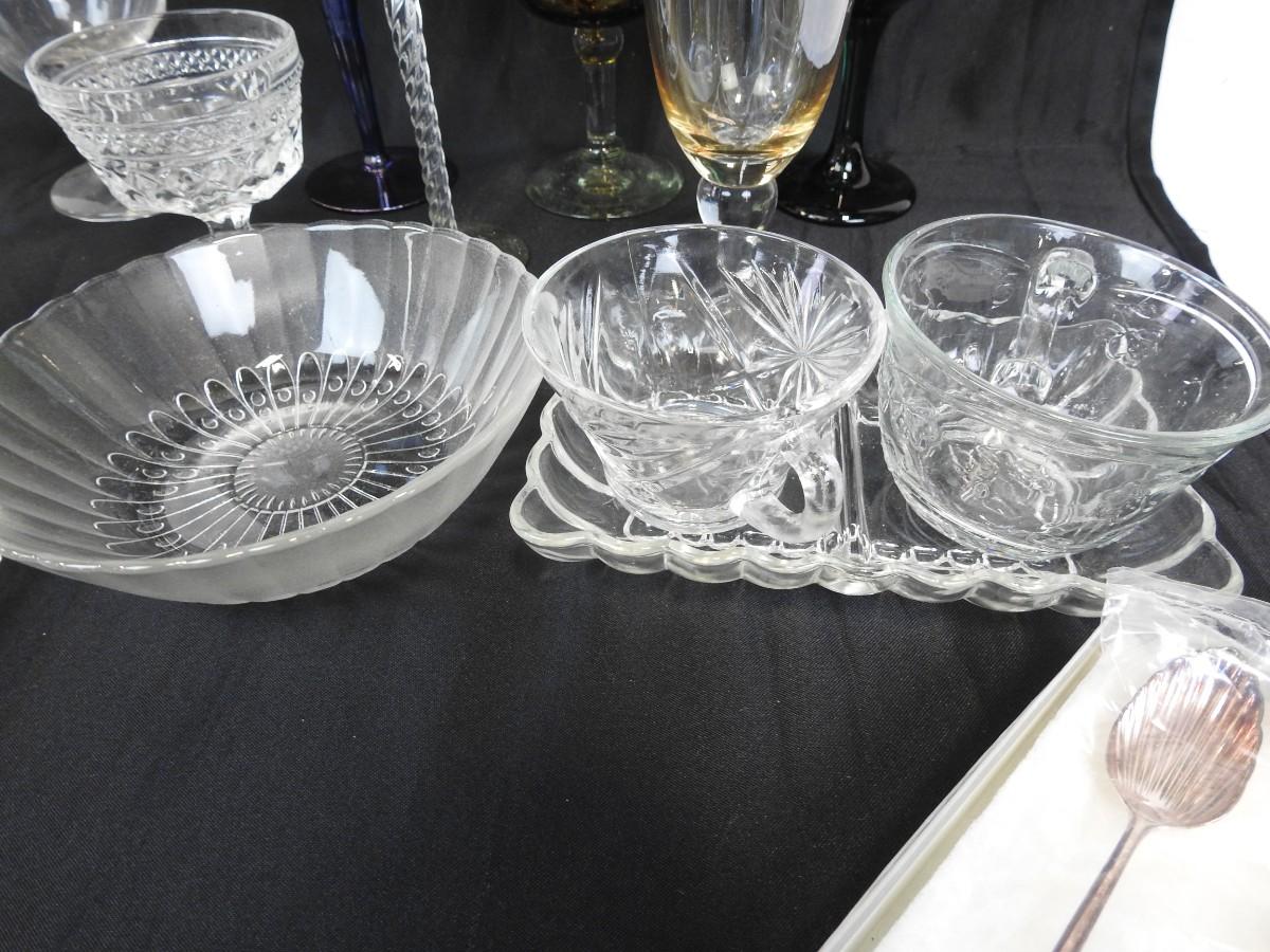 9 Wine Glasses with Blue, Yellow and Green Colors, Decorative Plates, Spoons