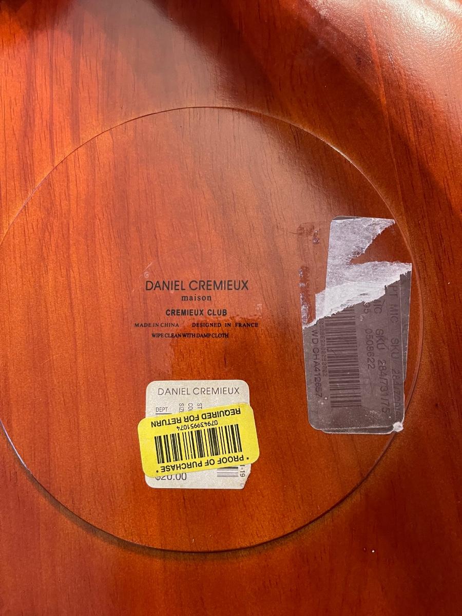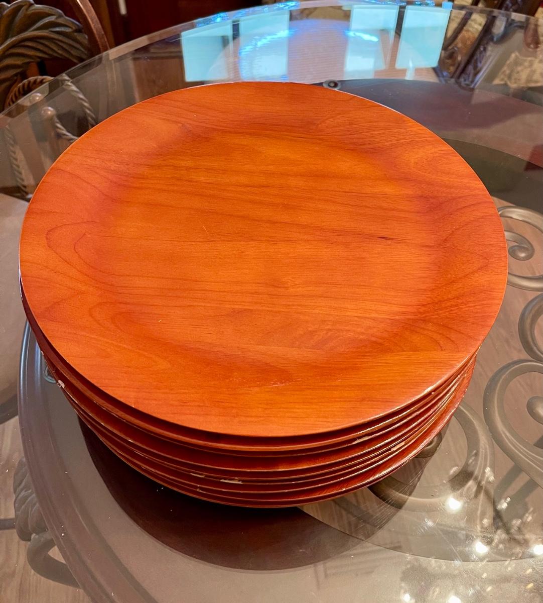 Daniel Cremieux “Maison” wooden charger plates. Some may need a touch up in a spot or two.