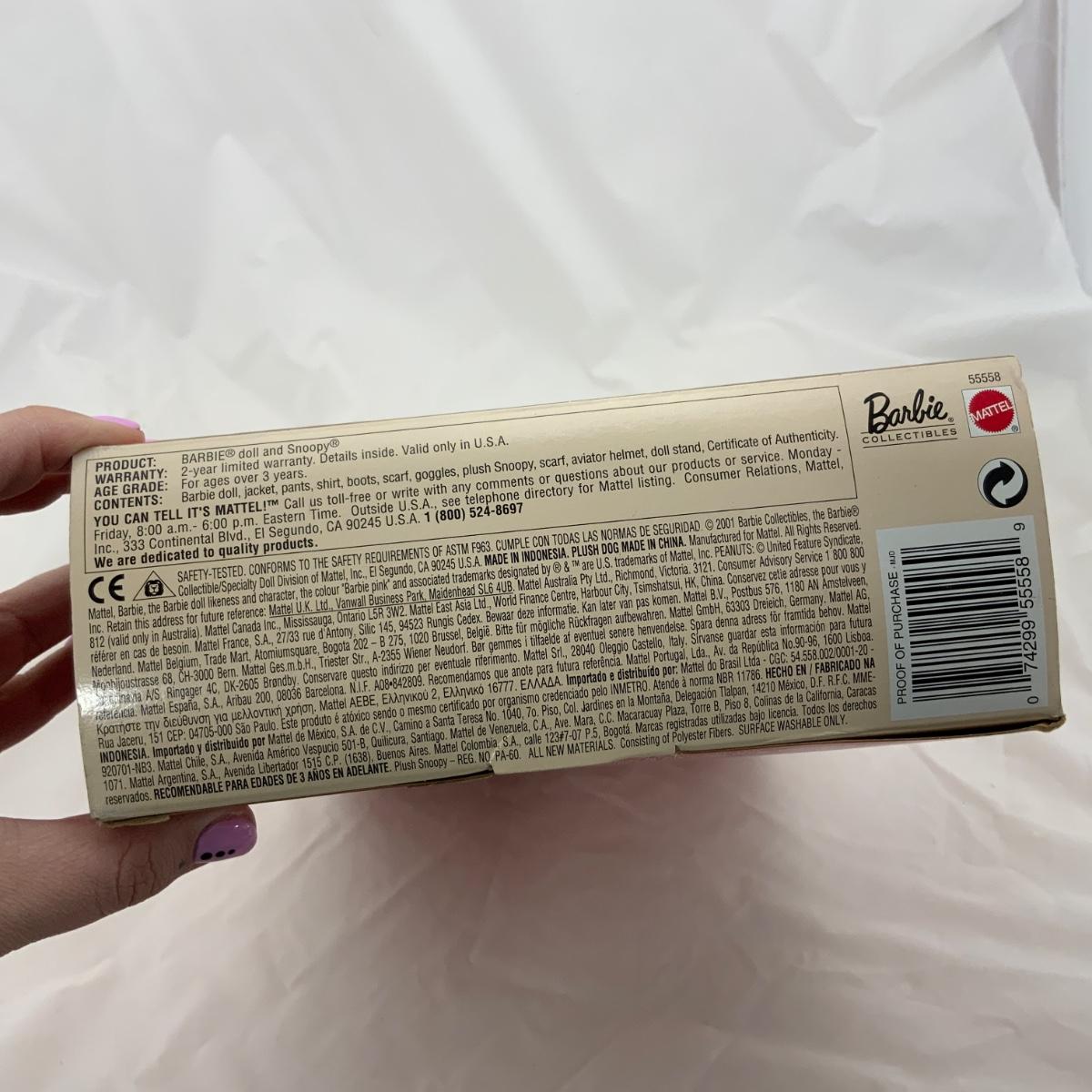 A sweet Barbie and Snoopy Collector Set, produced by Mattel in 2001. Box has some wear, and the plastic is coming away from the cardboard in front. Please see photos for details and condition. !!! Proceeds from this auction will be donated to the NEW COMMUNITY SHELTER in Green Bay, Wisconsin. Please see Sale Description to the Left for more information. !!! ::: Shipping is available on this lot. If you require shipping you must let us know at the close of the auction. We will coordinate with you after the item has been won. Shipping fees will include insurance up to or exceeding the value of all items being mailed. If you have any questions regarding this lot please contact the auctioneer either via this website, by direct email or by phone. PICK UP TIMES and other important information can be found in the TERMS and DESCRIPTION of the auction. Please take a look for pertinent information. Thanks!