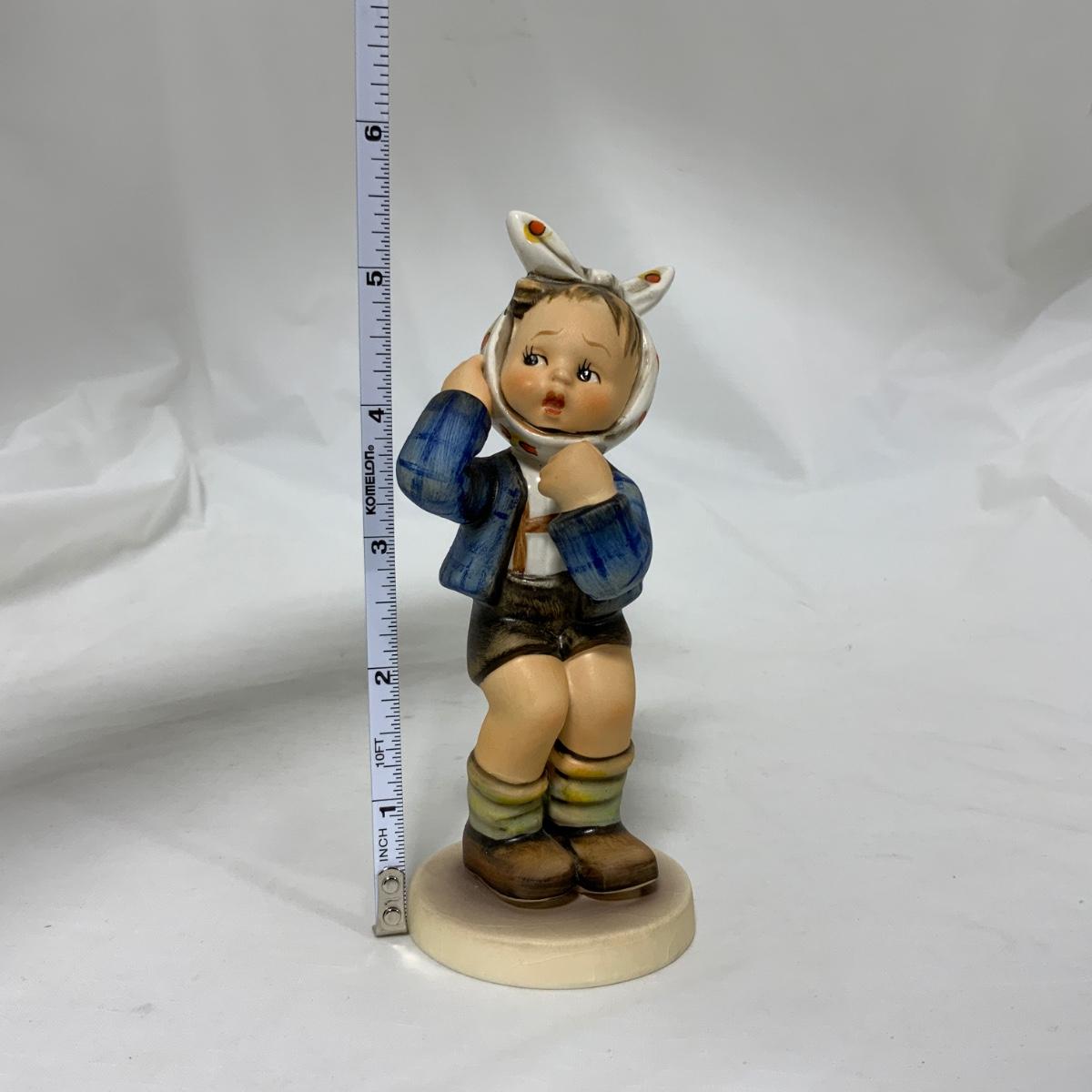 He looks so sweet, although he’s in so much pain. Boy with Toothache, Hum 217. TMK-4. Please see photos for details and condition. Crazing noted. ::: Shipping is available on this lot. If you require shipping you must let us know at the close of the auction. We will coordinate with you after the item has been won. Shipping fees will include insurance up to or exceeding the value of all items being mailed. If you have any questions regarding this lot please contact the auctioneer either via this website, by direct email or by phone. PICK UP TIMES and other important information can be found in the TERMS and DESCRIPTION of the auction. Please take a look for pertinent information. Thanks!