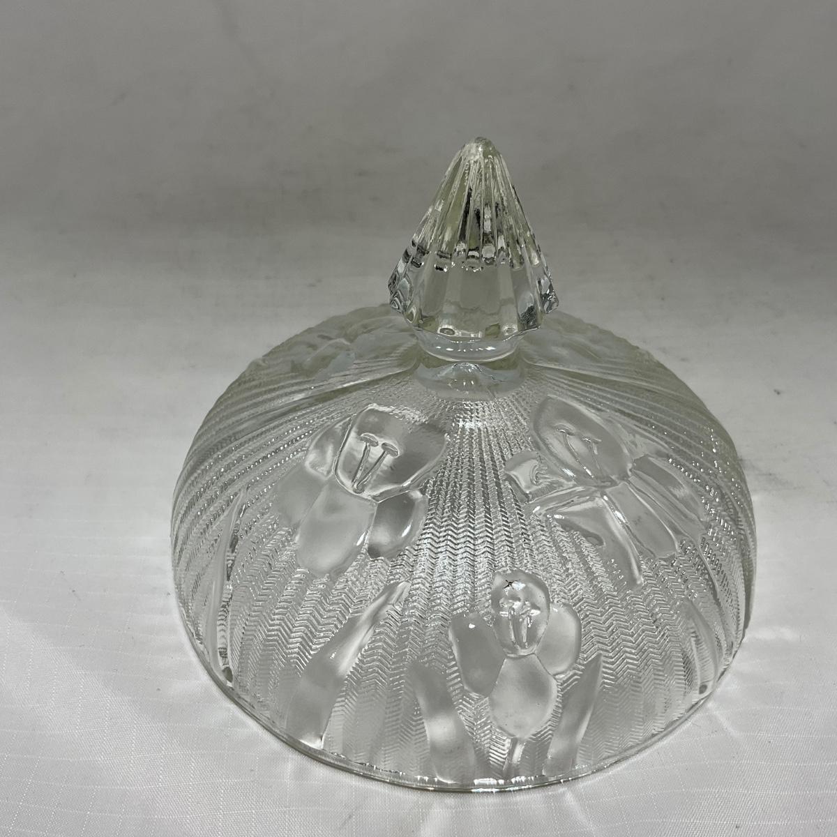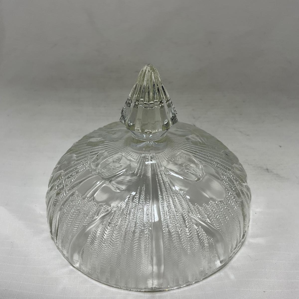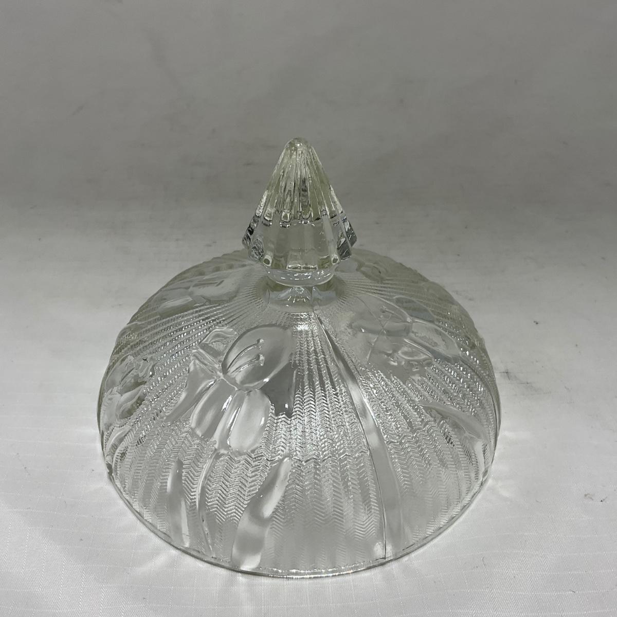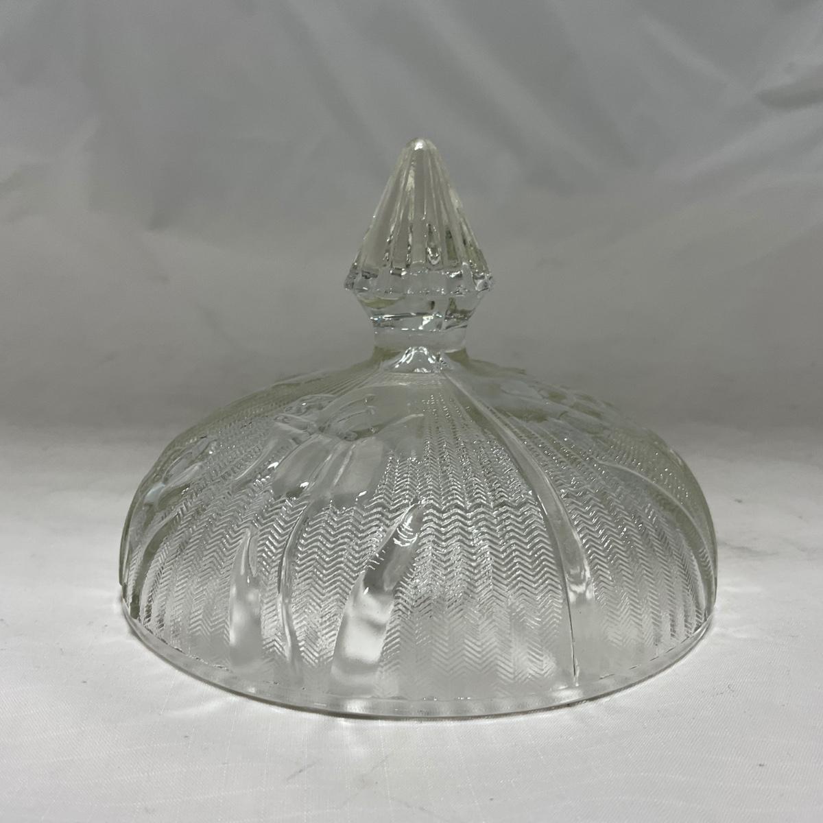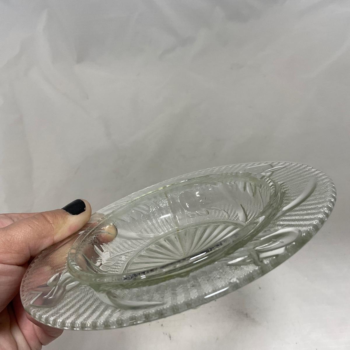 One clear glass covered butter dish with flower details. Please see photos for details and condition. ::: Shipping is available on this lot. If you require shipping you must let us know at the close of the auction. We will coordinate with you after the item has been won. Shipping fees will include insurance up to or exceeding the value of all items being mailed. If you have any questions regarding this lot please contact the auctioneer either via this website, by direct email or by phone. PICK UP TIMES and other important information can be found in the TERMS and DESCRIPTION of the auction. Please take a look for pertinent information. Thanks!