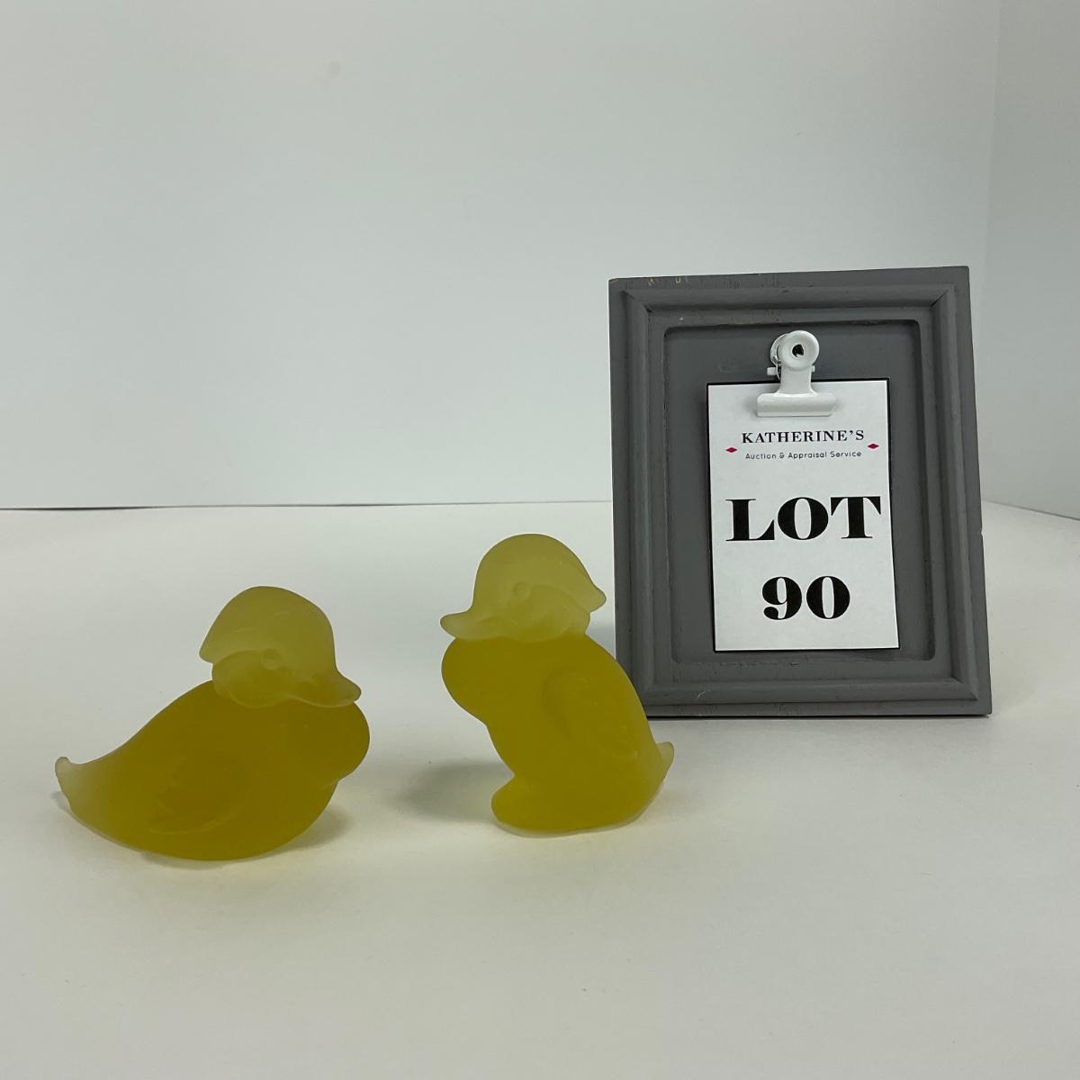 -90- HEISEY | By Imperial Frosted Sunshine Yellow Wood Ducklings | Marked