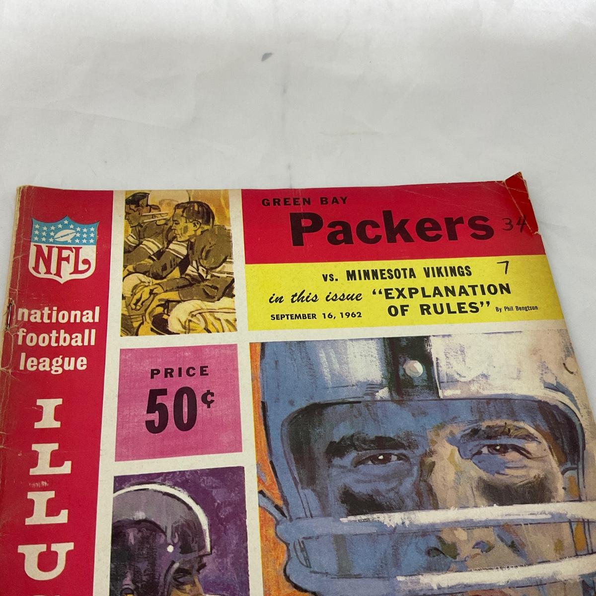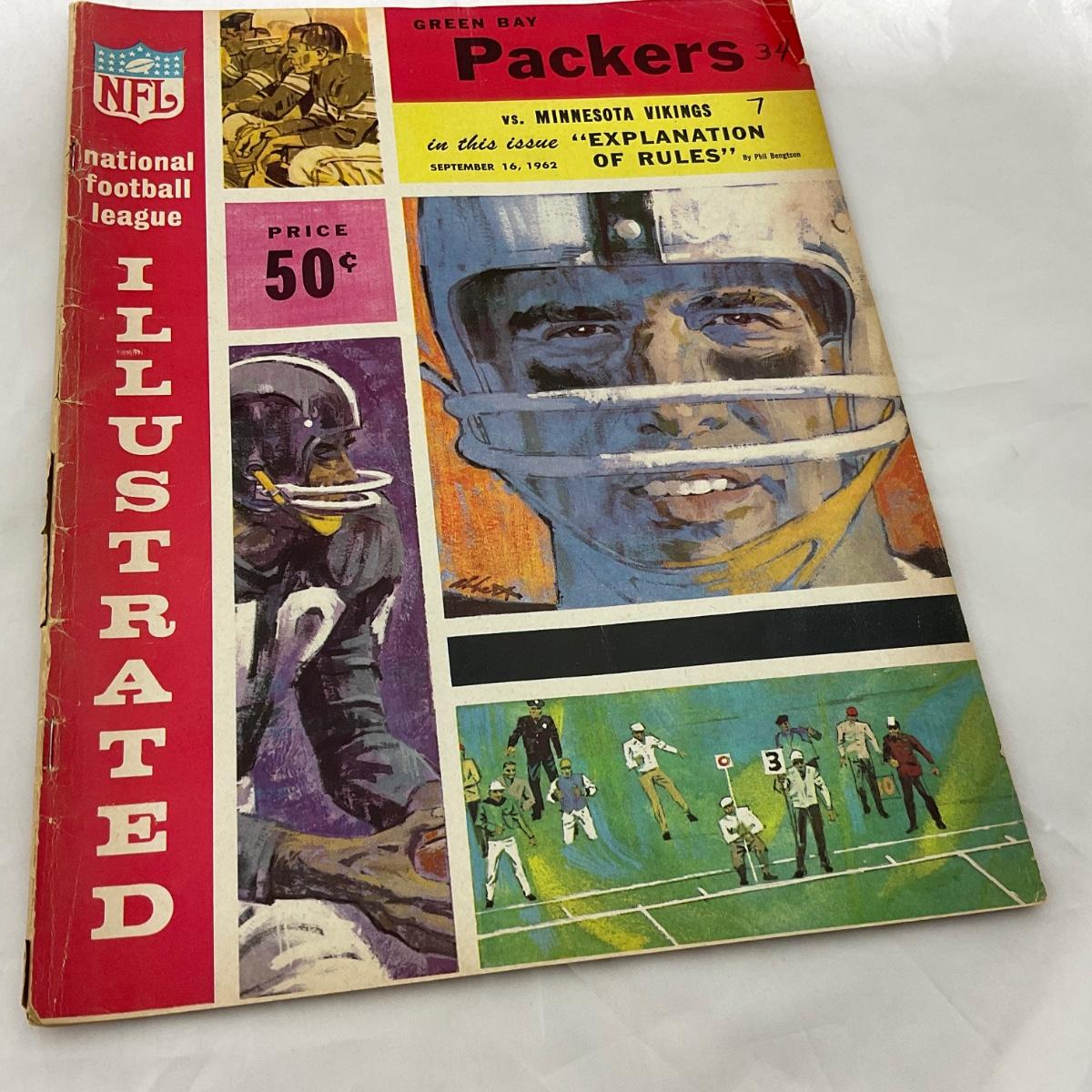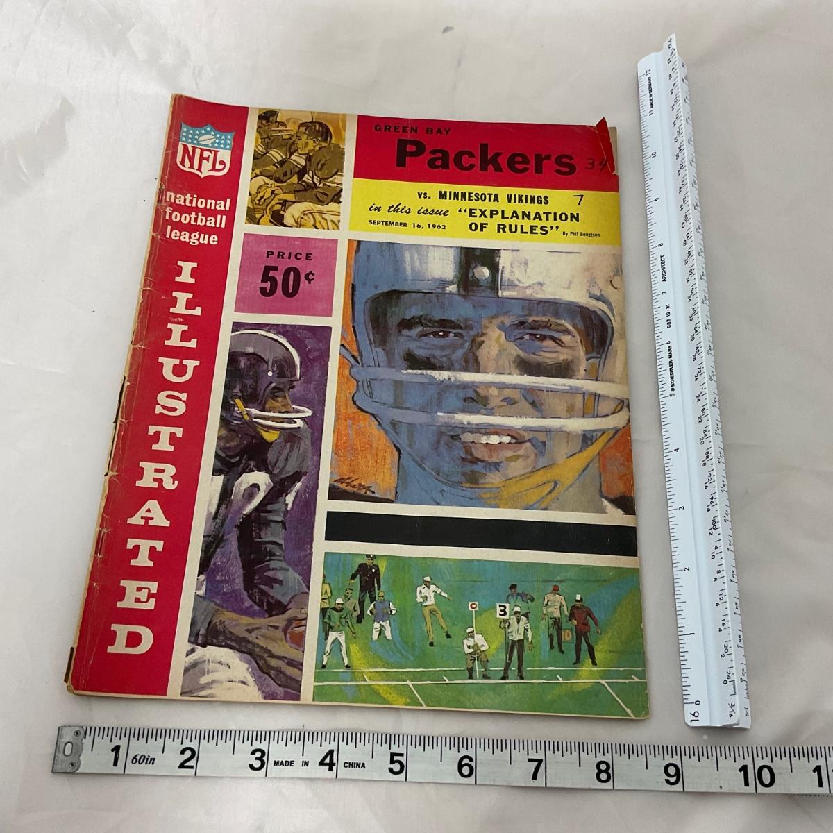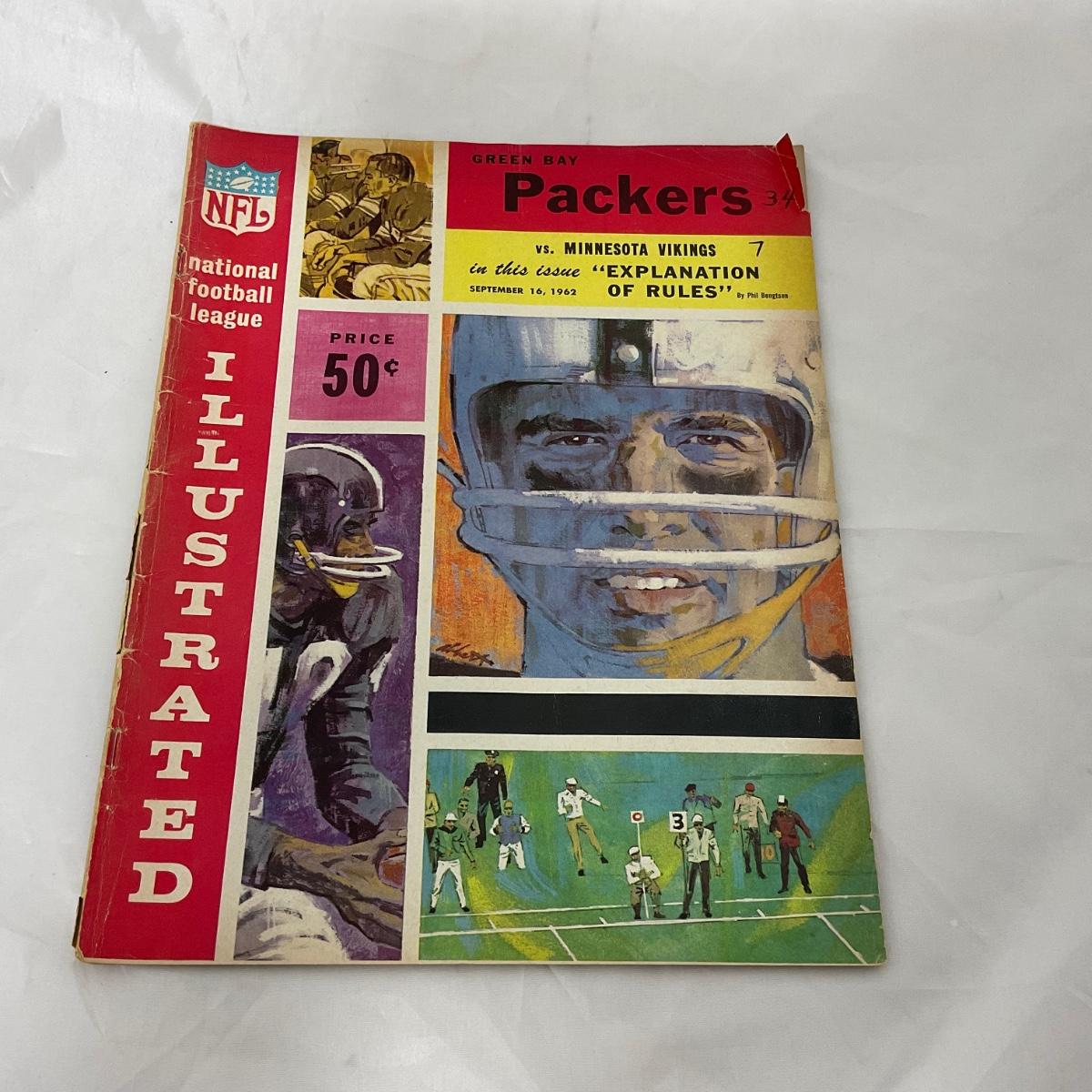 One 1962 Green Bay Packers Vs the Minnesota Vikings program. Please see photos for details and condition. ::: Shipping is available on this lot. If you require shipping you must let us know at the close of the auction. We will coordinate with you after the item has been won. Shipping fees will include insurance up to or exceeding the value of all items being mailed. If you have any questions regarding this lot please contact the auctioneer either via this website, by direct email or by phone. PICK UP TIMES and other important information can be found in the TERMS and DESCRIPTION of the auction. Please take a look for pertinent information. Thanks!