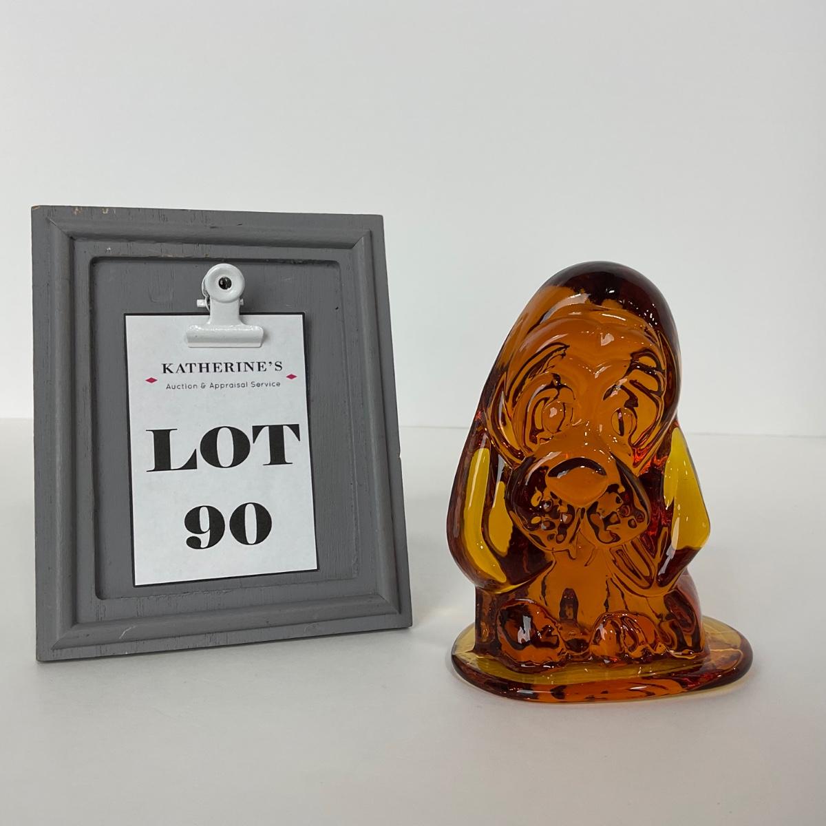 One Viking mid century amber colored hound dog paperweight. 3 inches wide by 4 1/4 inches tall. This piece has no damage, and appears to be in great shape with no visable chips, cracks, or broken pieces. Please see photos for details and condition. Any condition statement is given as a courtesy to a client, is an opinion, and should not be treated as a statement of fact. Reference to condition written, oral or within a condition report shall not be regarded as a full account of condition and may not include all defects, alterations, or restorations. Absence of a condition report does not imply a lot is flawless or lacking imperfections or damage. Katherine’s Auction & Appraisal Service shall have no responsibility for any error or omission. Returns shall not be accepted on the basis of condition. ::: Shipping is available on this lot. If you require shipping you must let us know at the close of the auction. We will coordinate with you after the item has been won. Shipping fees will include insurance up to or exceeding the value of all items being mailed. If you have any questions regarding this lot please contact the auctioneer either via this website, by direct email or by phone. PICK UP TIMES and other important information can be found in the TERMS and DESCRIPTION of the auction. Please take a look for pertinent information. Thanks!