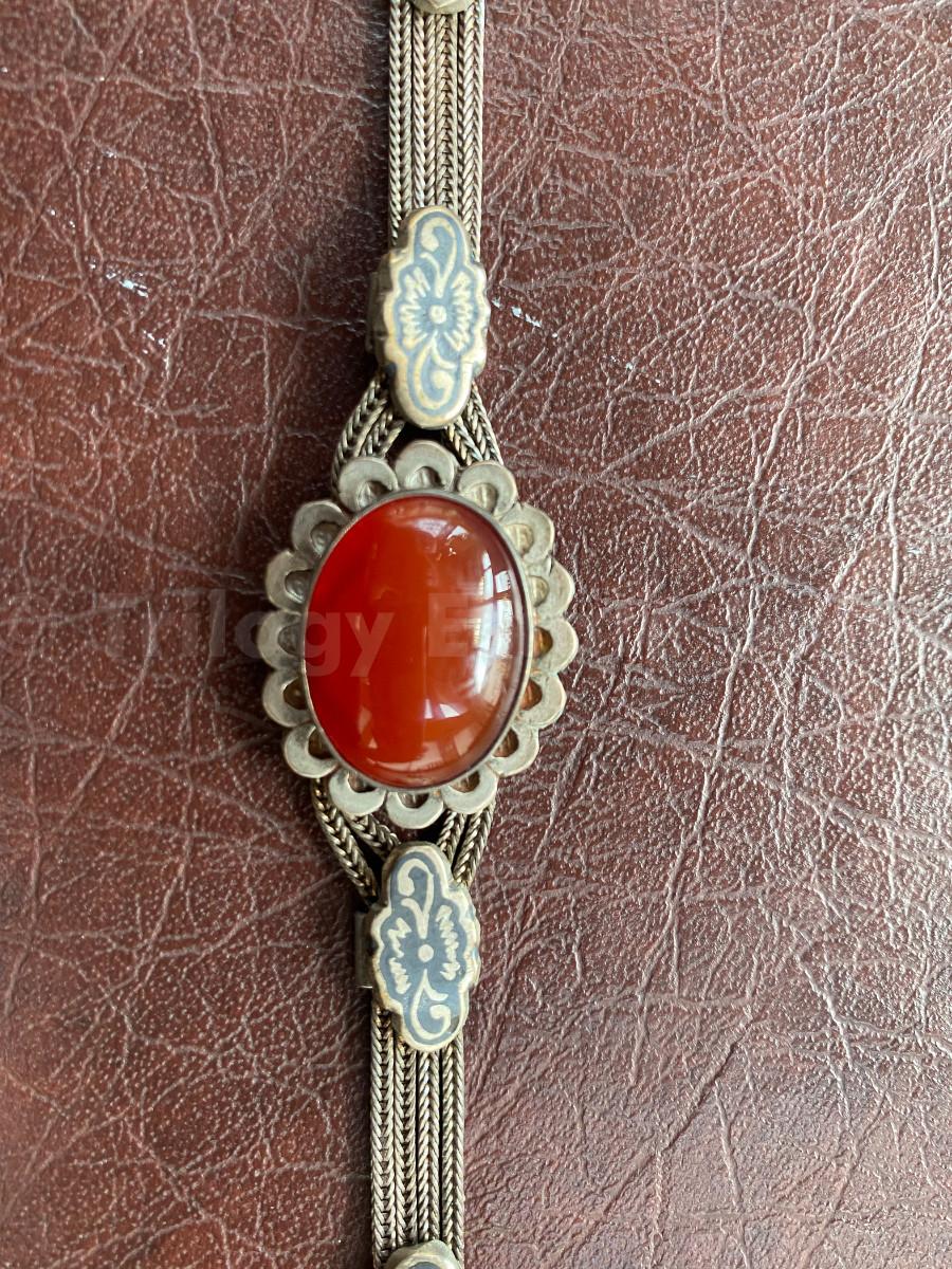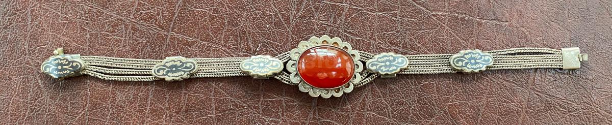 900 Standard Silver Bracelet with carnelian cabochon, Persian .740 ozt