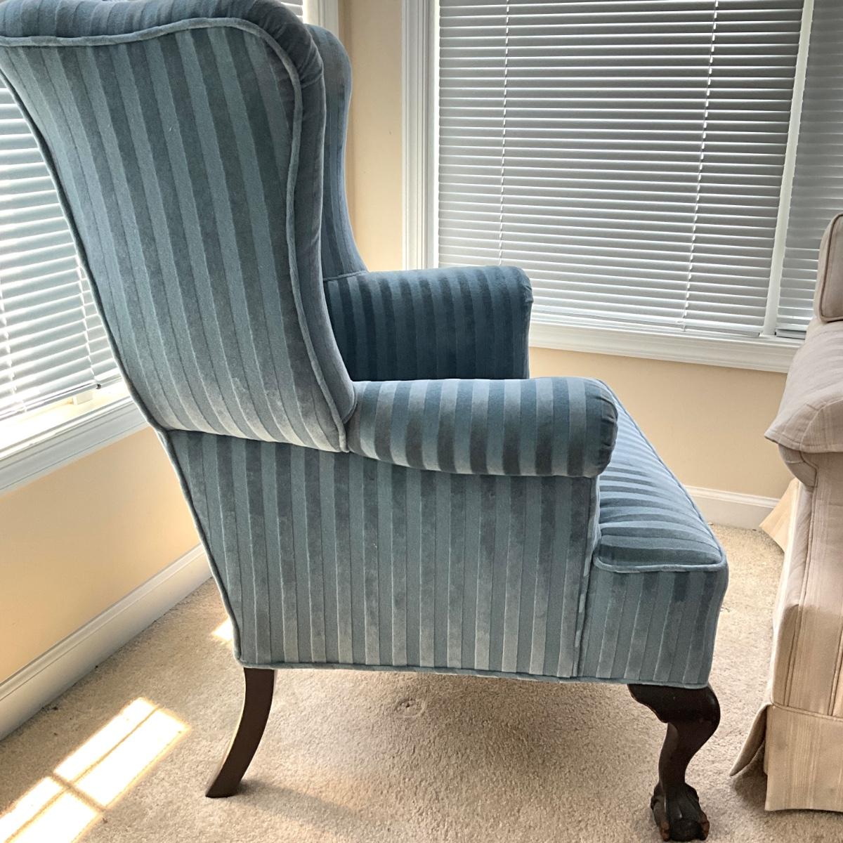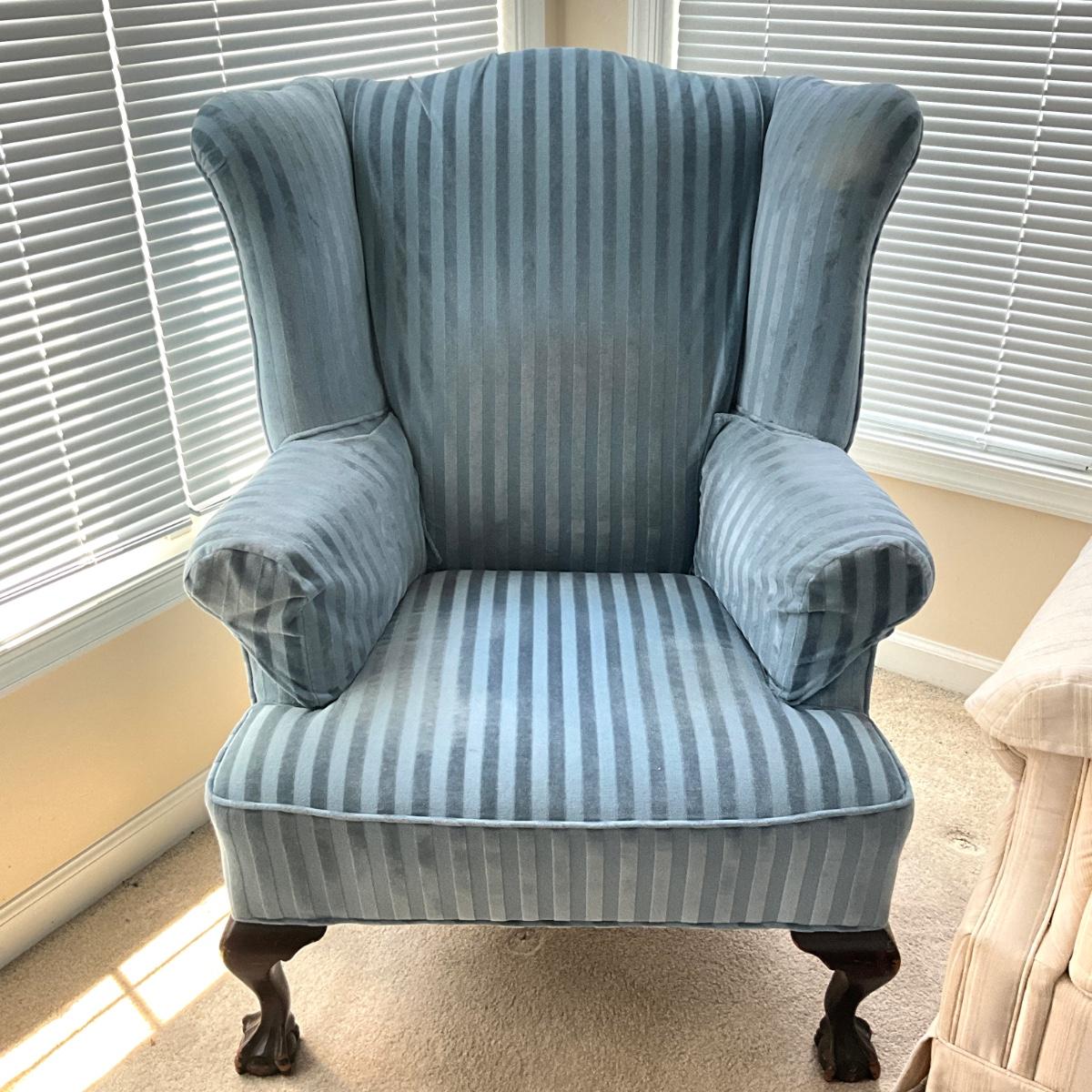 904 Antique Chippendale Upholstered Wingback Chair with Extra Back Sleeve and Arm Sleeve