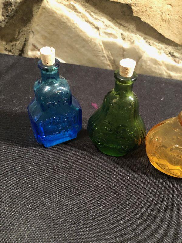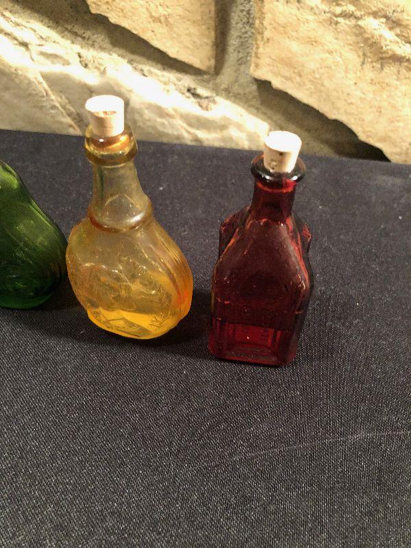 #905 (4) Miniature Bottles with Corks Colored Glass