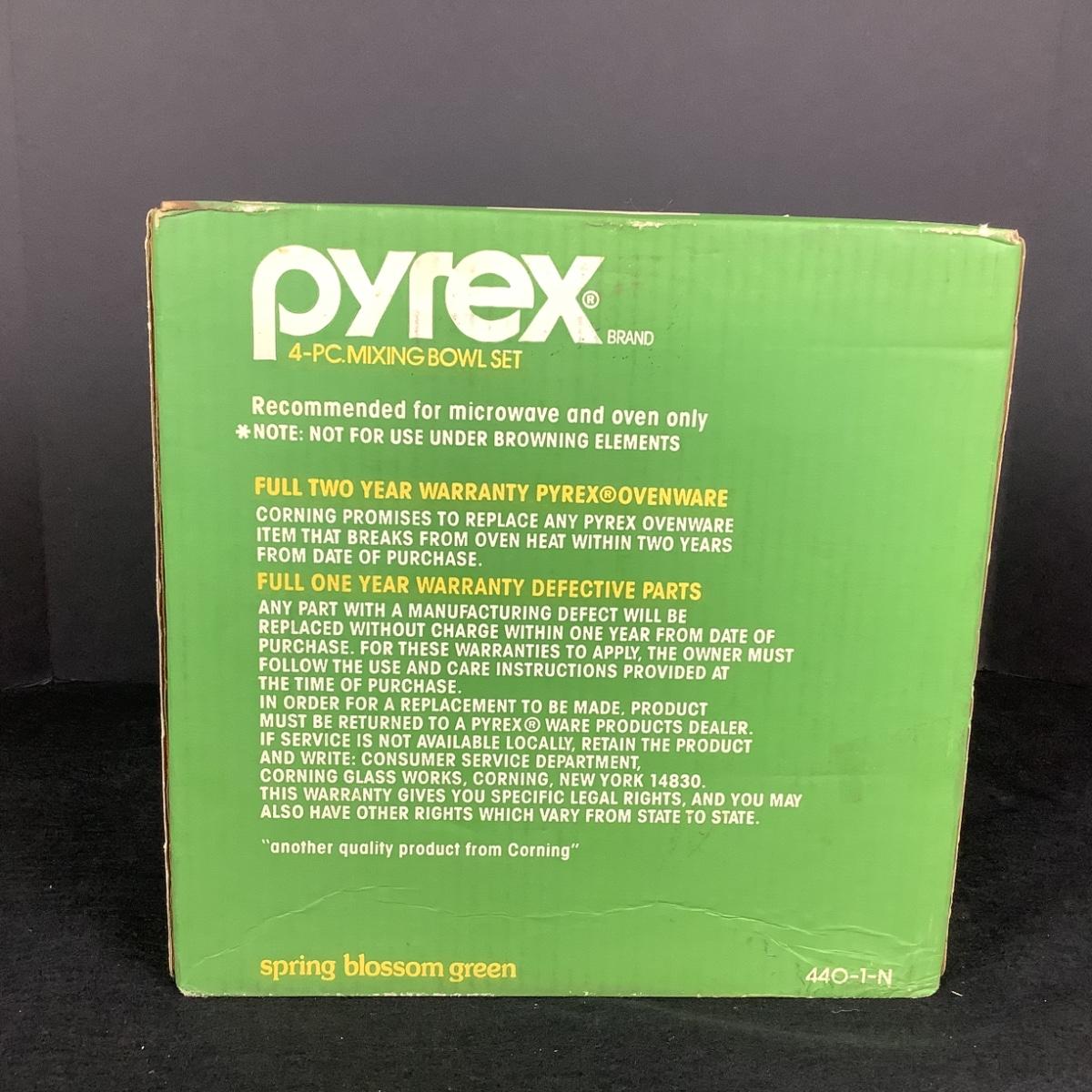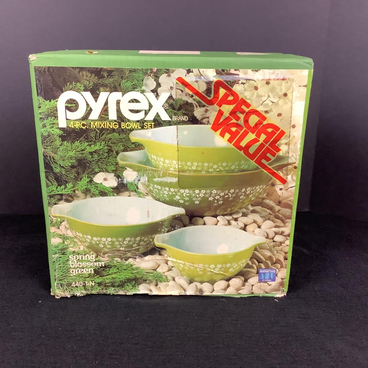 905 New in Box Vintage 4pc Pyrex Mixing Bowl Set Spring Blossom Green