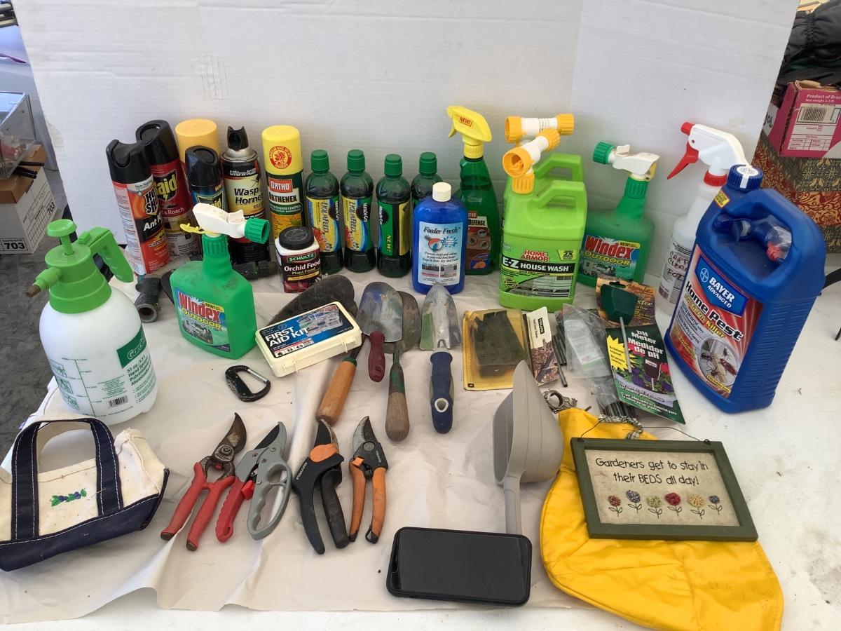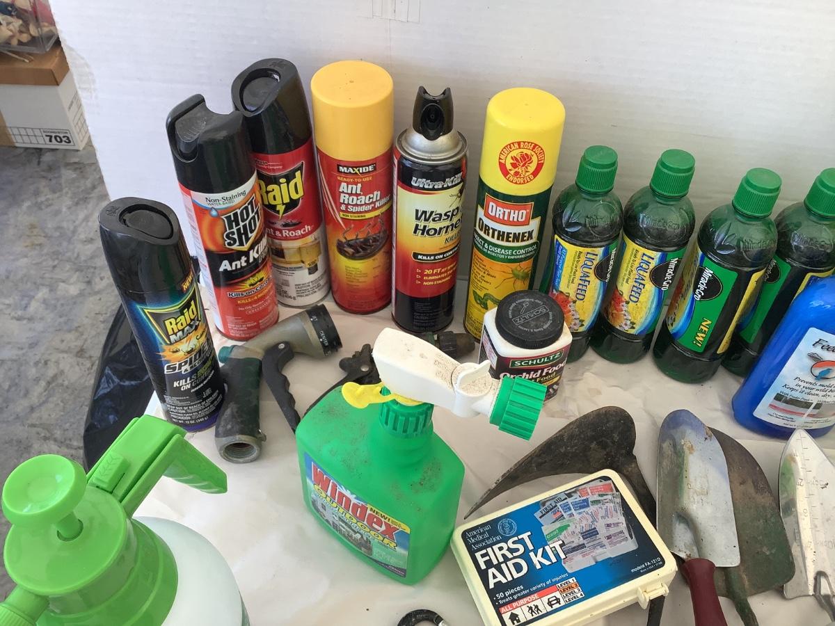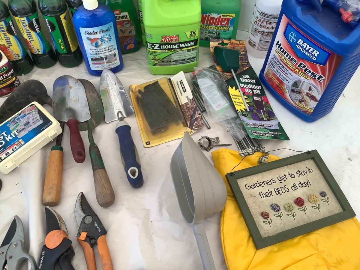 LOT of Garden Tools, Pesticides, Garden Shears, Etc.