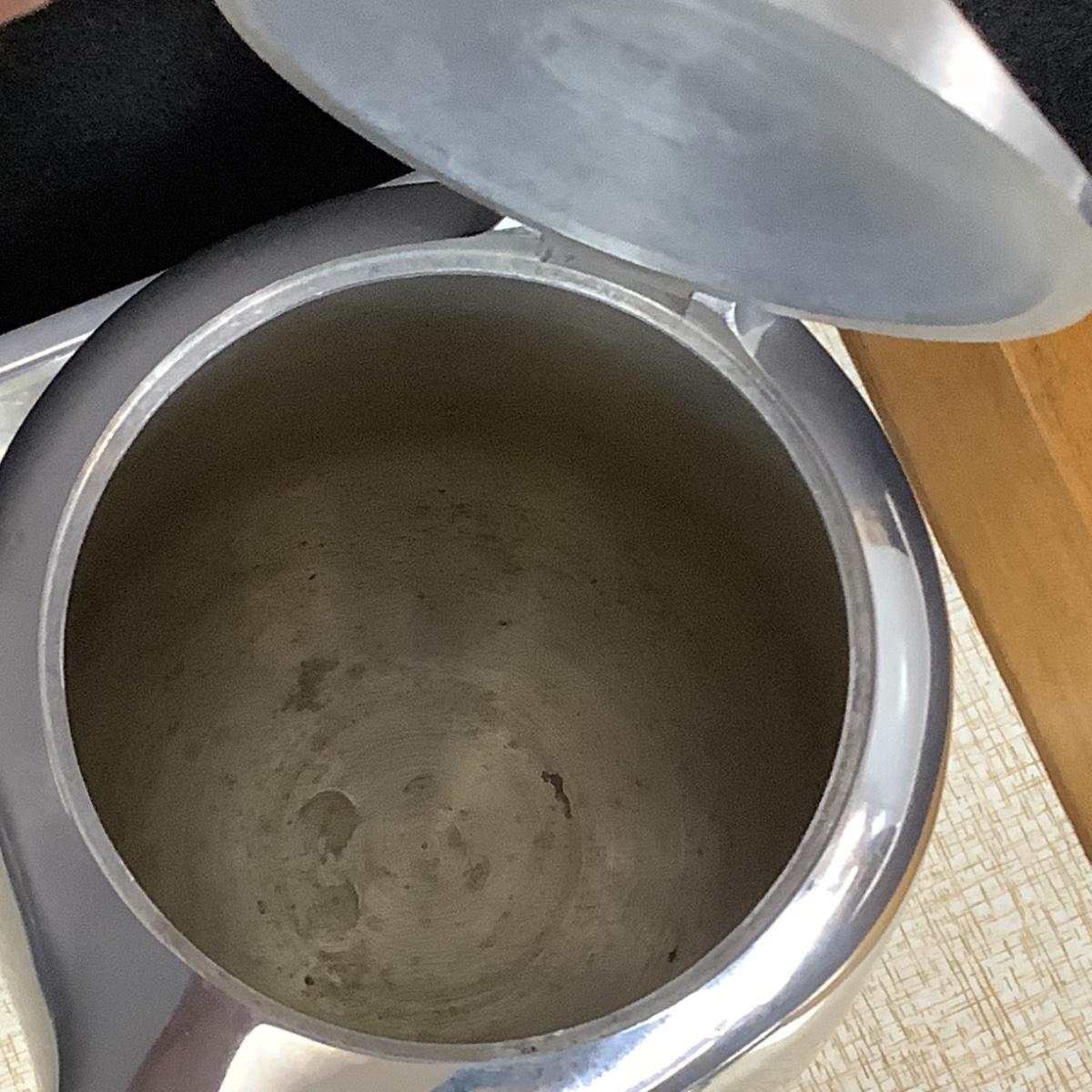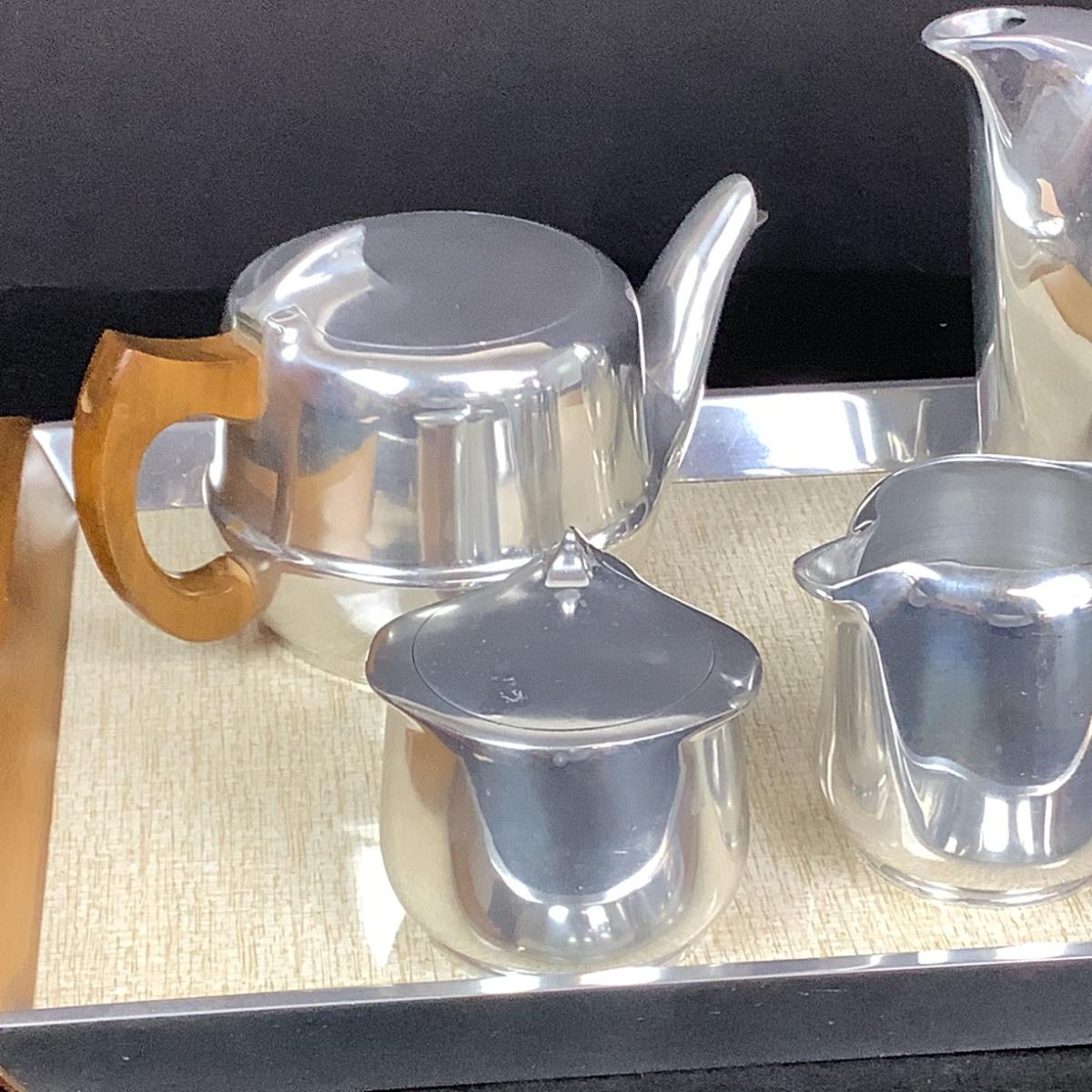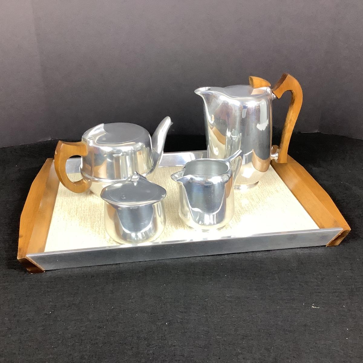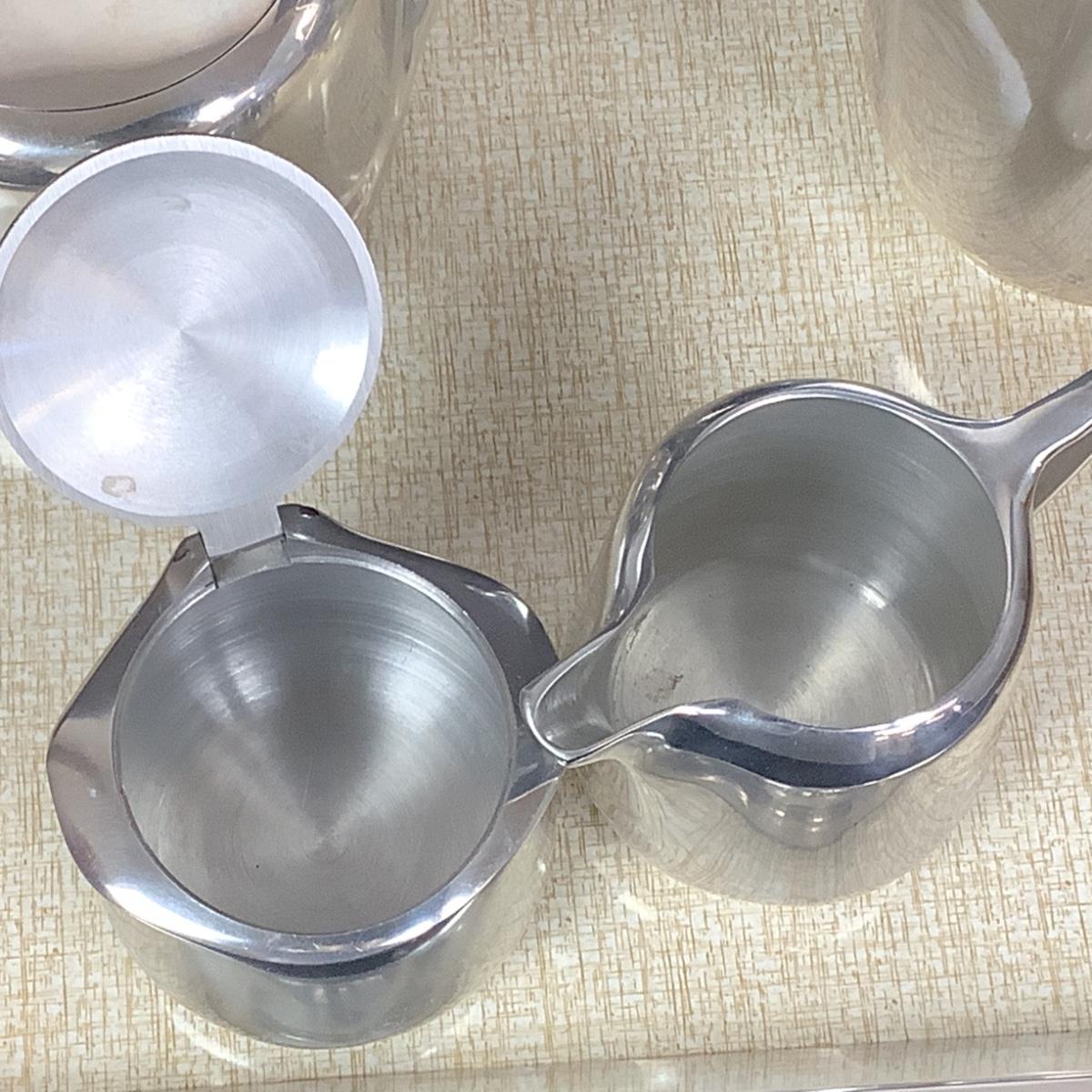 Large pot measures approximately 9" high , short pot is 4" high , creamer is 4" high, sugar is 3" high