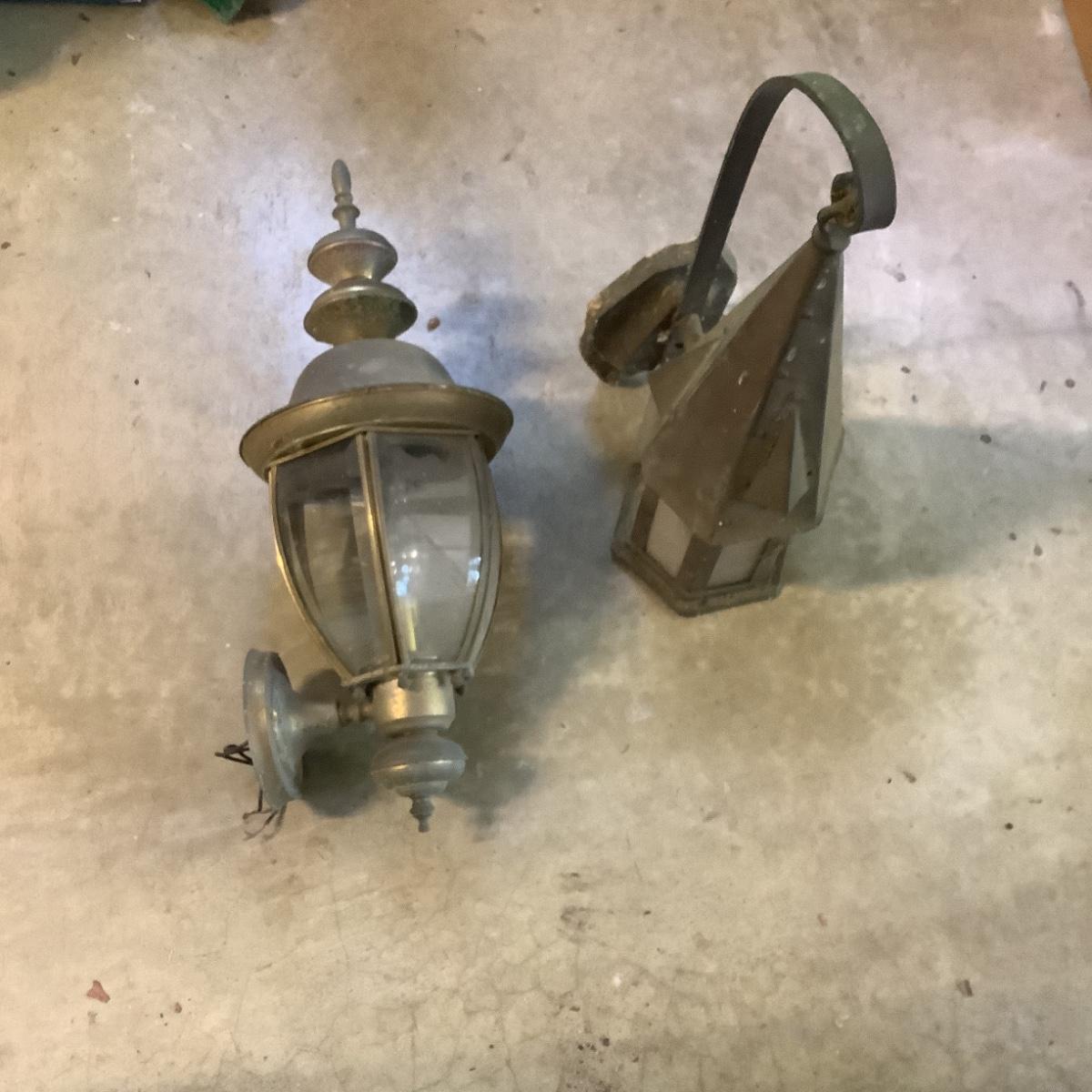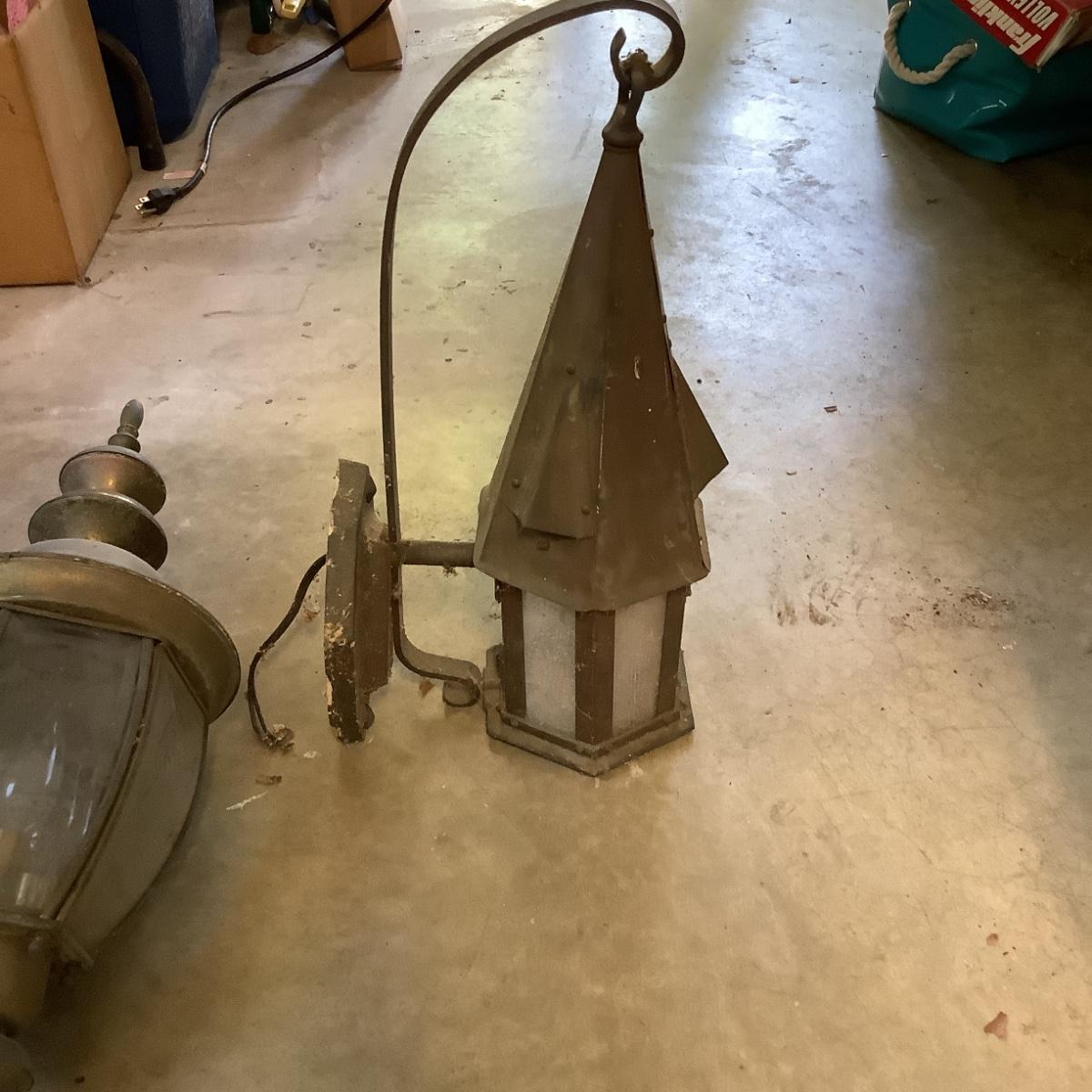 907 Antique Arts and Crafts Outdoor Lantern with Brass Lamp