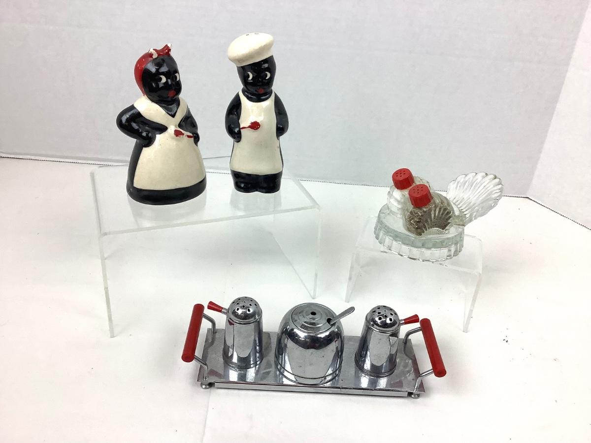 907 Art Deco Chrome Salt Pepper Sets & Ceramic Americana Condiment Set