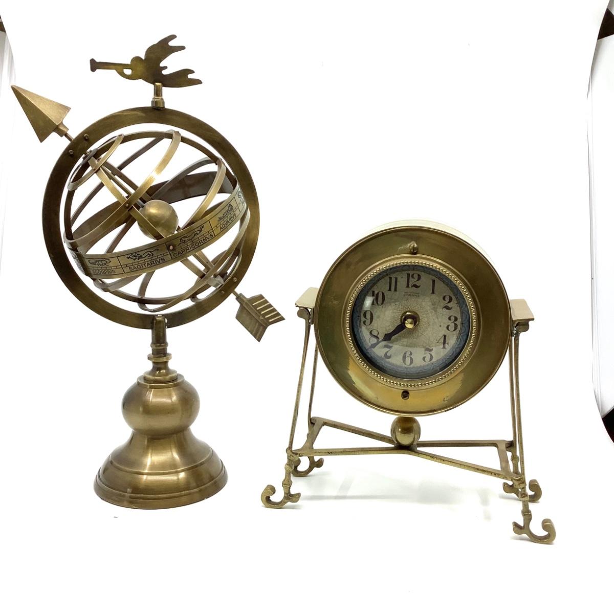907 Boulevard Etienne Brass Clock by Timeworks & Zodiac Sundial