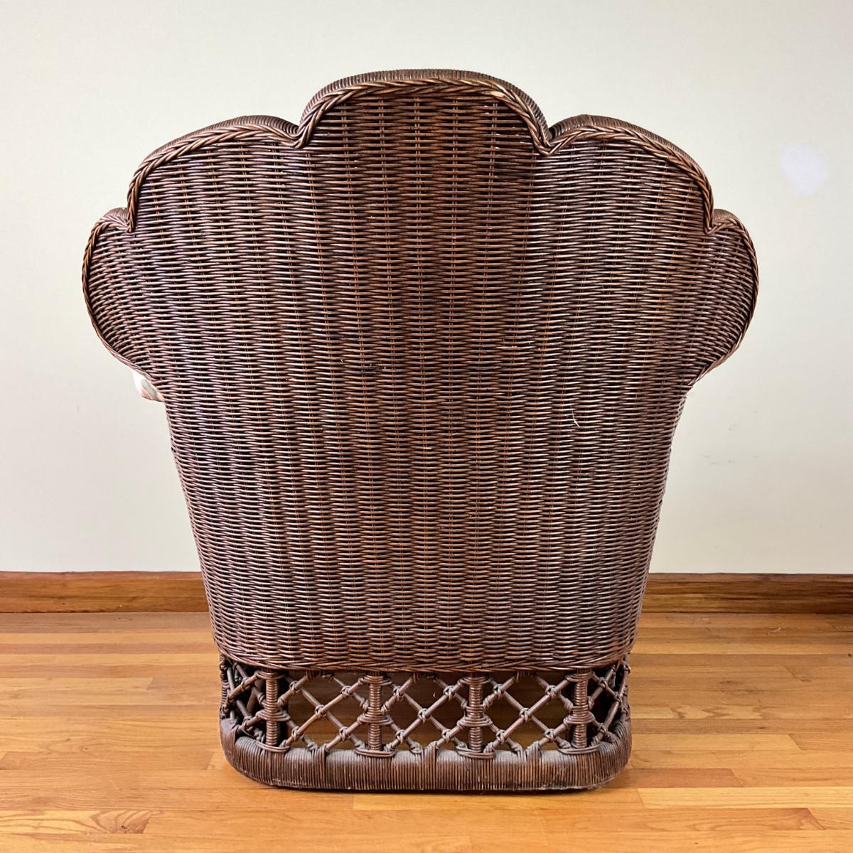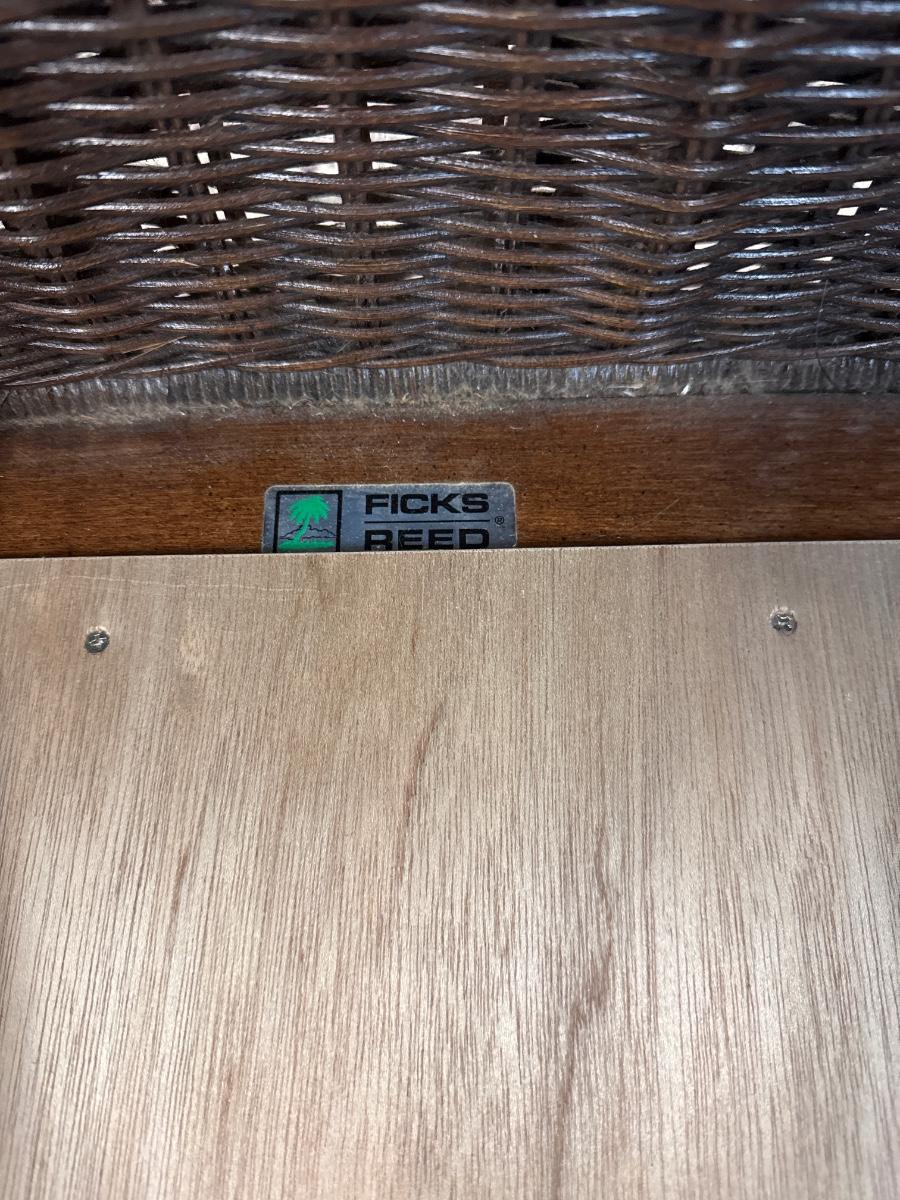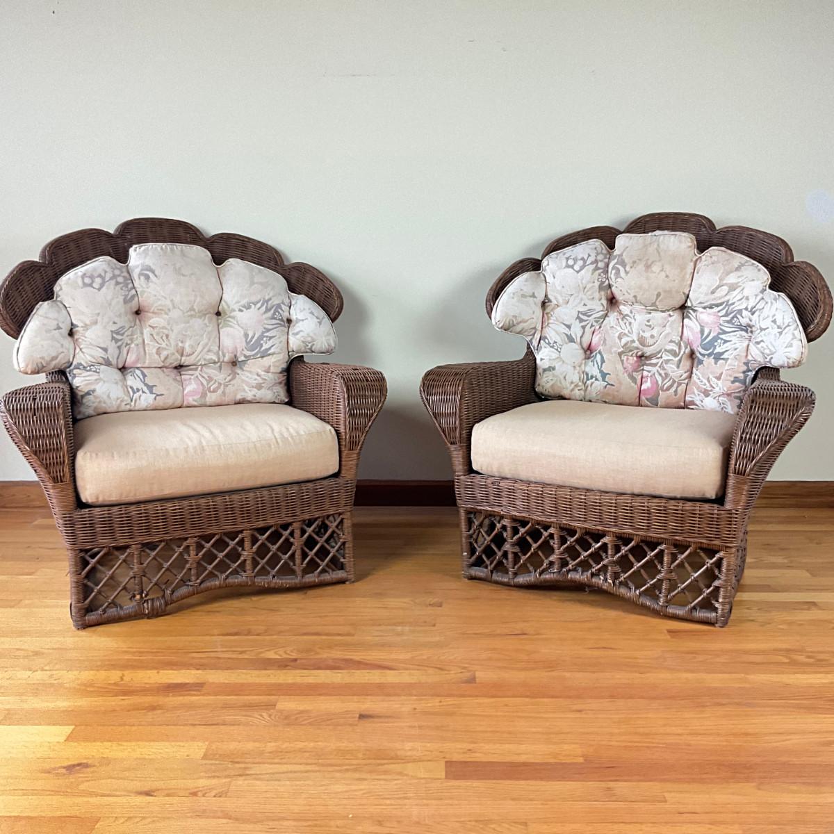 907 Pair Of Vintage Shell Back FICKS & REED Wicker Armchairs WIth Floral Cushions