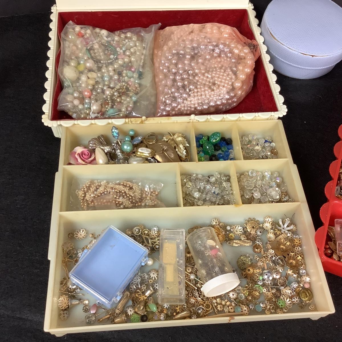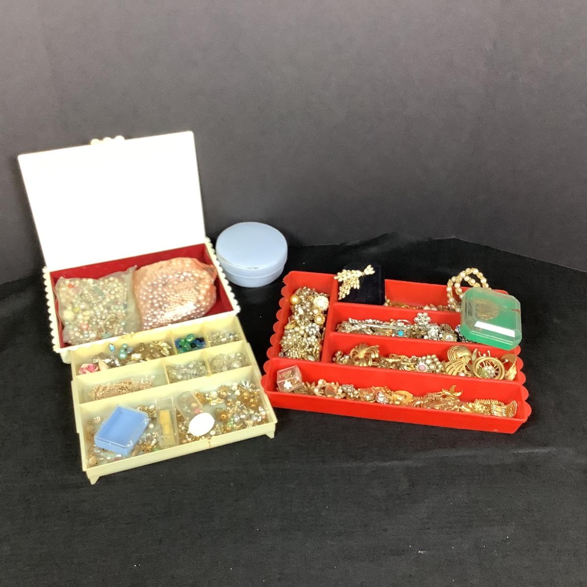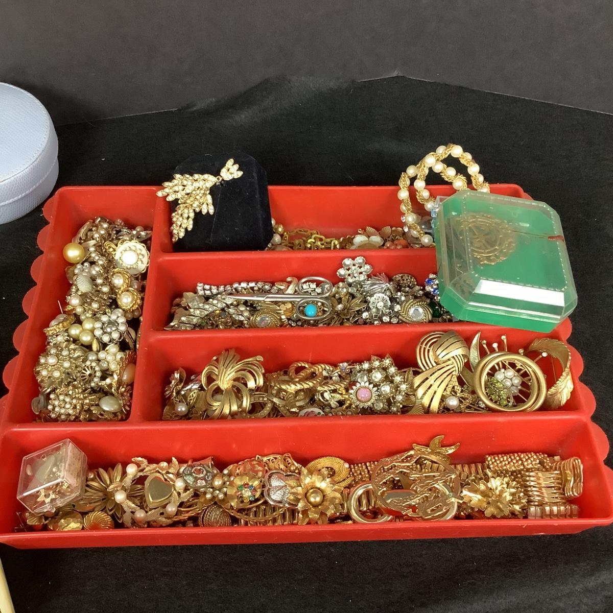 Three trays of broken jewelry for repair , art projects