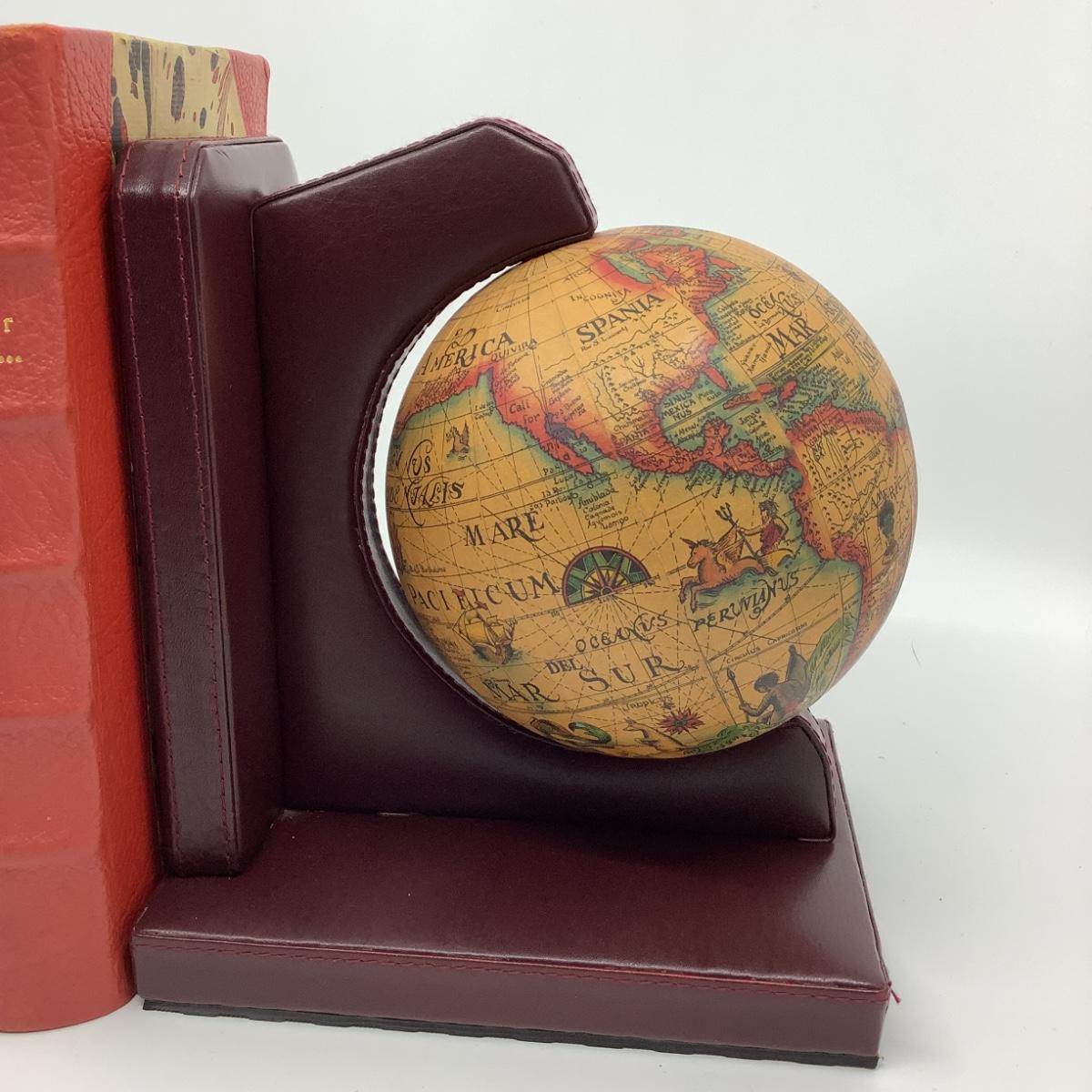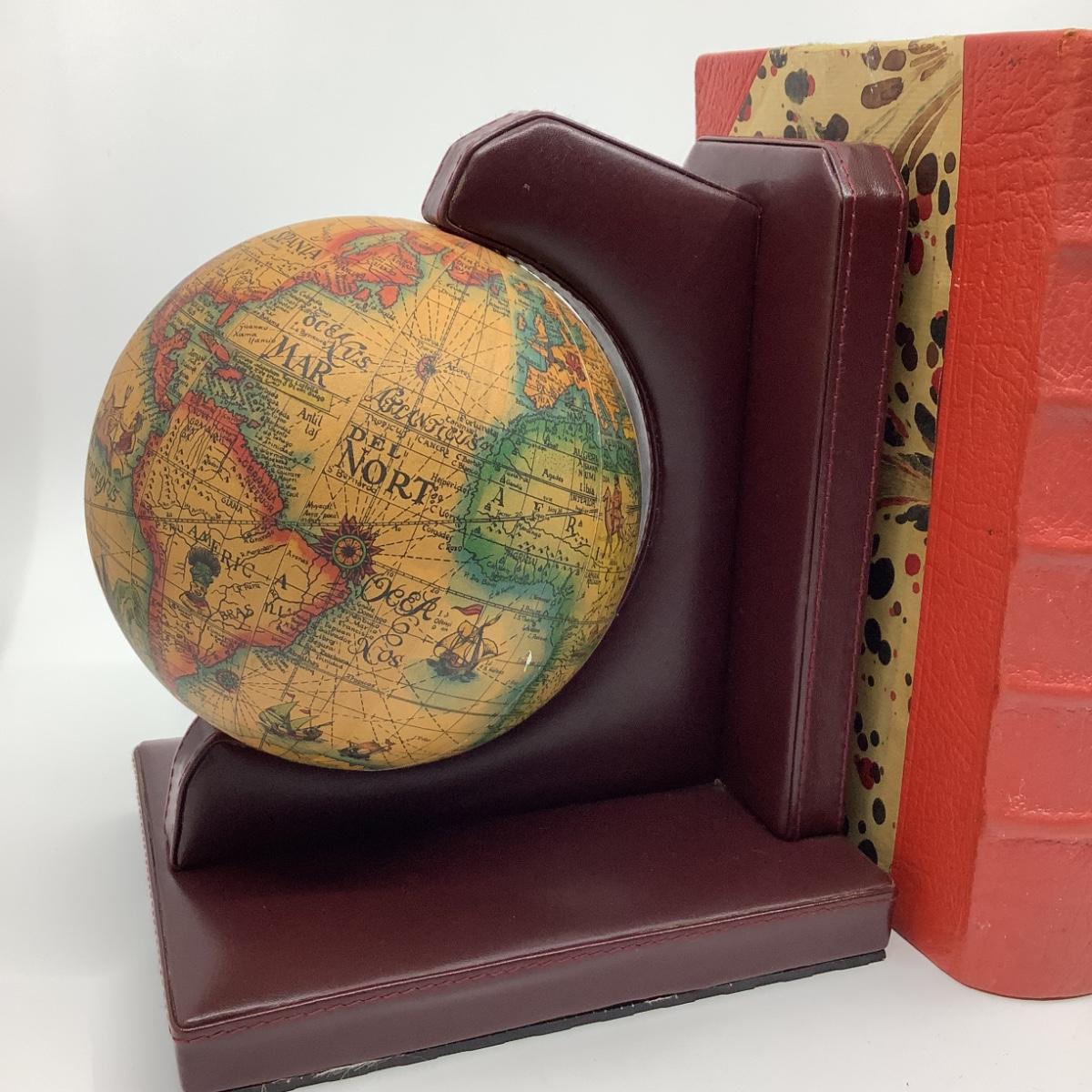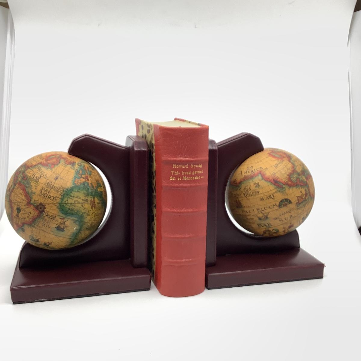 908 Pair of Faux Leather Globe Bookends with Book Box
