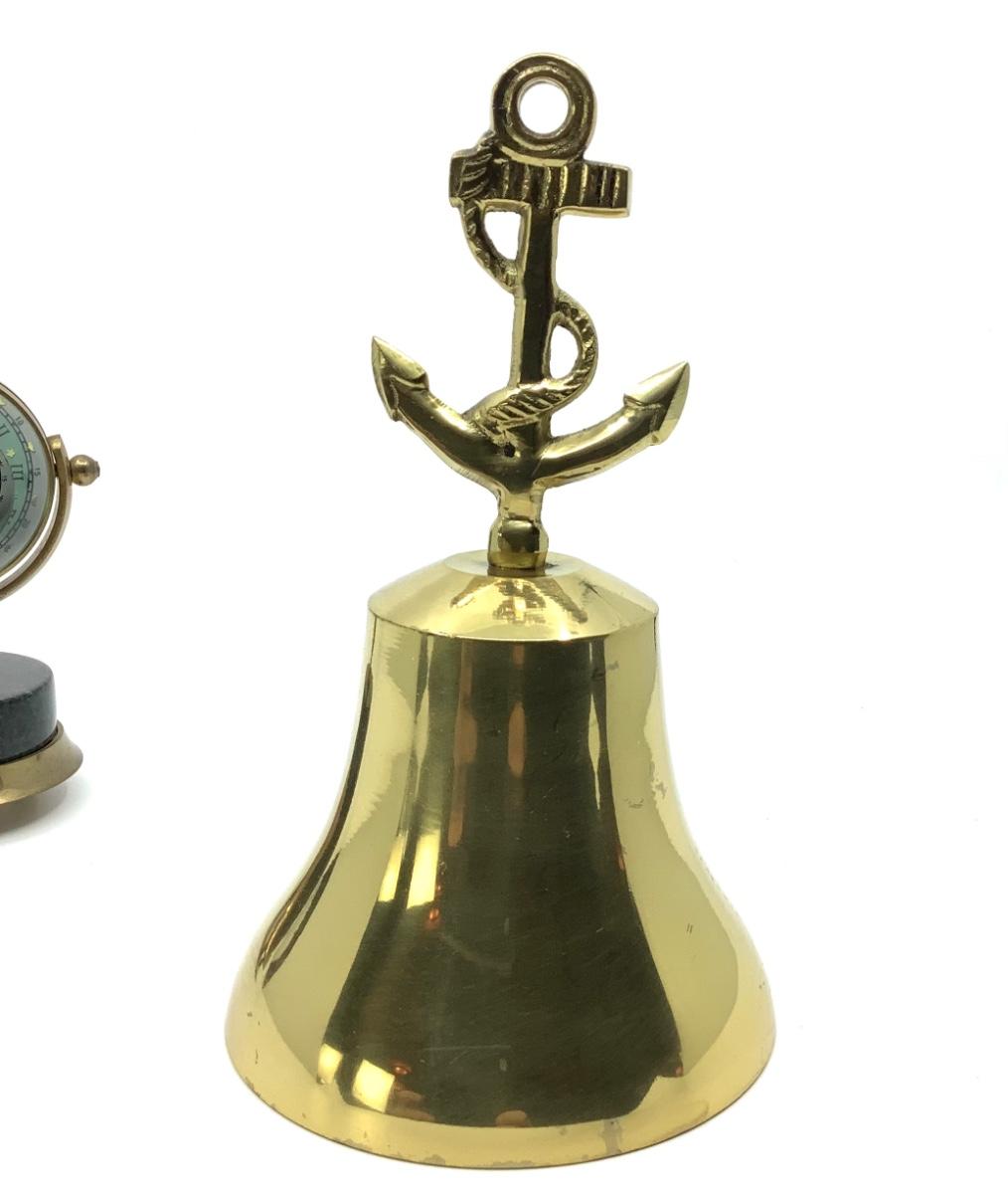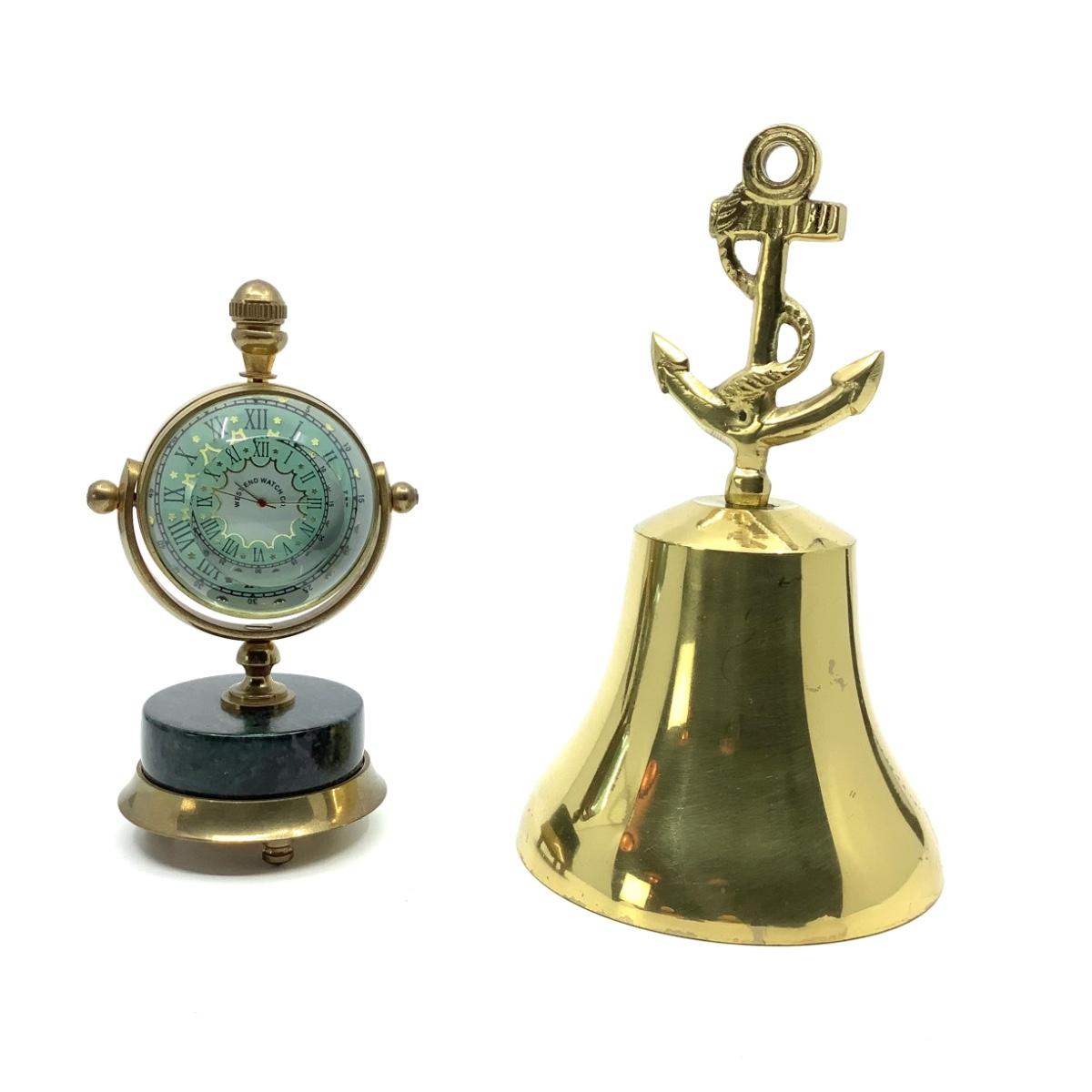 909 Brass Anchor Bell & West End Watch /Compass Desk Clock
