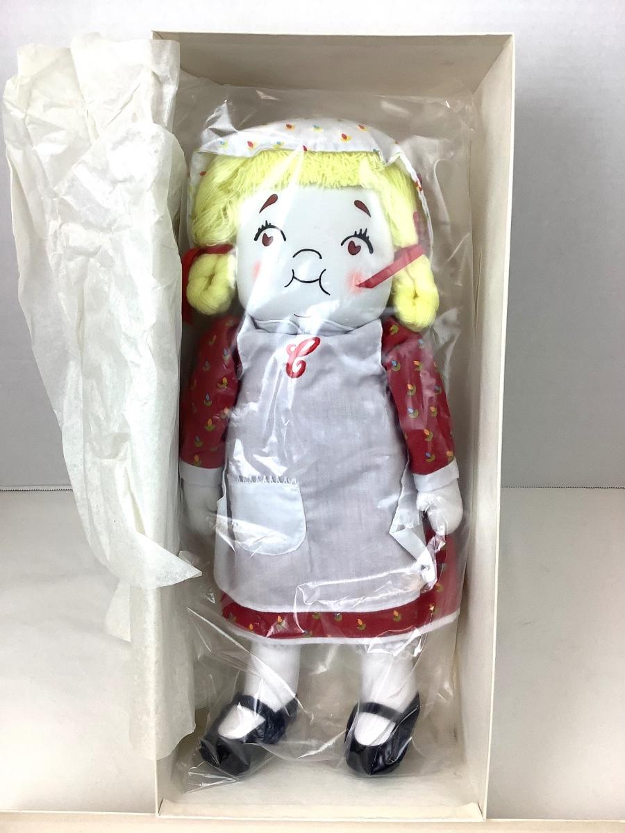 The soft doll measures 16" tall x 5" wide. She is new in her original box and packaging.