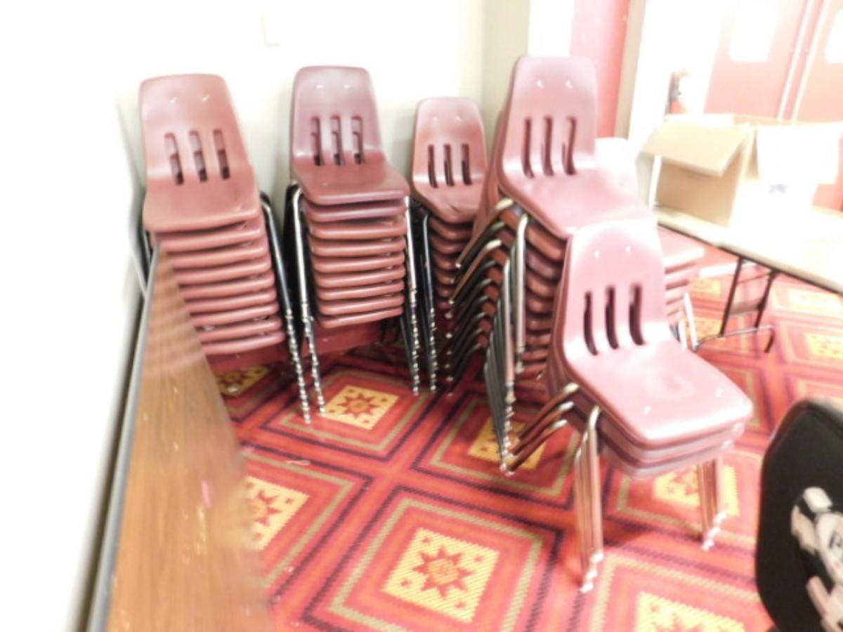 90ct Virco Brand Commercial Chairs Hardshell Body with Vented Back and Metal Legs (SECNSF) Some chairs may have stress crack on seat. Expect some wear or scratches to finish. Shipping option available via freight or local mover at Buyer's expense. Buyer must have all shipping scheduled within the stated dates and times of pickup. Recommended local mover is Beaty Bros. Moving 828-201-2982