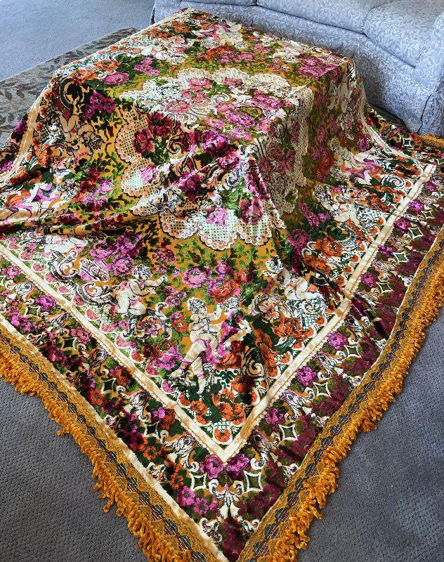 Harvest Tones Plus Pink and Cherubs. Excellent Shape 88 x 100! This is Very UNIQUE to Find in this good of Condition     This is an ONSITE Auction all items will need to be picked up on location. Please see auction description for pick up procedures. Shipping is available on smaller items.