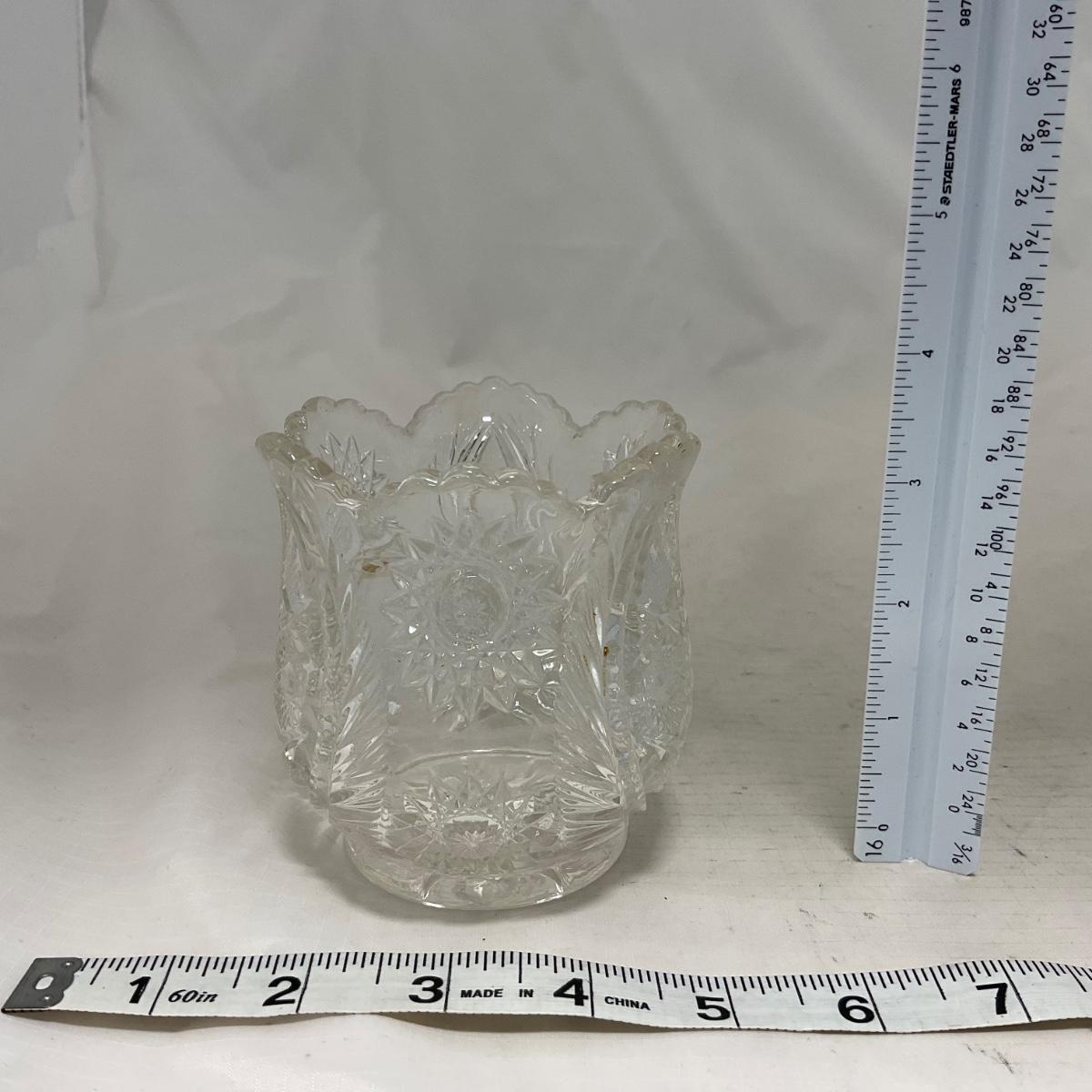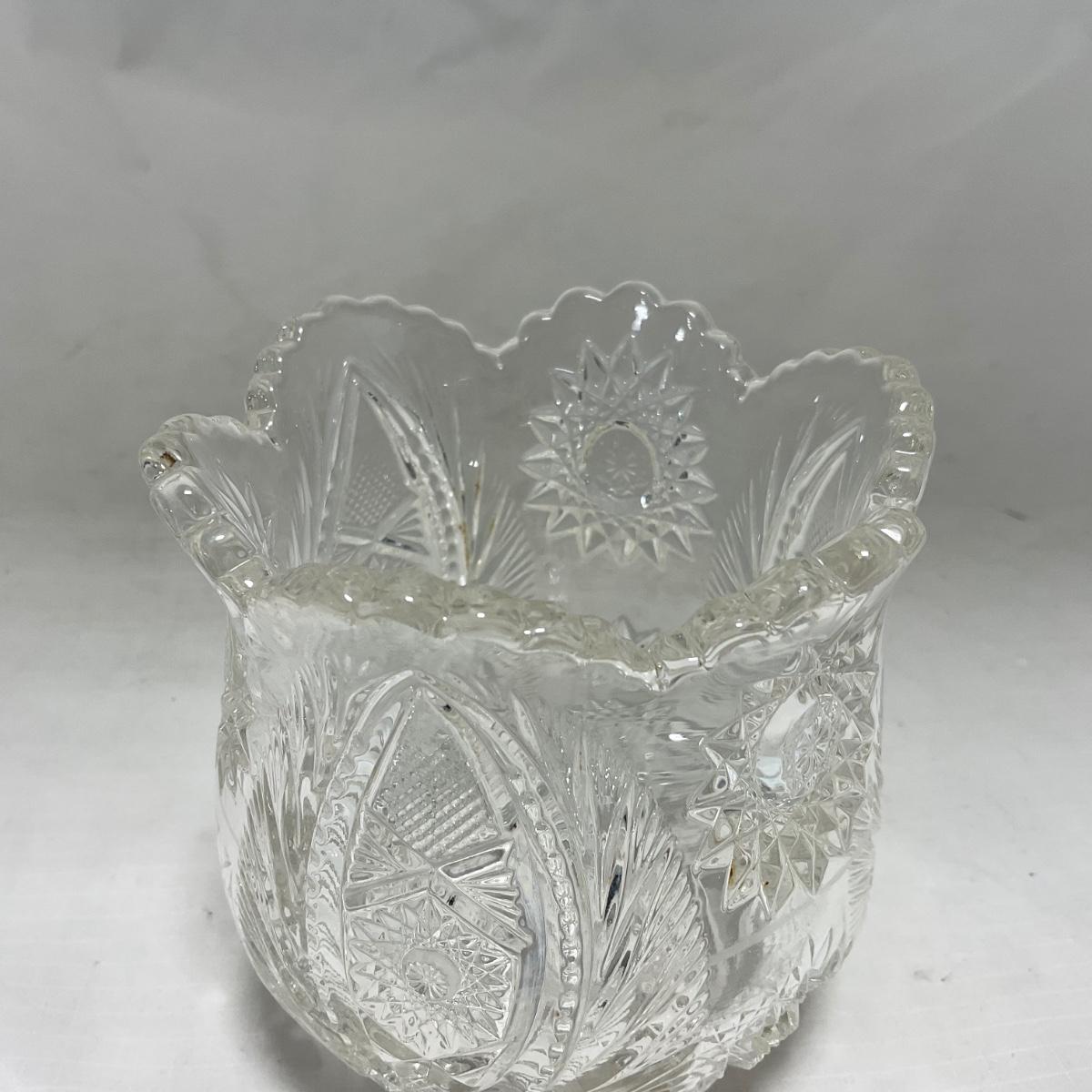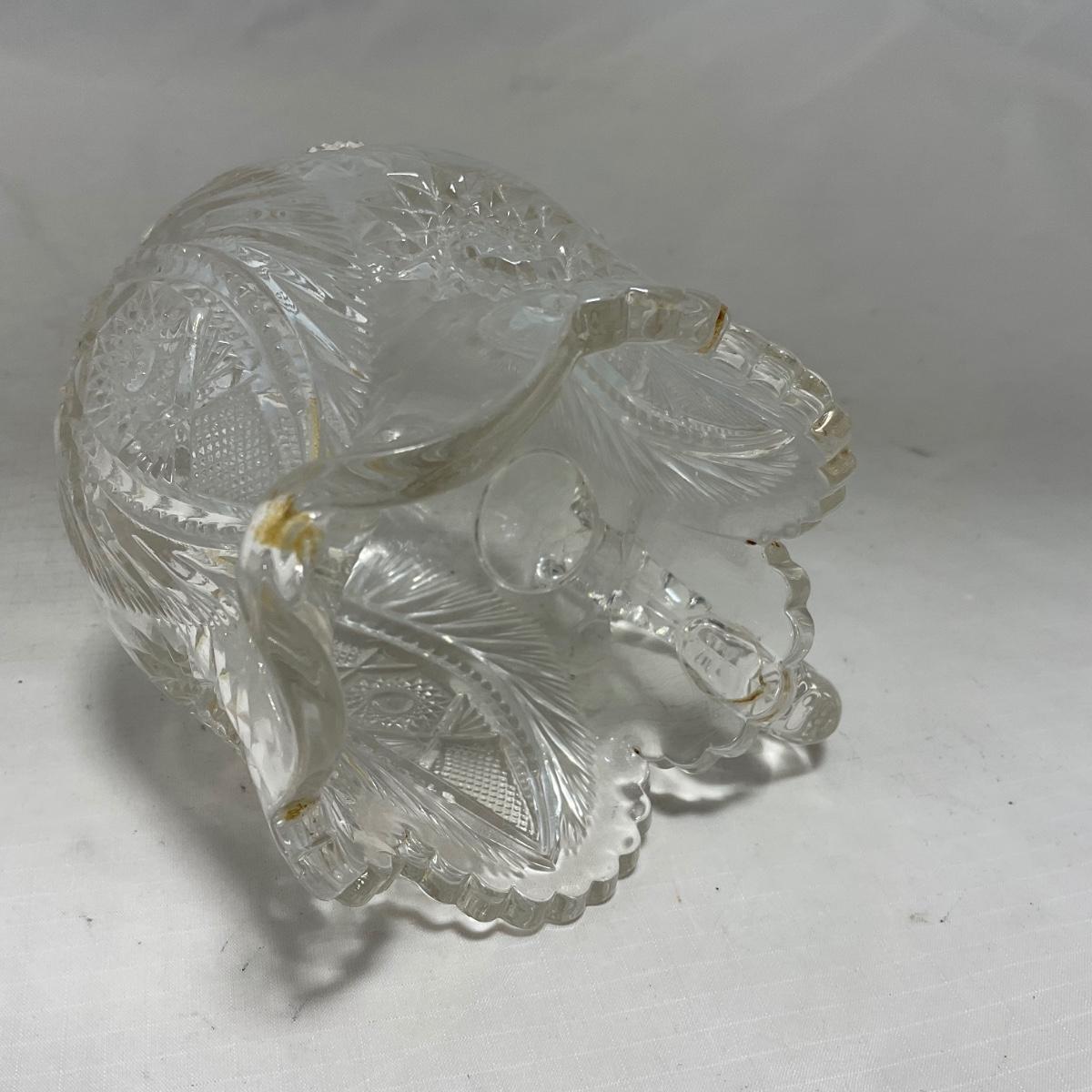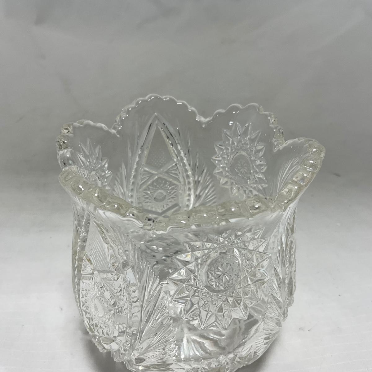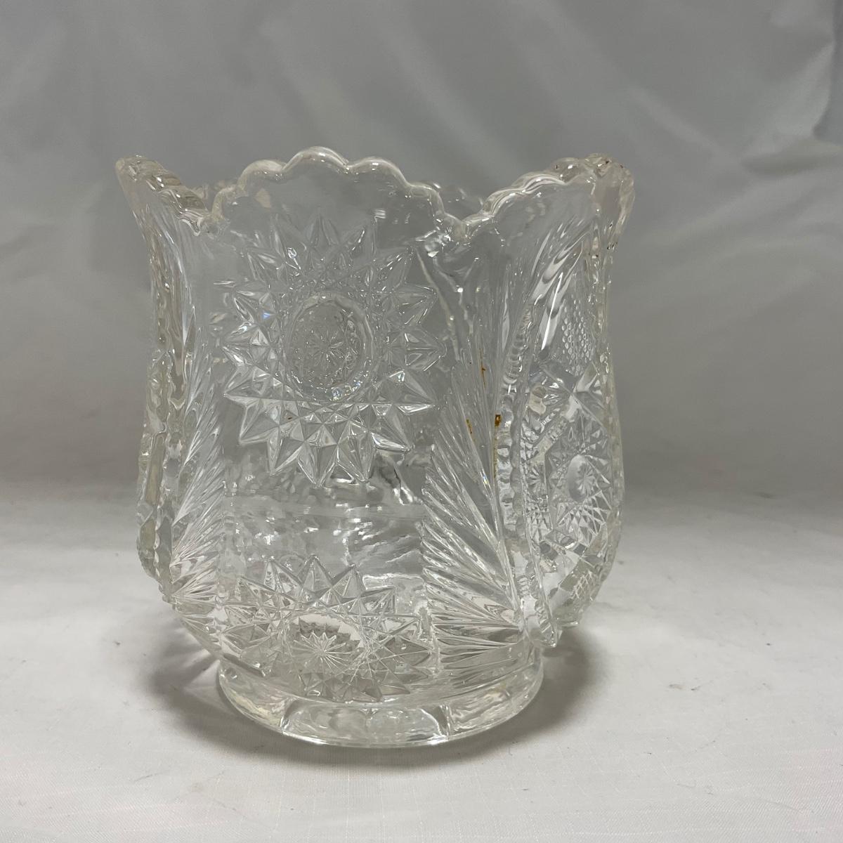One clear cut glass sugar and creamer set with beautifully cut designs. Please see photos for details and condition. ::: Shipping is available on this lot. If you require shipping you must let us know at the close of the auction. We will coordinate with you after the item has been won. Shipping fees will include insurance up to or exceeding the value of all items being mailed. If you have any questions regarding this lot please contact the auctioneer either via this website, by direct email or by phone. PICK UP TIMES and other important information can be found in the TERMS and DESCRIPTION of the auction. Please take a look for pertinent information. Thanks!