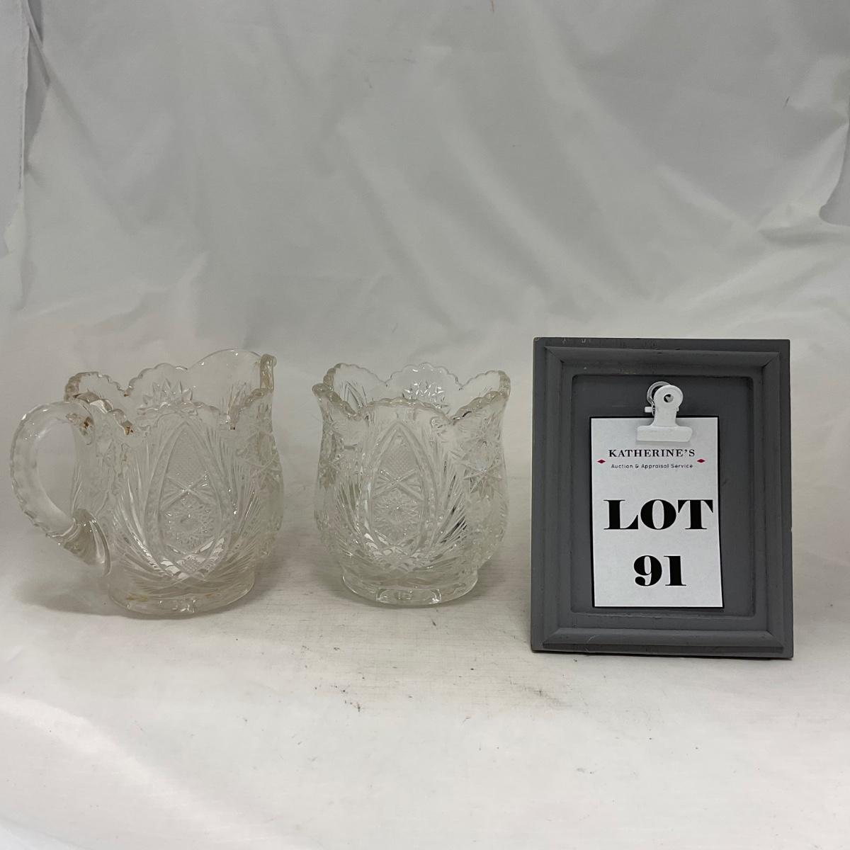 -91- Clear Cut Glass | Sugar & Creamer Set
