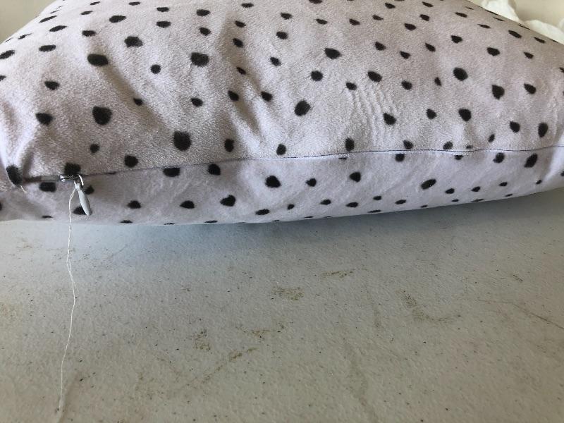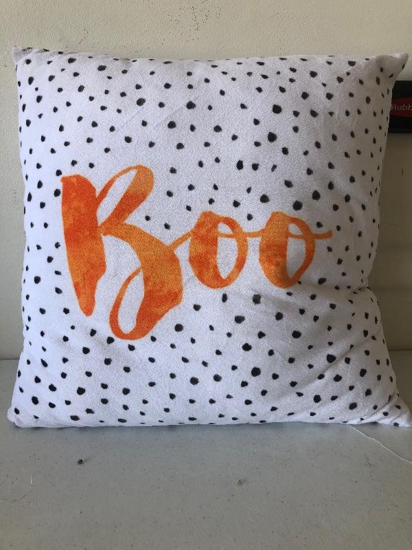 Good used condition, blue with black spots on white 16 inch pillow, blue. This is an ONSITE Auction all items will need to be picked up on location. Please see auction description for pick up procedures.