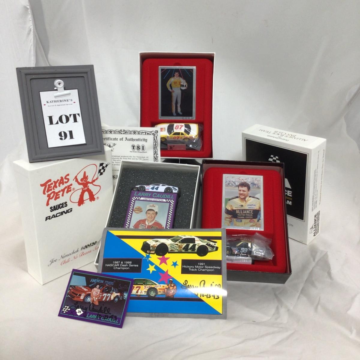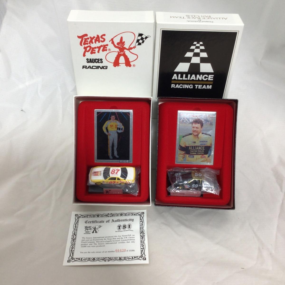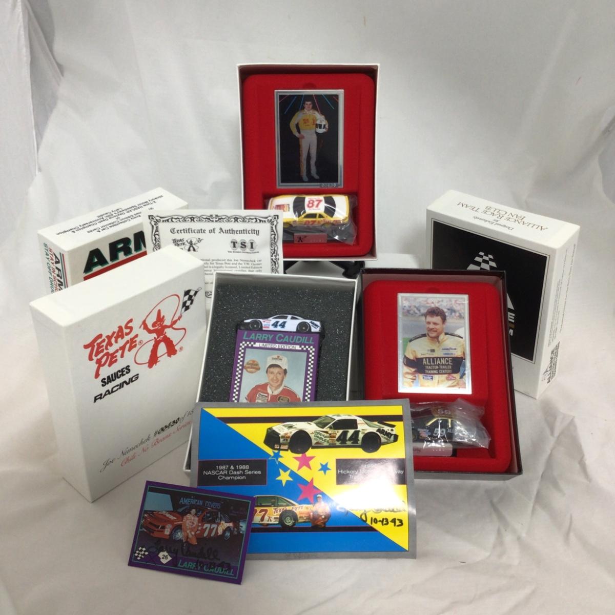 Three Nascar racing car figure and card set. The Joe Nemechek car and car set come with certificate of authenticity. Please see photos for details and condition. ::: Shipping is available on this lot. If you require shipping you must let us know at the close of the auction. We will coordinate with you after the item has been won. Shipping fees will include insurance up to or exceeding the value of all items being mailed. If you have any questions regarding this lot please contact the auctioneer either via this website, by direct email or by phone. PICK UP TIMES and other important information can be found in the TERMS and DESCRIPTION of the auction. Please take a look for pertinent information. Thanks!