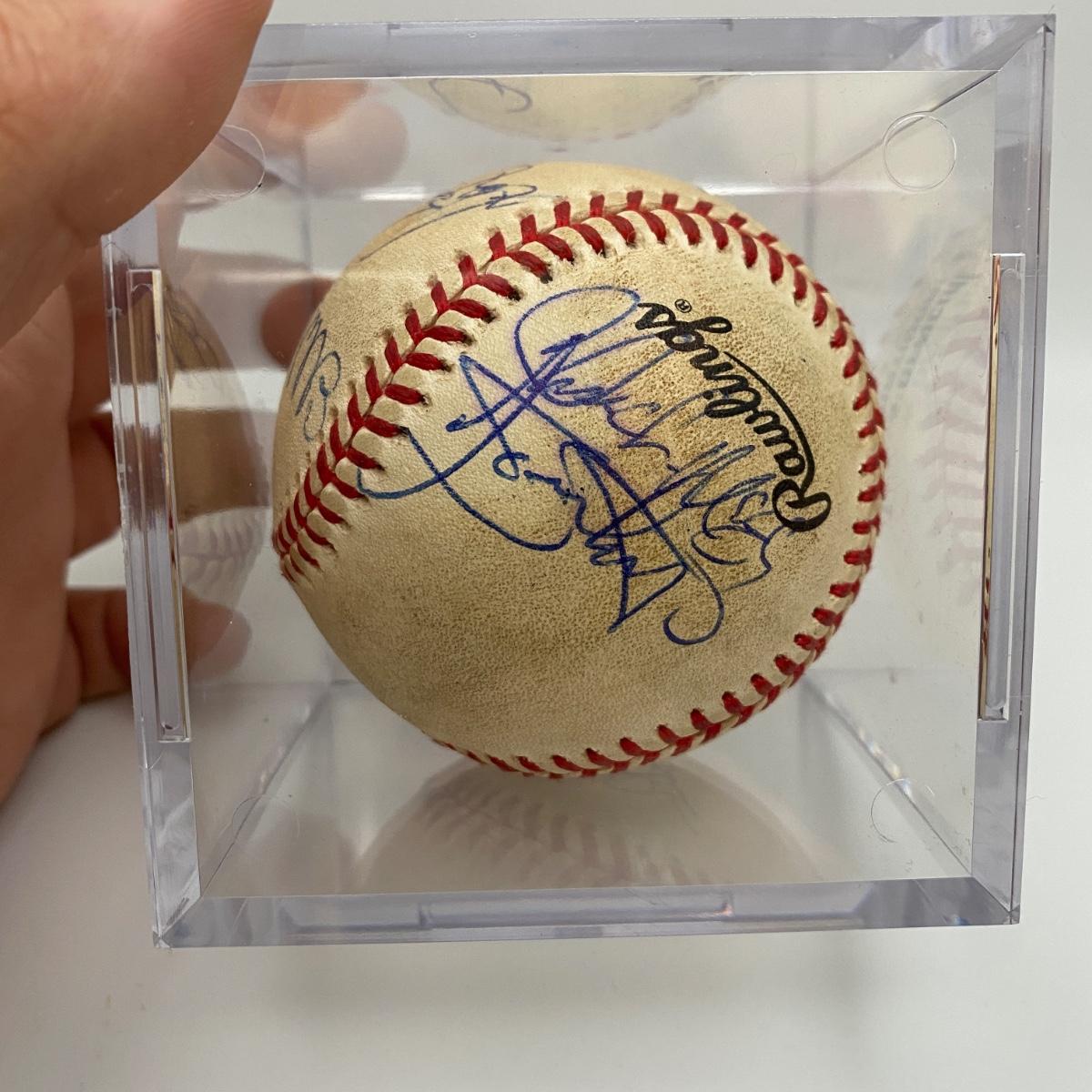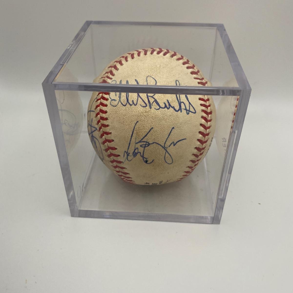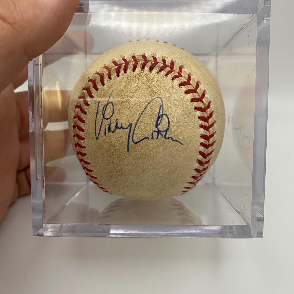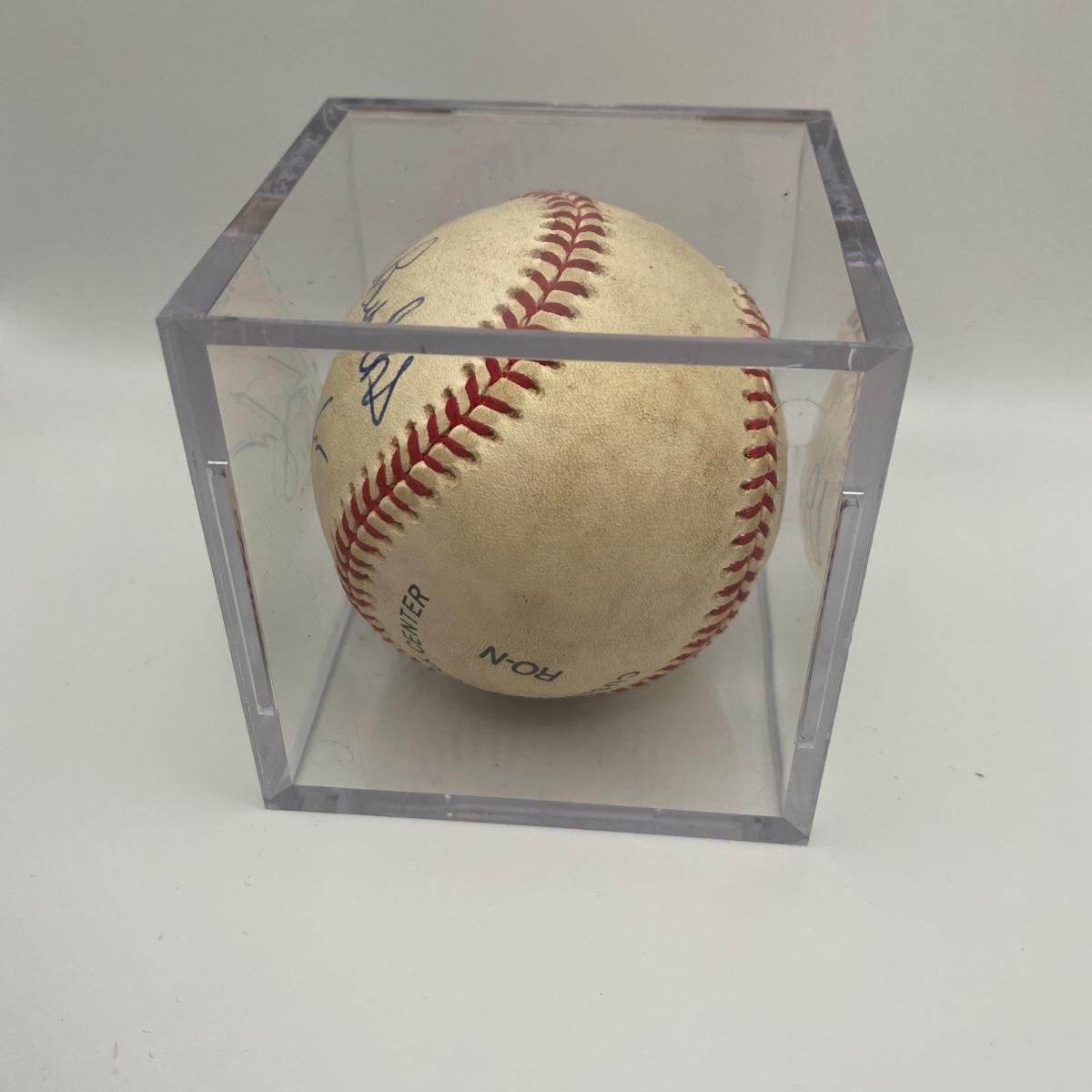 6-21-98 Game ball signed by Ellis Bunkes, and Vinny Castino. Signed with no Certificate of Authenticity, item is assumed authentic however not guaranteed. Please see photos for details and condition. ::: Shipping is available on this lot. If you require shipping you must let us know at the close of the auction. We will coordinate with you after the item has been won. Shipping fees will include insurance up to or exceeding the value of all items being mailed. If you have any questions regarding this lot please contact the auctioneer either via this website, by direct email or by phone. PICK UP TIMES and other important information can be found in the TERMS and DESCRIPTION of the auction. Please take a look for pertinent information. Thanks!