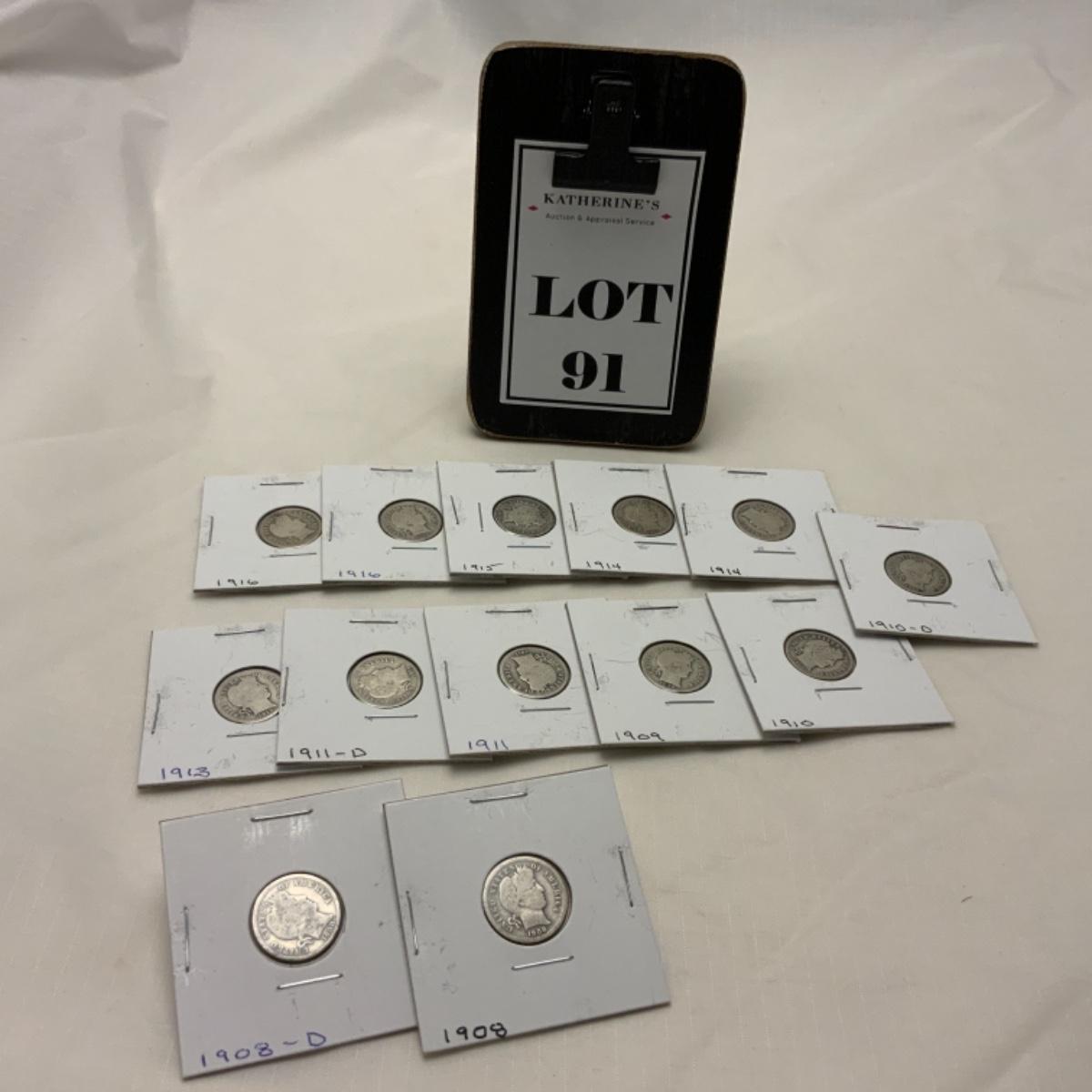 [91] Thirteen Barber Dimes | 1908 - 1916 | AVG+