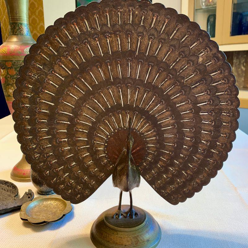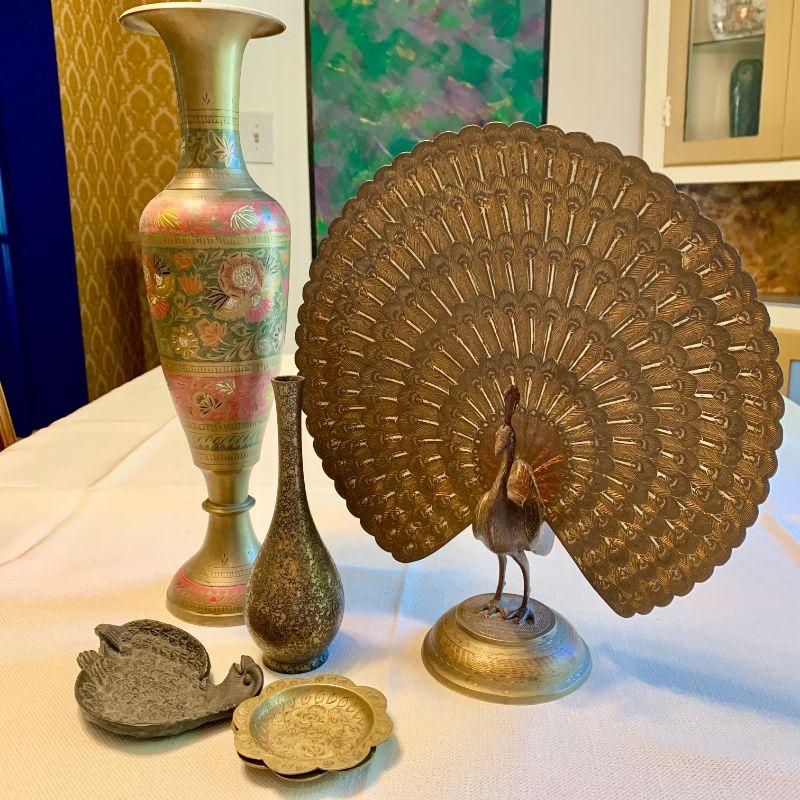 #91    VINTAGE GROUP LOT OF IMPORTED BRASS DECOR PIECES PEACOCK