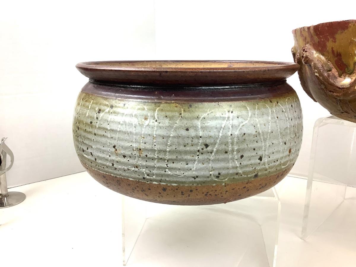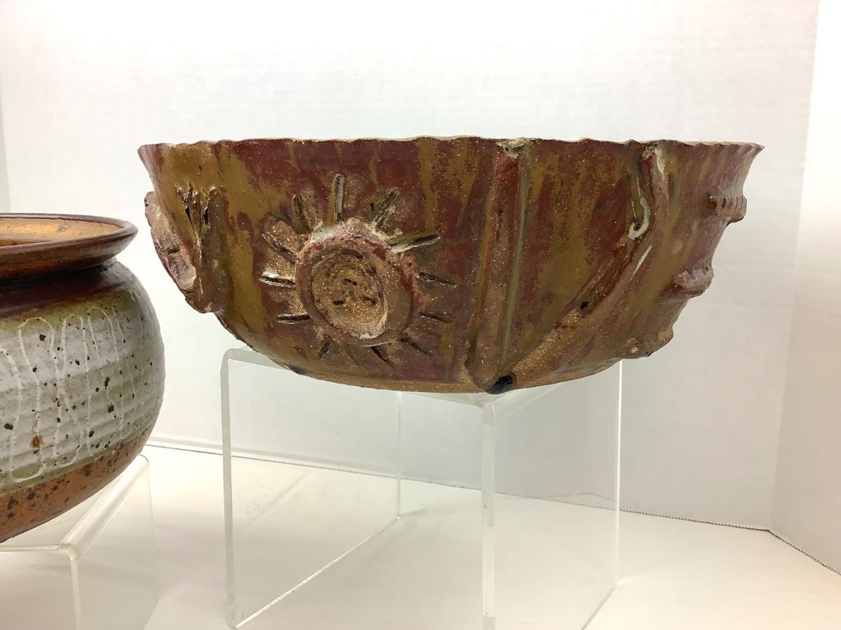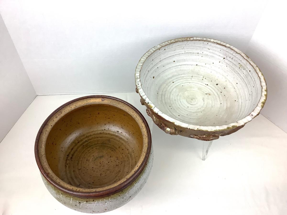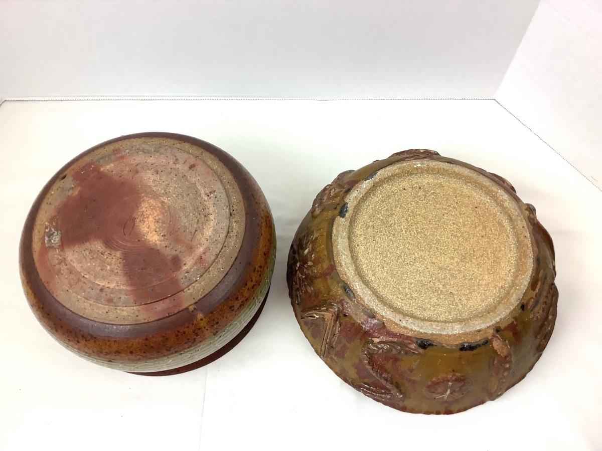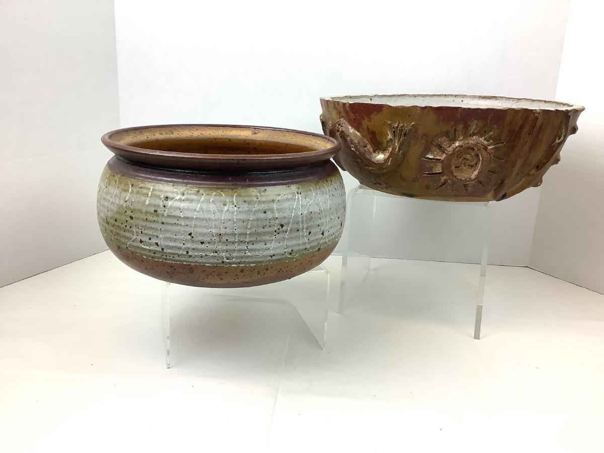 There are 2 bowls in the lot, both are signed by the artist that created it, they are earth tone colors and measure: