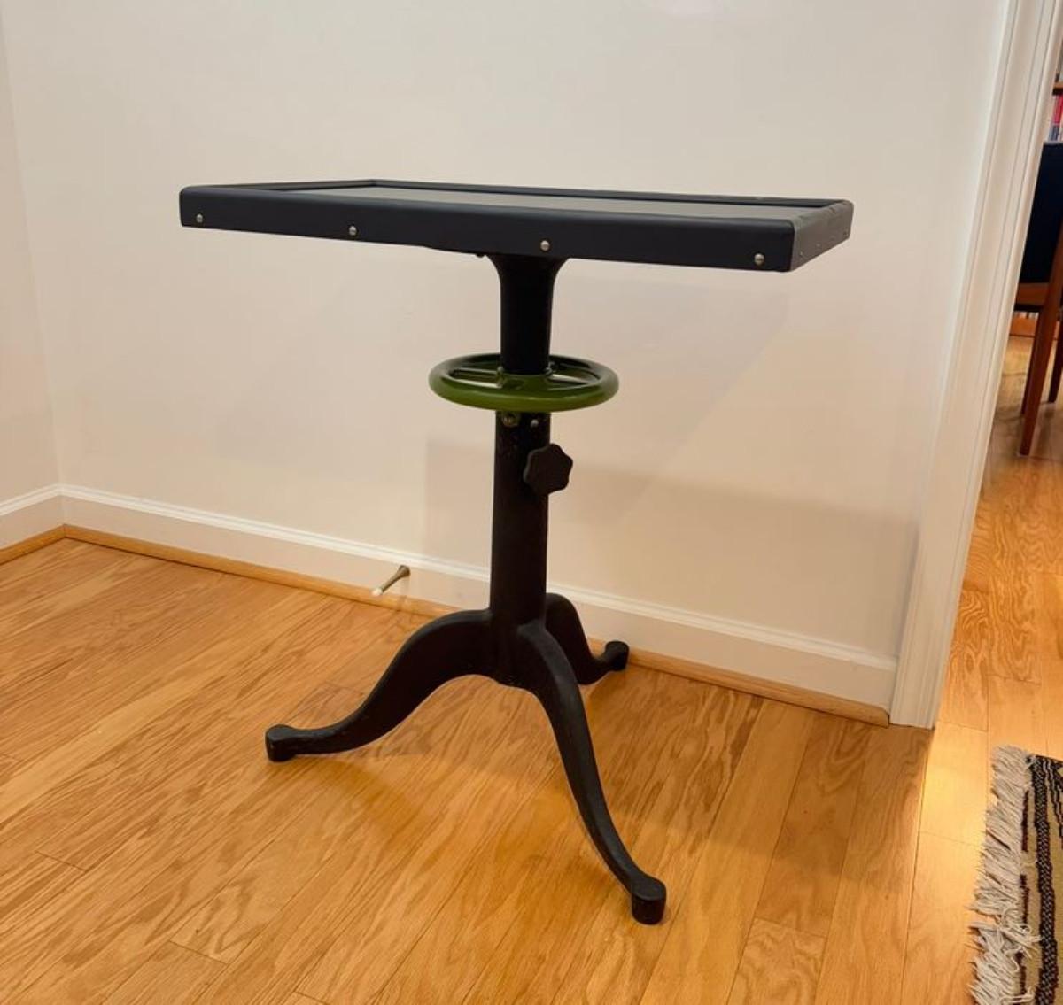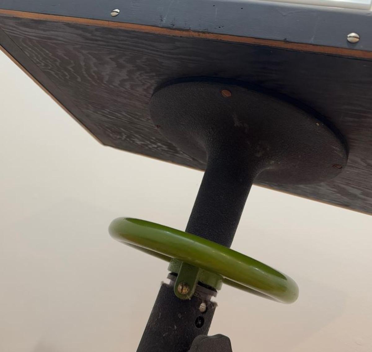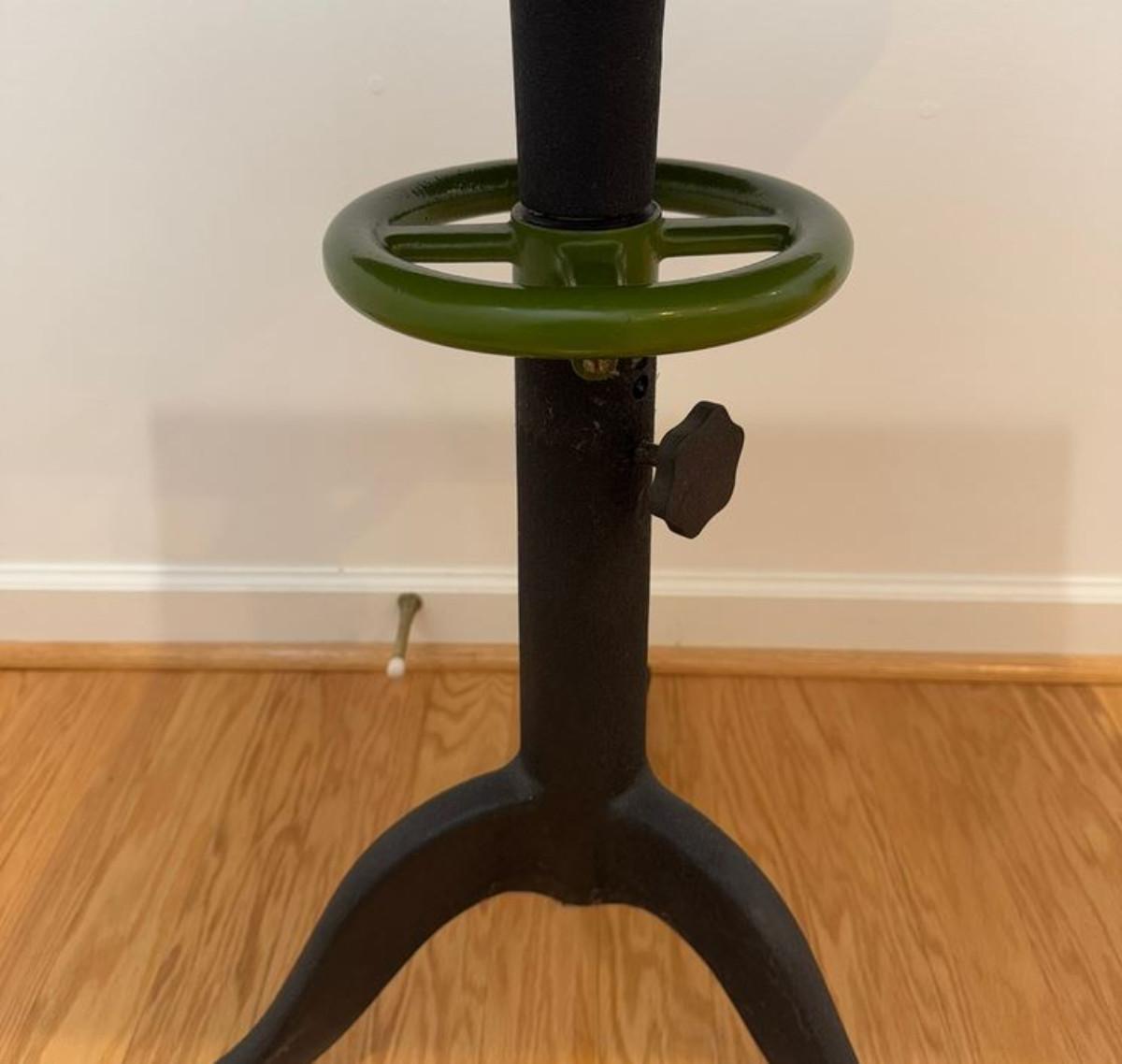 Heavy cast iron tripod base with with hand cranked height adjust wheel