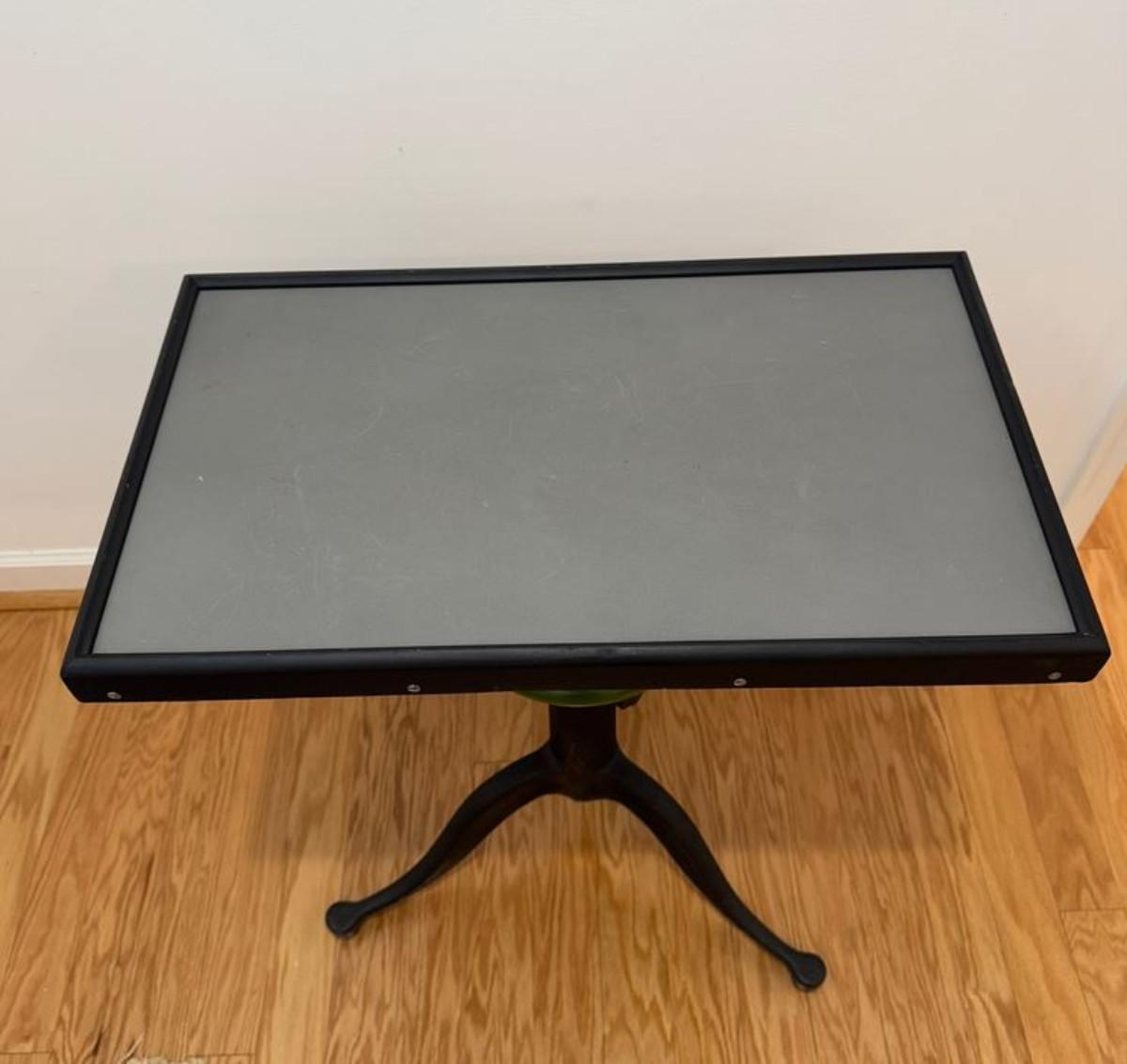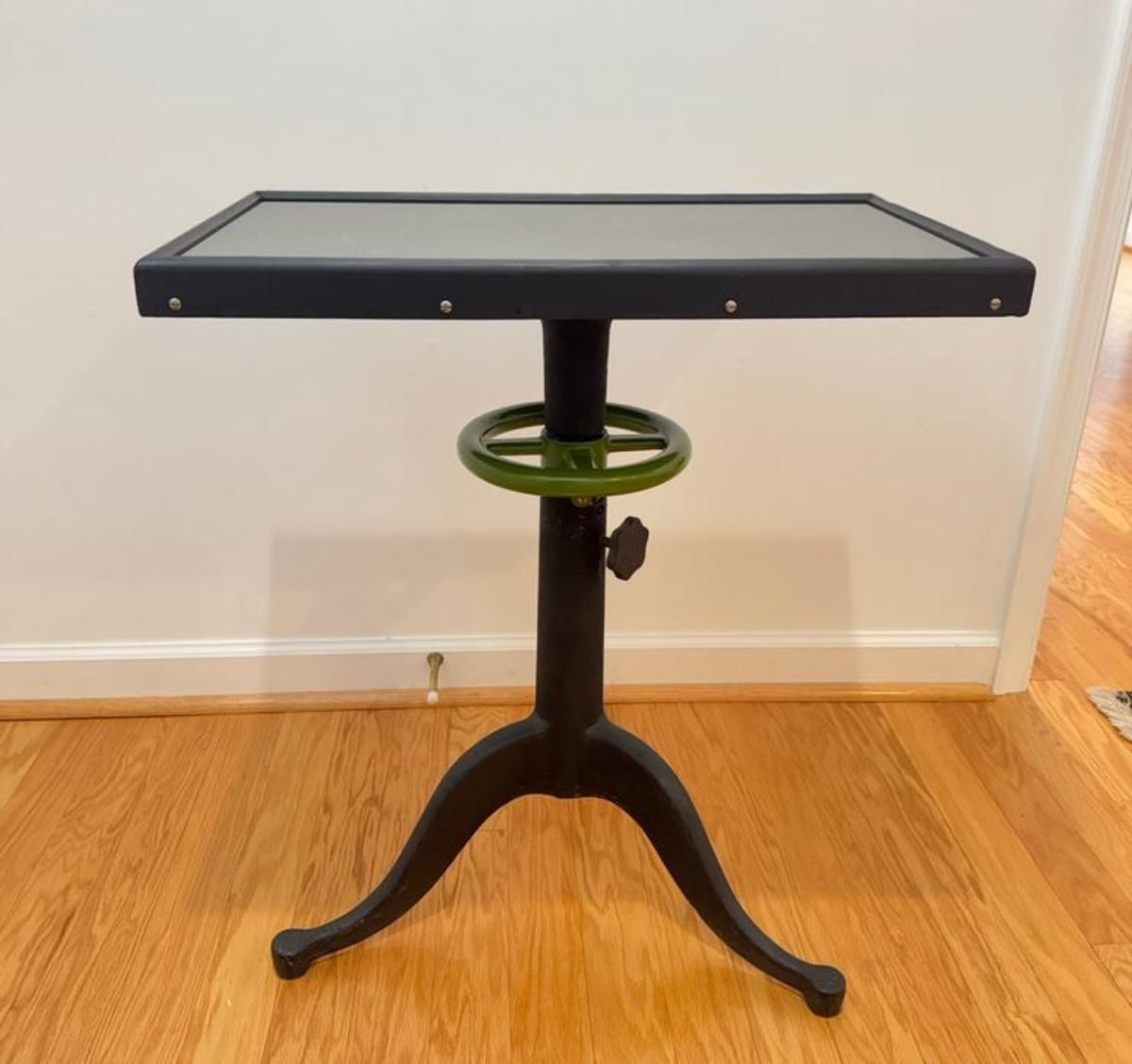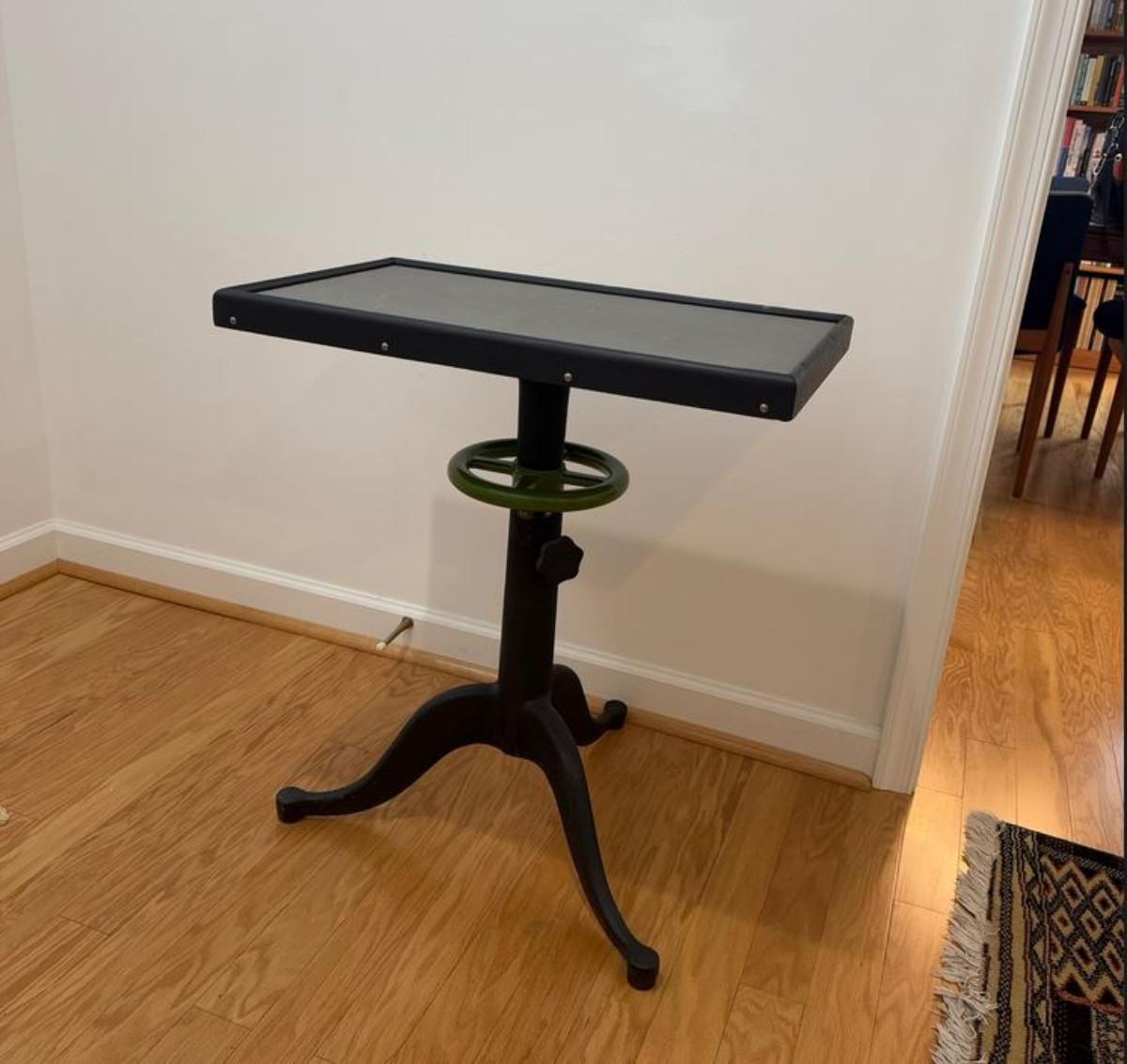 Heavy cast iron tripod base with with hand cranked height adjust wheel