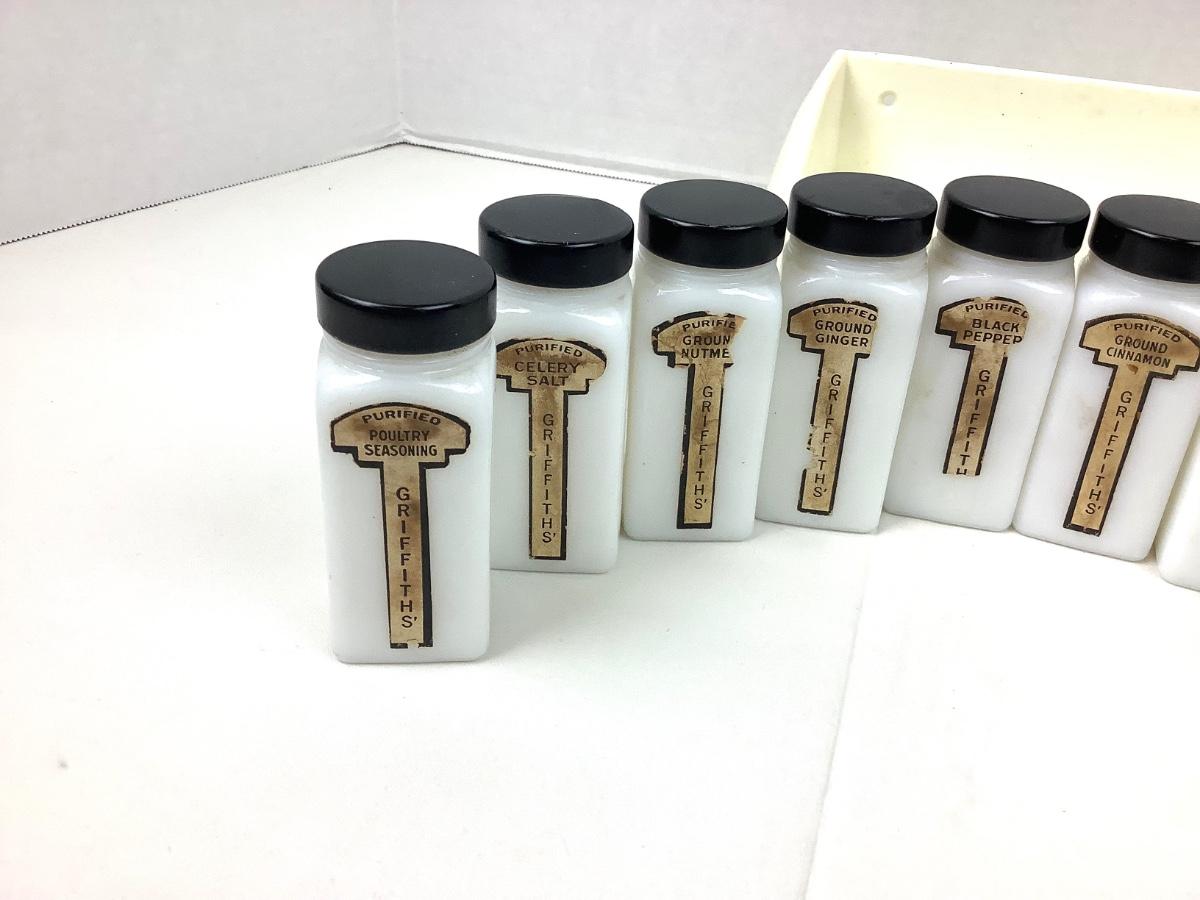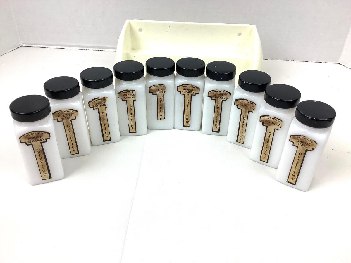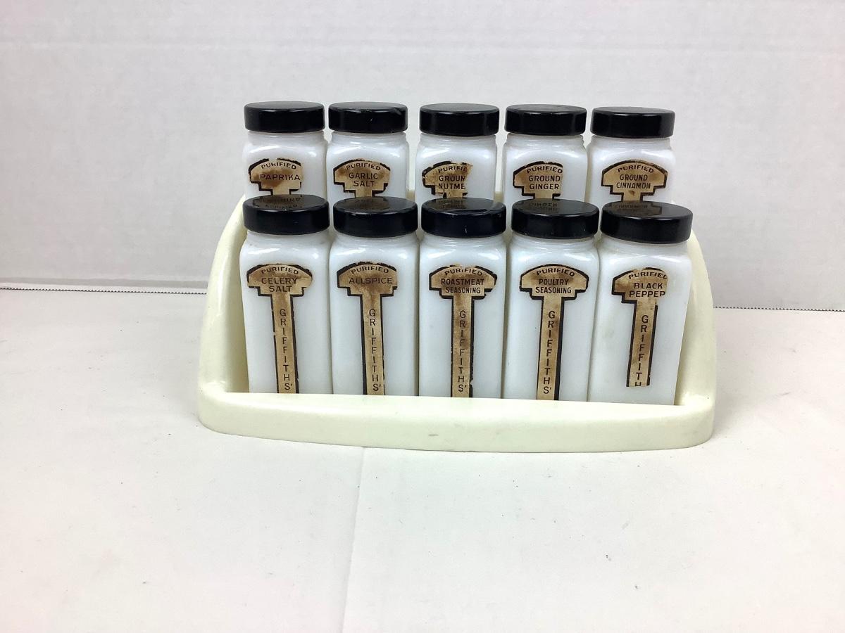 912 Vintage Griffith's Art Deco Spice Jars & Shelf