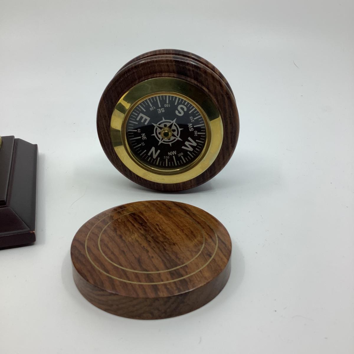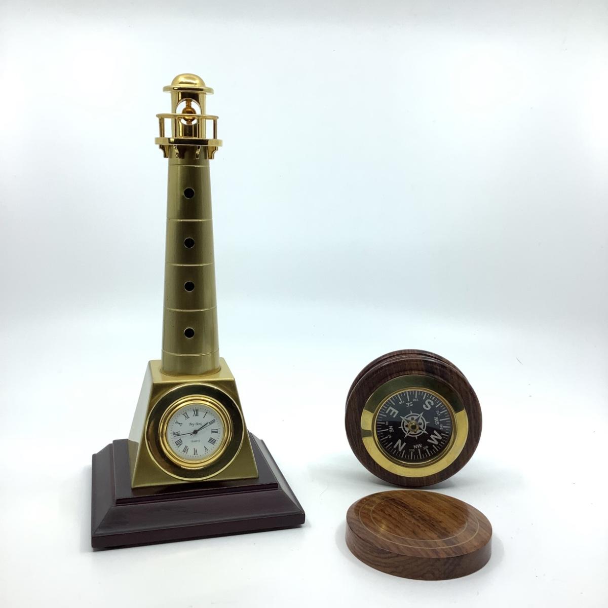 912 Wooden Box Compass with Lighthouse Desk Clock