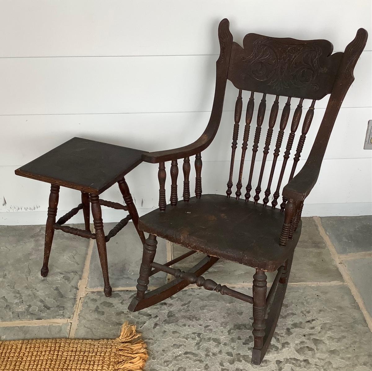 917-Antique PA Youth Rocking Chair w/Victorian Pressed Back & Table