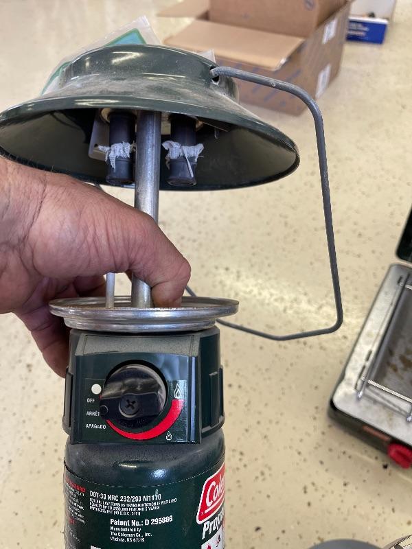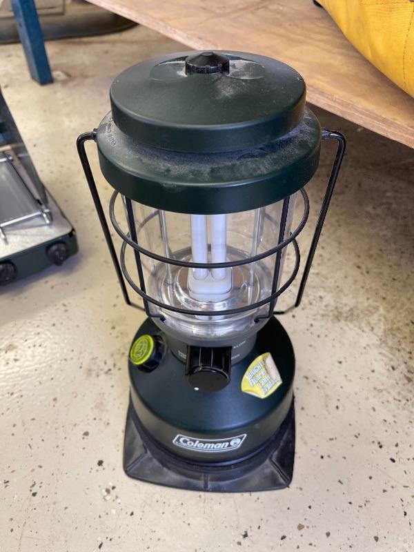 Gas lantern, fluorescent lantern, single burner gas stove, two burner gas stove-propane tank not included. All propane tanks are empty, batteries needed for fluorescent lantern not included.