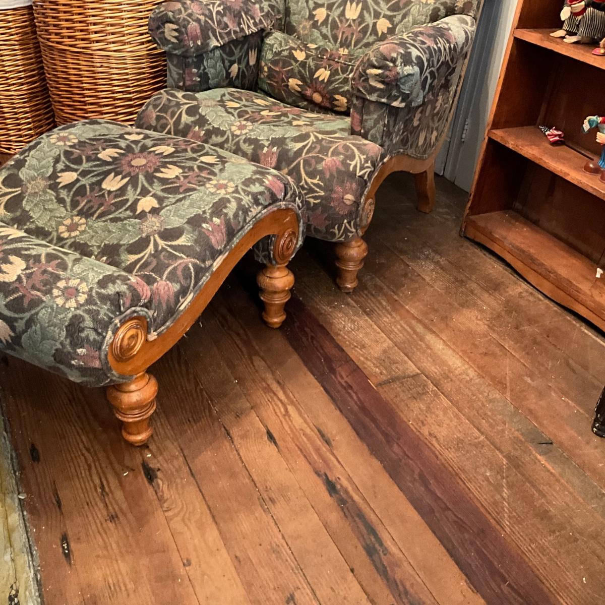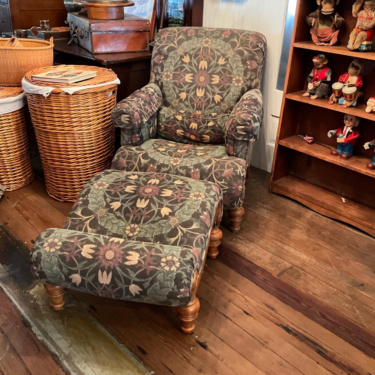 918 Vintage Upholstered Chair and Ottoman