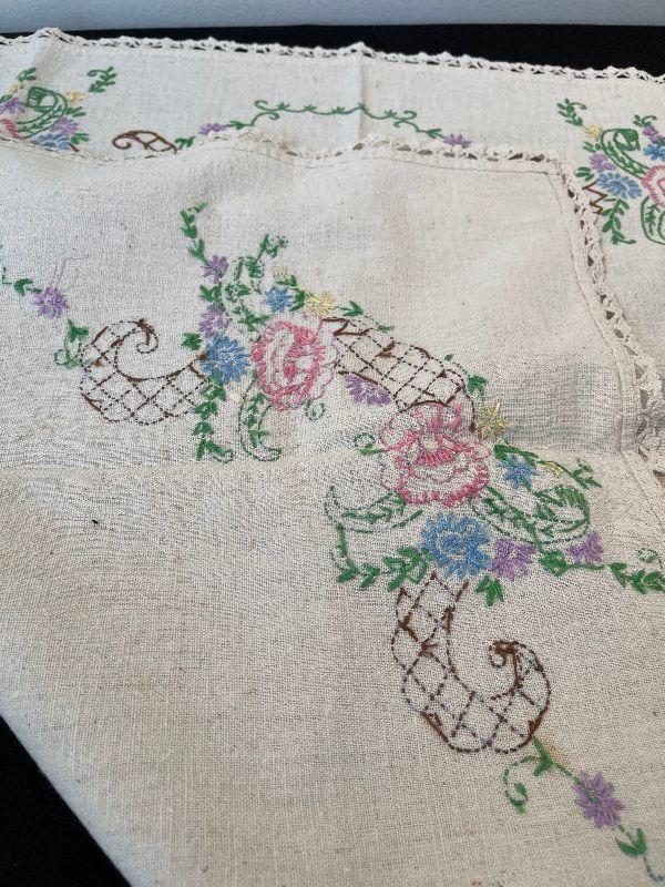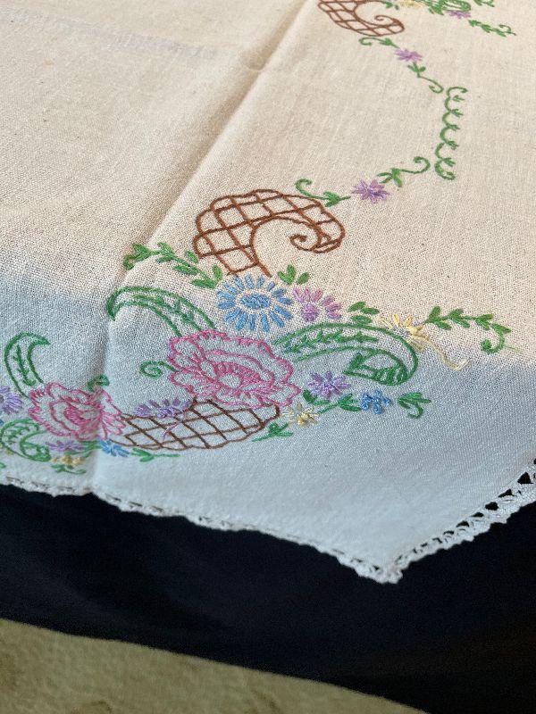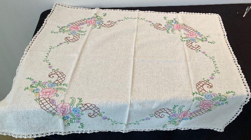 #92 Embroidered Bridge Table Cloth Pink Flower