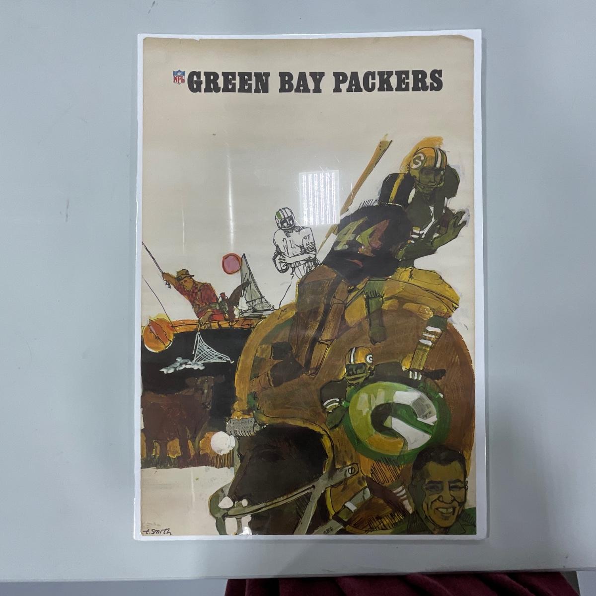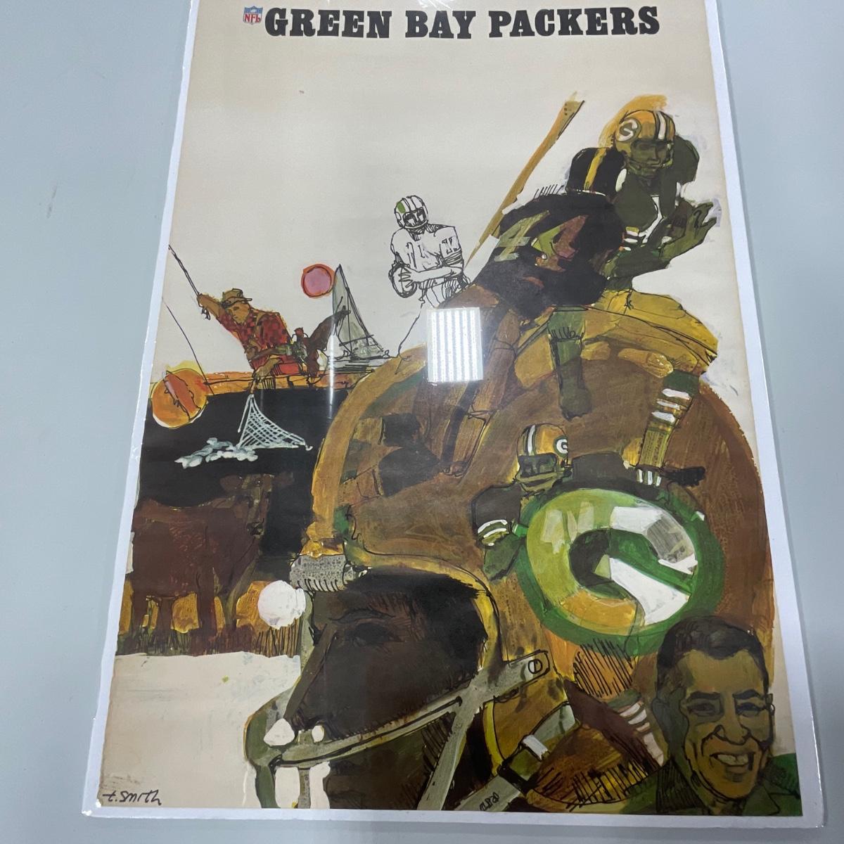One vintage Green Bay Packers poster. Mounted on foam board (poster has very curled edges from being kept rolled up). 17 inches wide by 22.5 inches tall. Please see photos for details and condition. ::: Shipping is NOT available on this lot. If you have any questions regarding this lot please contact the auctioneer either via this website, by direct email or by phone. PICK UP TIMES and other important information can be found in the TERMS and DESCRIPTION of the auction. Please take a look for pertinent information. Thanks!