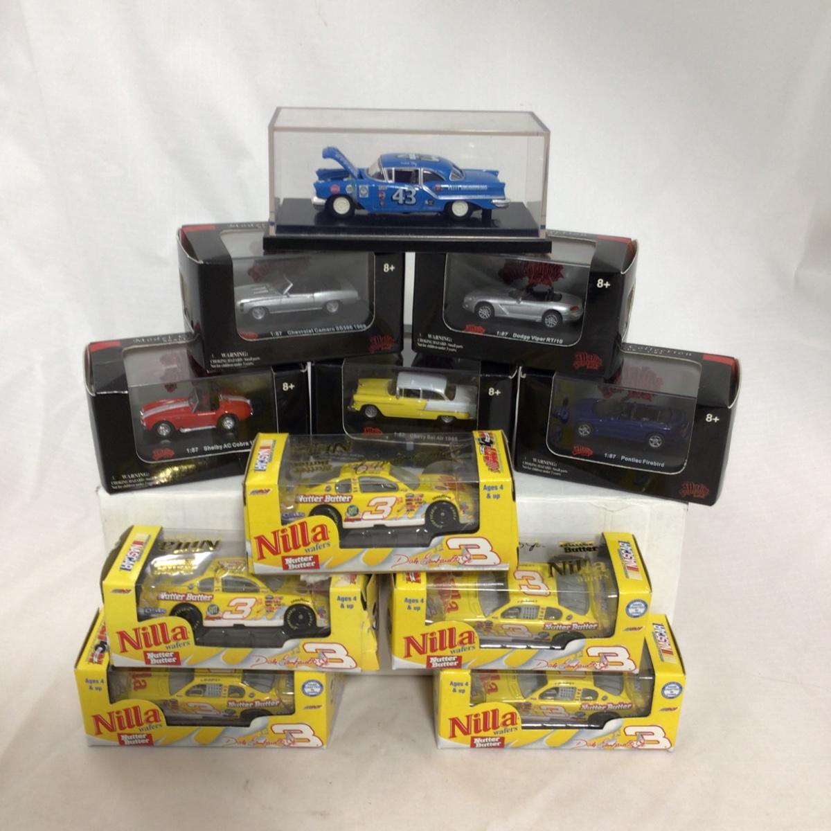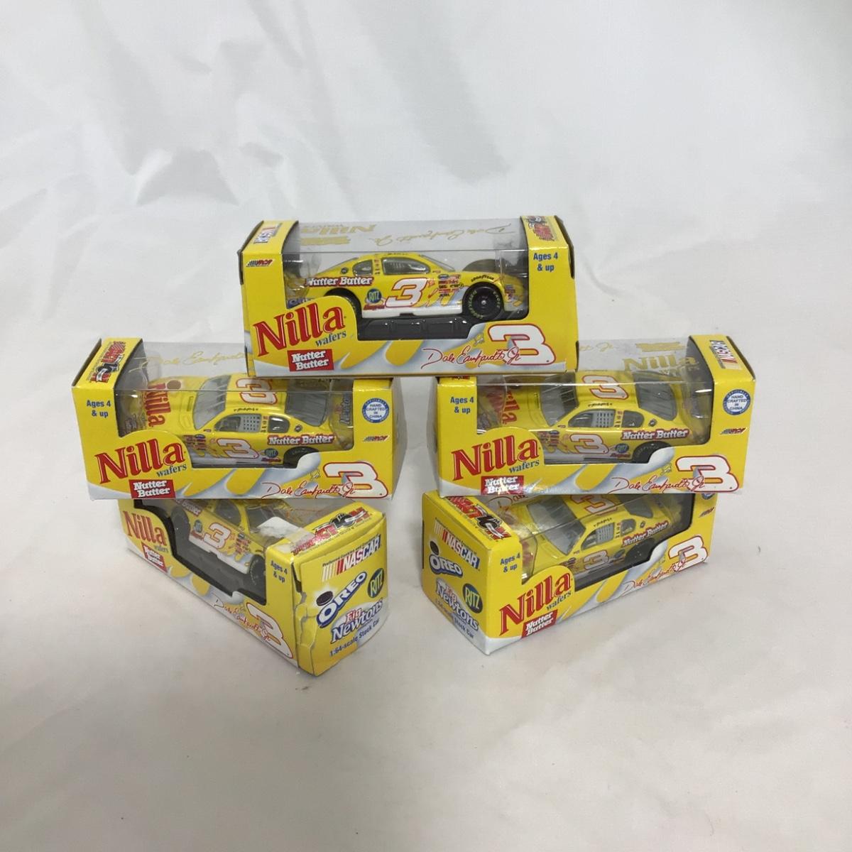 Mixed group of five #3 Nila Dale Earnhardt Jr. collector cars in box five different 1:84 scale car collectibles. And one #43 Car in clear acrylic display. Please see photos for details and condition.