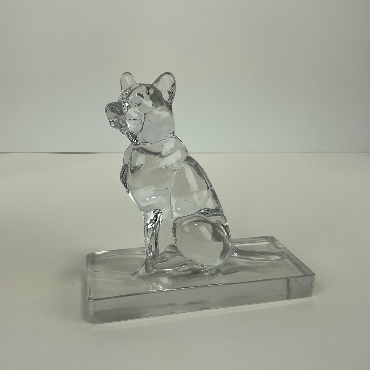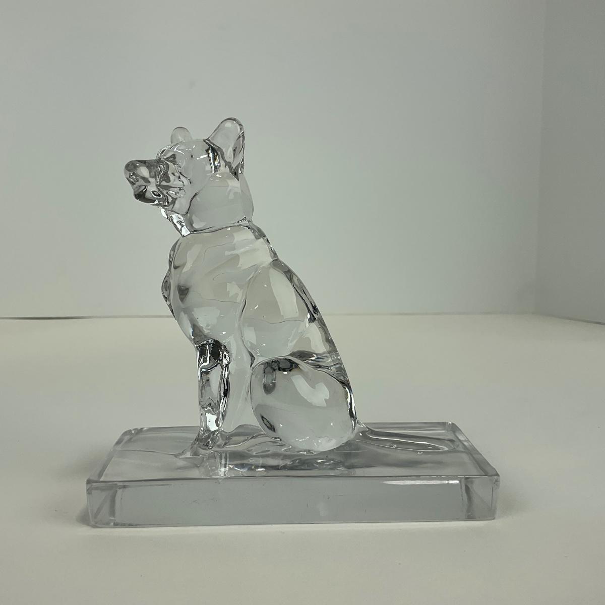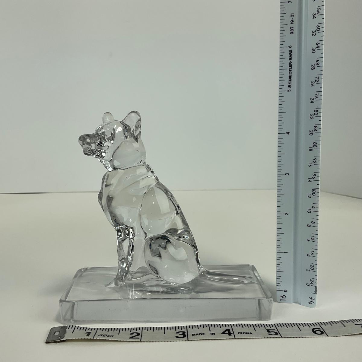 One vintage New Martinsville pressed Virginia glass German Shepherd Dog figure. This piece does have some scuffs, scratches, marks, or slight damage, but otherwise appears to be in great shape. Please see photos for details and condition. Any condition statement is given as a courtesy to a client, is an opinion, and should not be treated as a statement of fact. Reference to condition written, oral or within a condition report shall not be regarded as a full account of condition and may not include all defects, alterations, or restorations. Absence of a condition report does not imply a lot is flawless or lacking imperfections or damage. Katherine’s Auction & Appraisal Service shall have no responsibility for any error or omission. Returns shall not be accepted on the basis of condition. ::: Shipping is available on this lot. If you require shipping you must let us know at the close of the auction. We will coordinate with you after the item has been won. Shipping fees will include insurance up to or exceeding the value of all items being mailed. If you have any questions regarding this lot please contact the auctioneer either via this website, by direct email or by phone. PICK UP TIMES and other important information can be found in the TERMS and DESCRIPTION of the auction. Please take a look for pertinent information. Thanks!