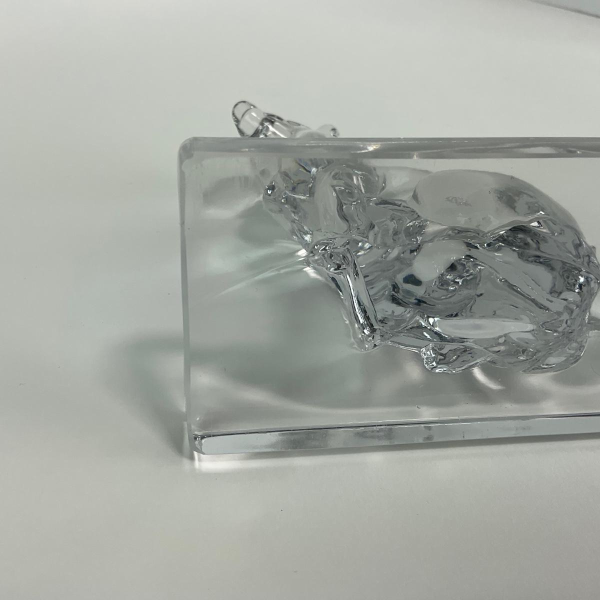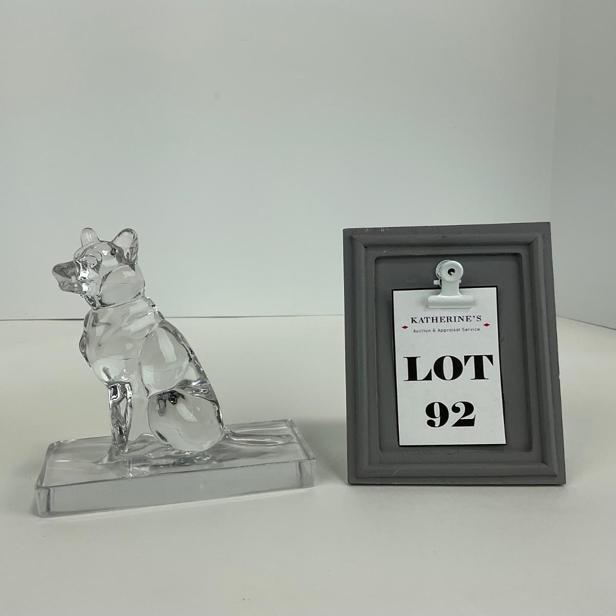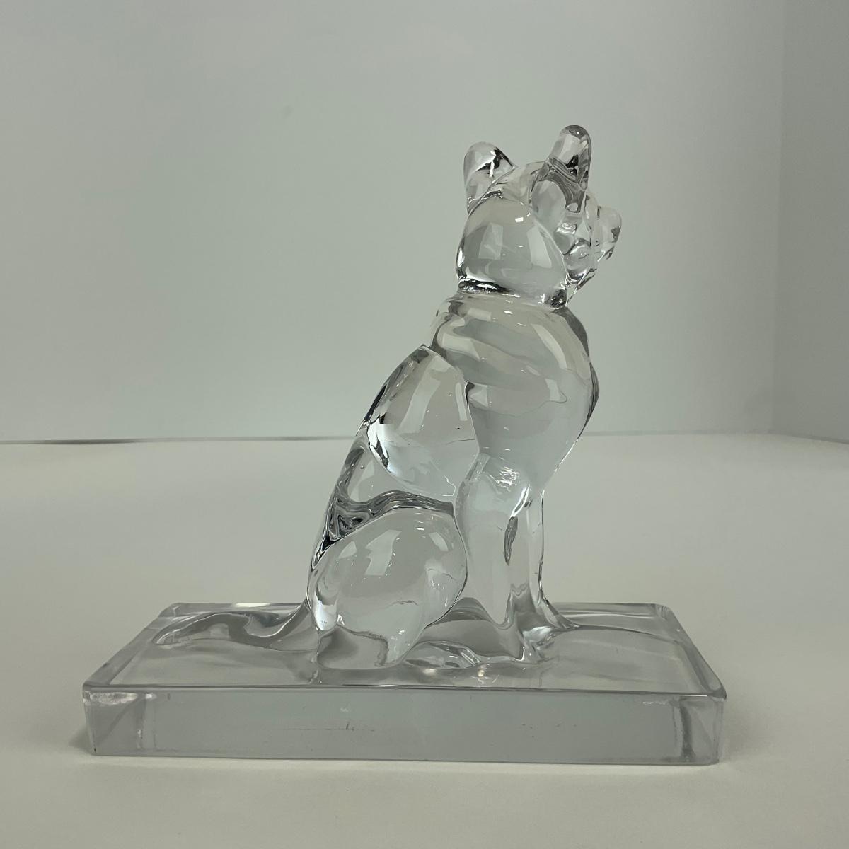 One vintage New Martinsville pressed Virginia glass German Shepherd Dog figure. This piece does have some scuffs, scratches, marks, or slight damage, but otherwise appears to be in great shape. Please see photos for details and condition. Any condition statement is given as a courtesy to a client, is an opinion, and should not be treated as a statement of fact. Reference to condition written, oral or within a condition report shall not be regarded as a full account of condition and may not include all defects, alterations, or restorations. Absence of a condition report does not imply a lot is flawless or lacking imperfections or damage. Katherine’s Auction & Appraisal Service shall have no responsibility for any error or omission. Returns shall not be accepted on the basis of condition. ::: Shipping is available on this lot. If you require shipping you must let us know at the close of the auction. We will coordinate with you after the item has been won. Shipping fees will include insurance up to or exceeding the value of all items being mailed. If you have any questions regarding this lot please contact the auctioneer either via this website, by direct email or by phone. PICK UP TIMES and other important information can be found in the TERMS and DESCRIPTION of the auction. Please take a look for pertinent information. Thanks!