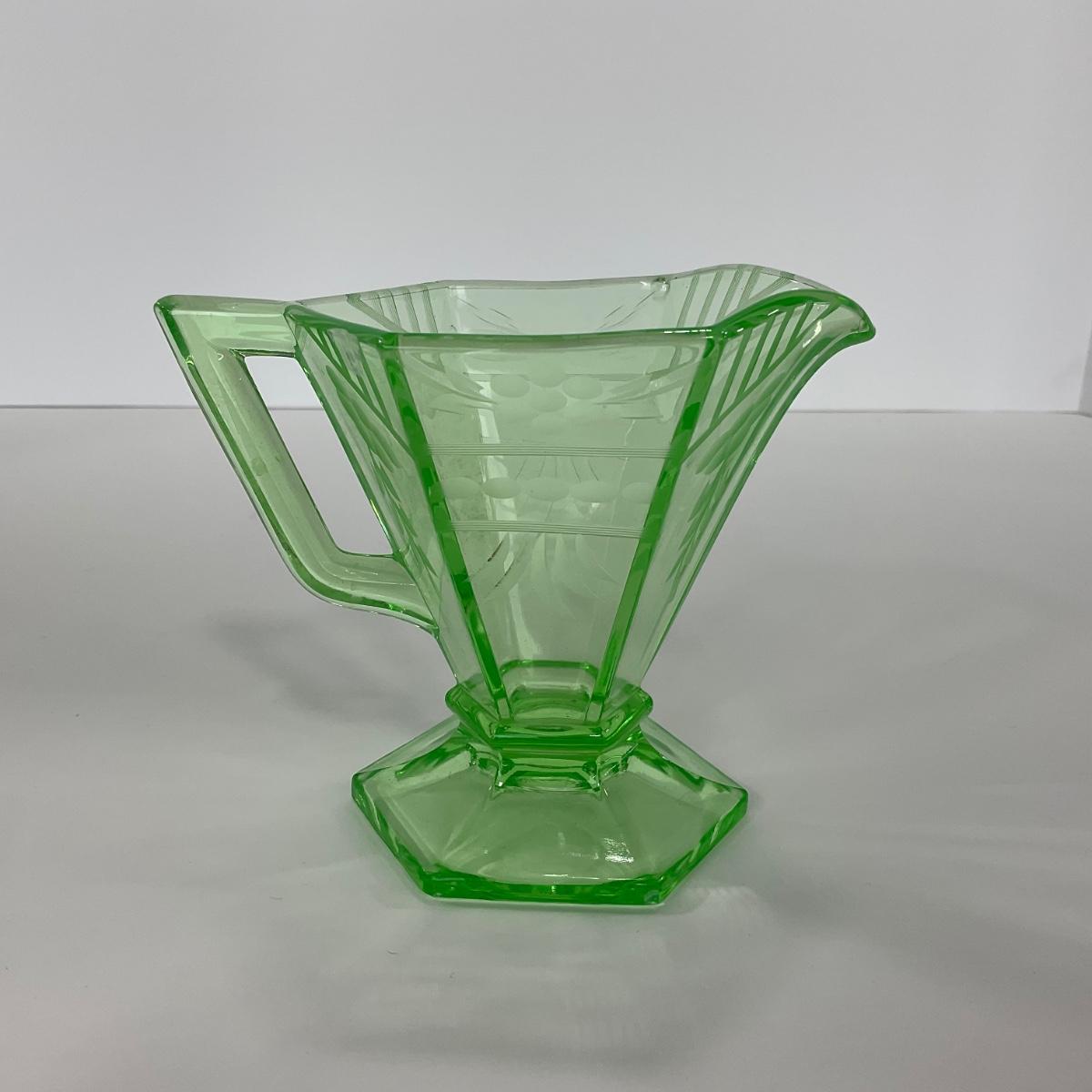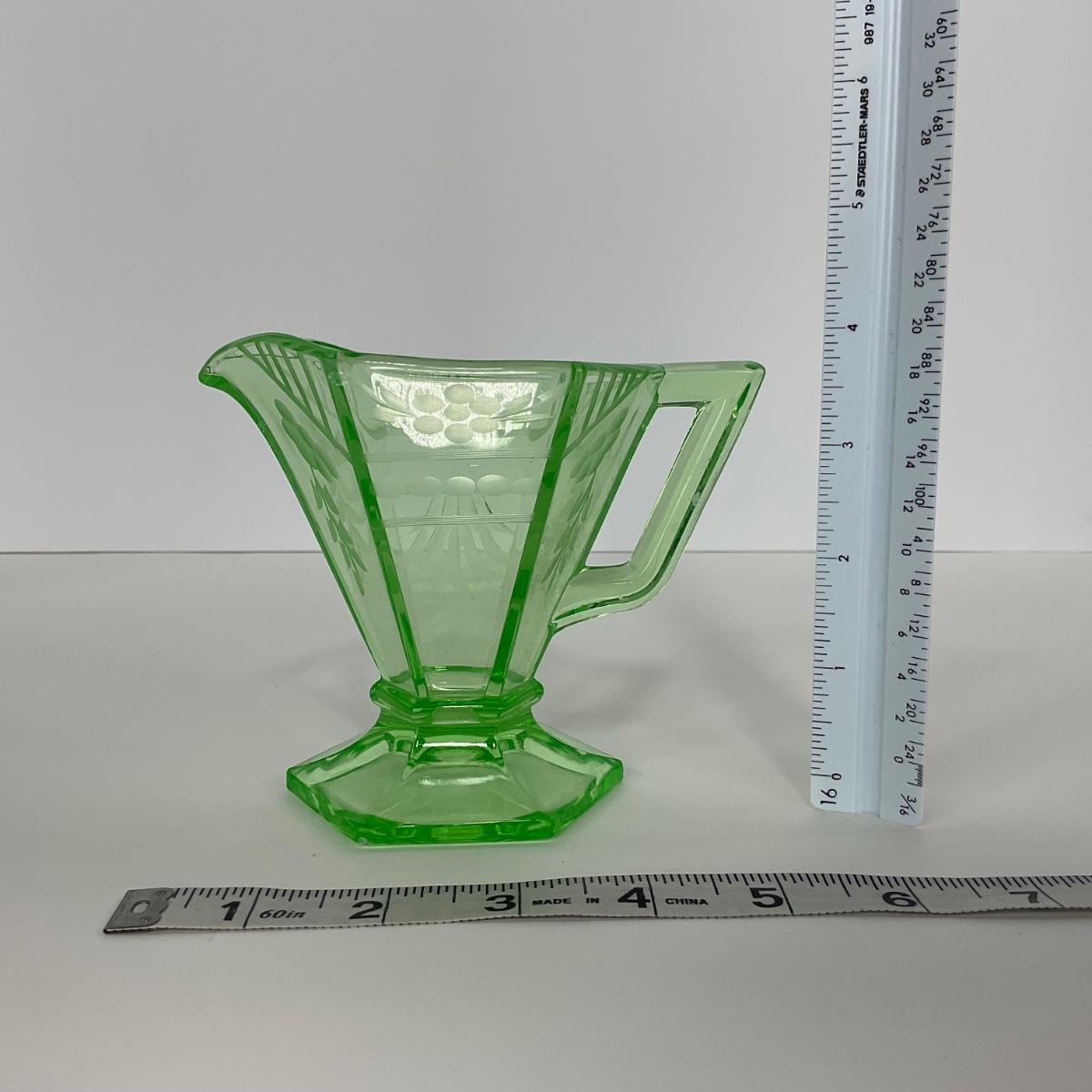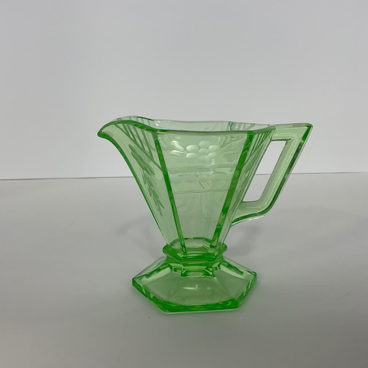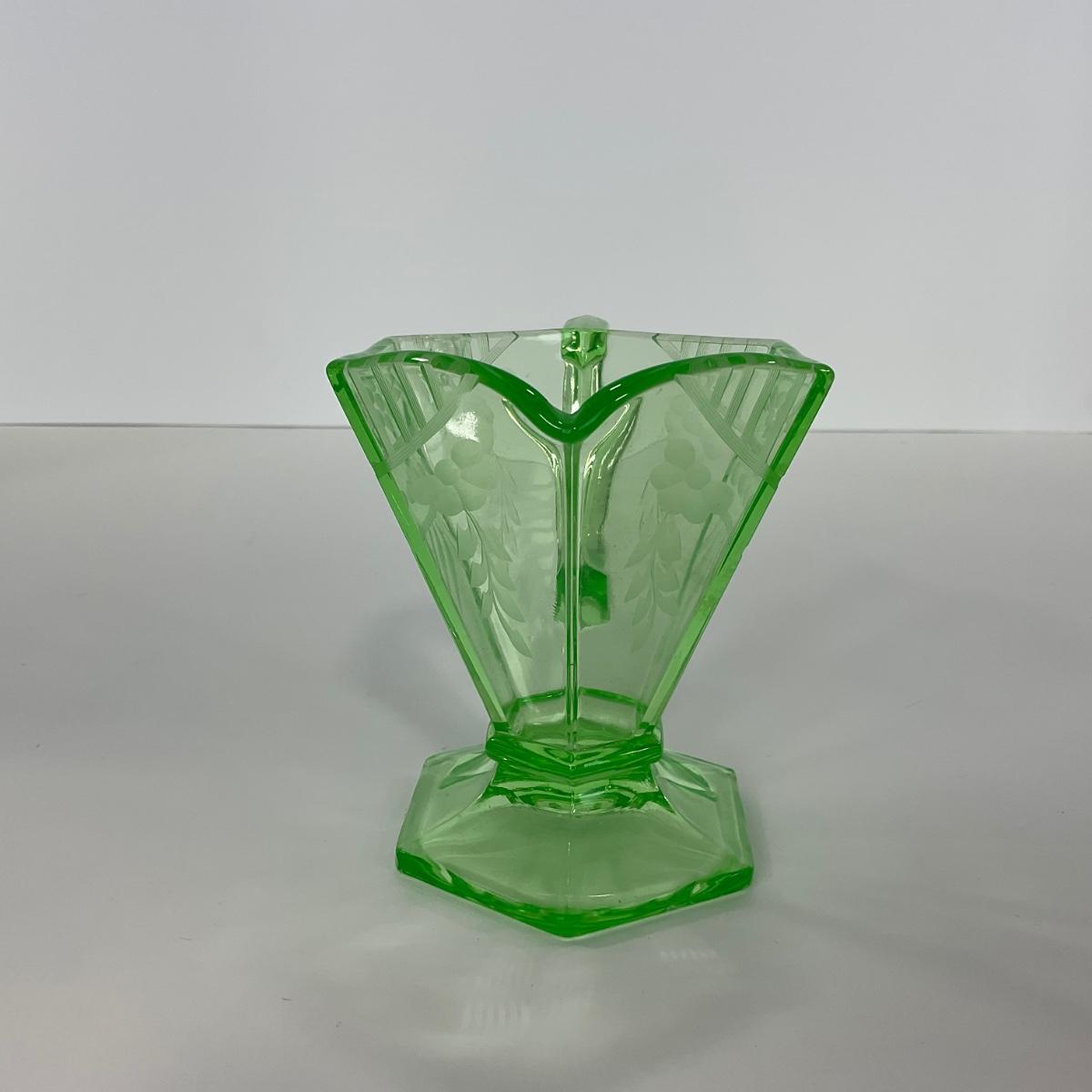 -92- URANIUM | Etched Green Depression Glass Creamer