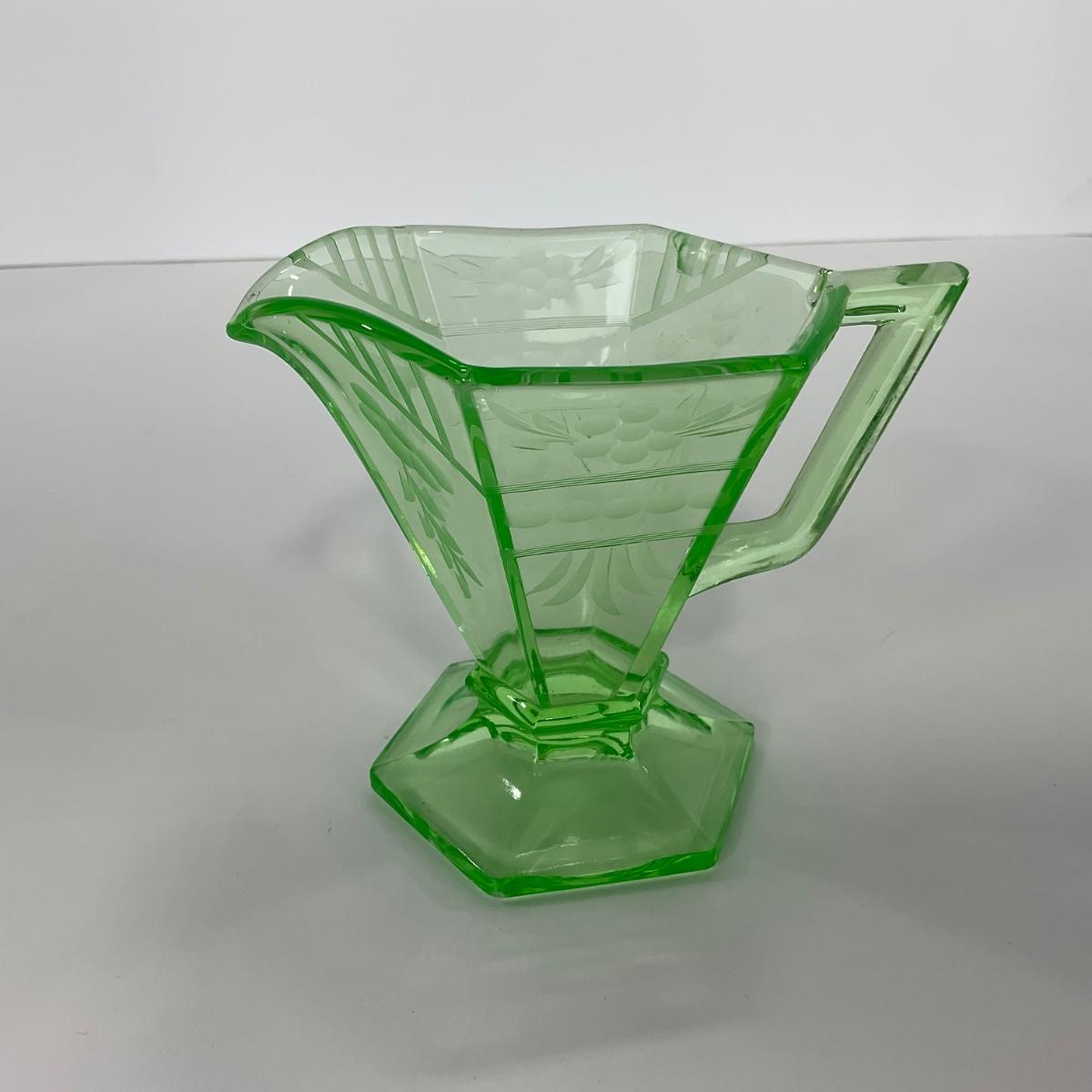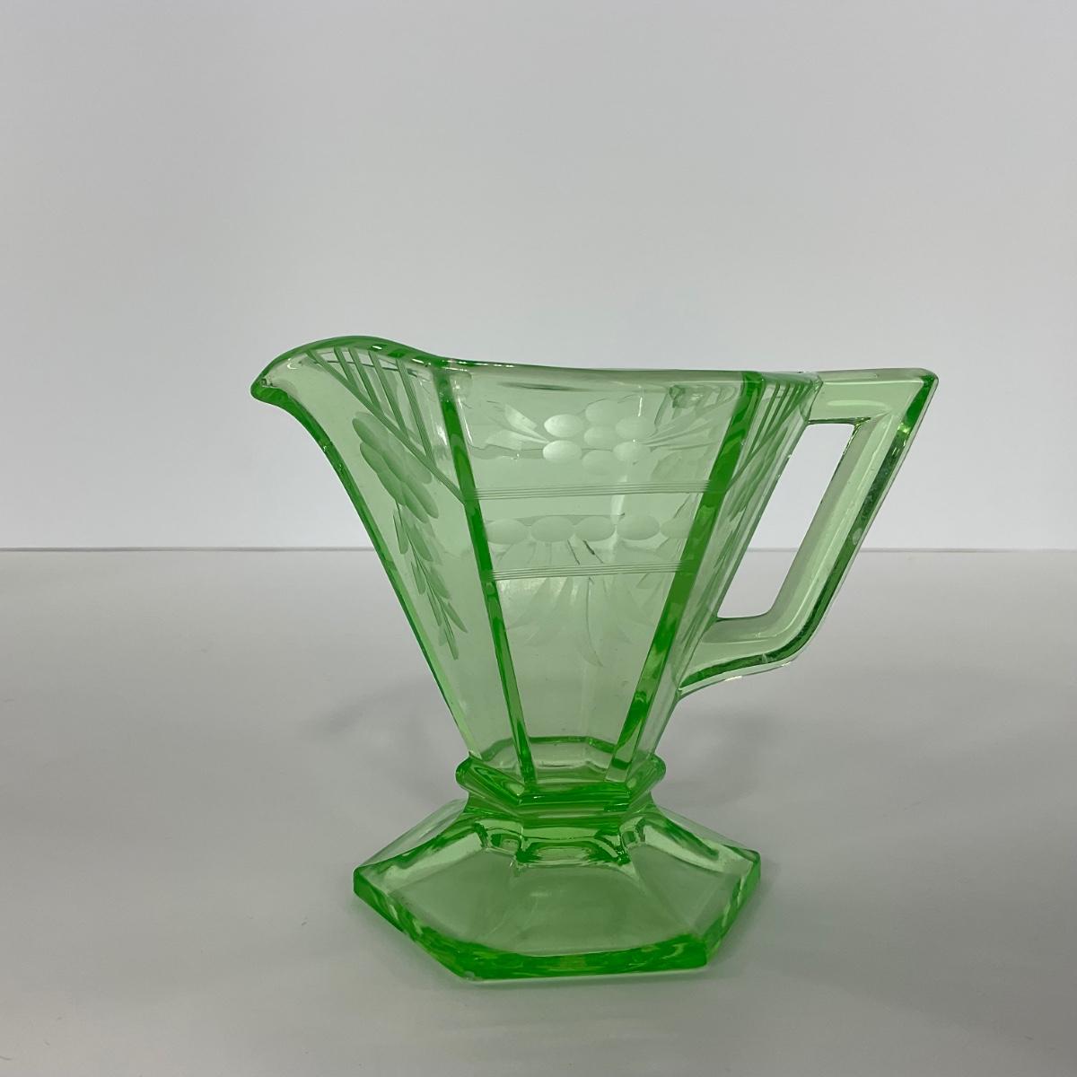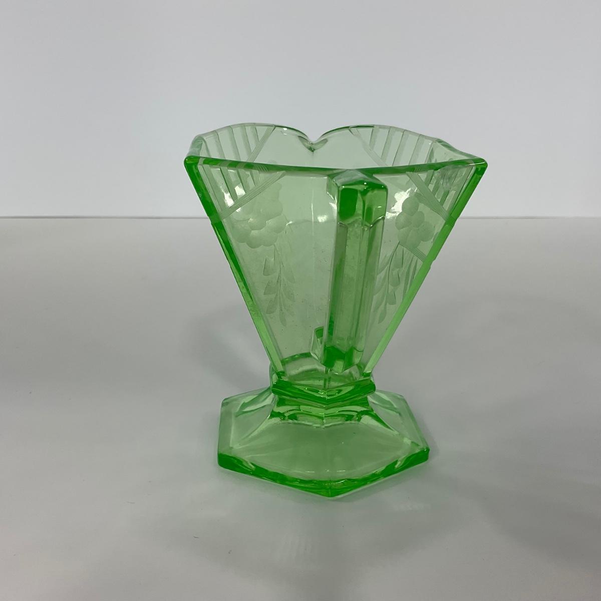 -92- URANIUM | Etched Green Depression Glass Creamer