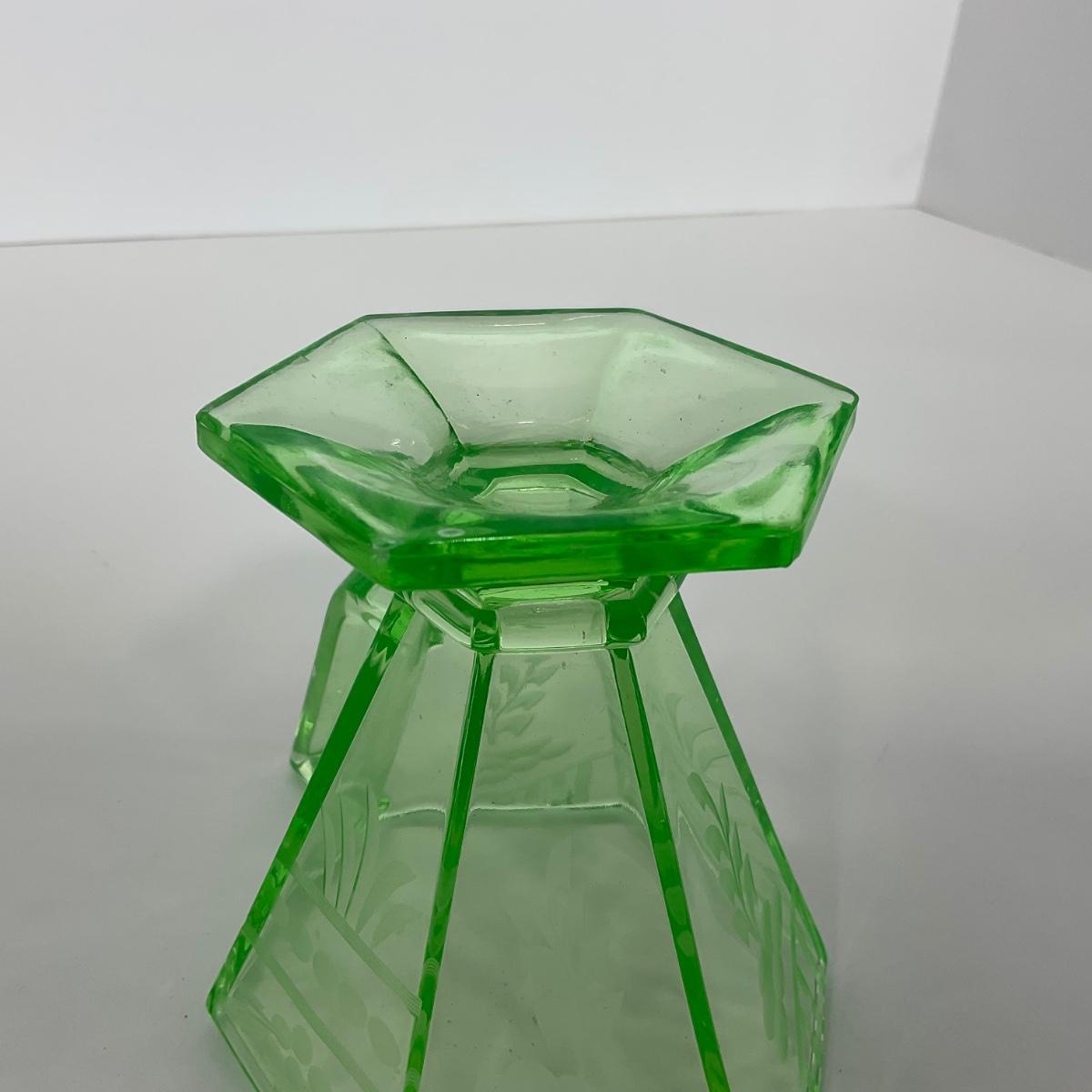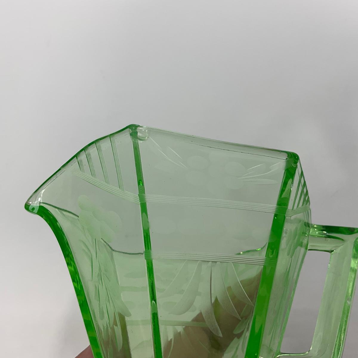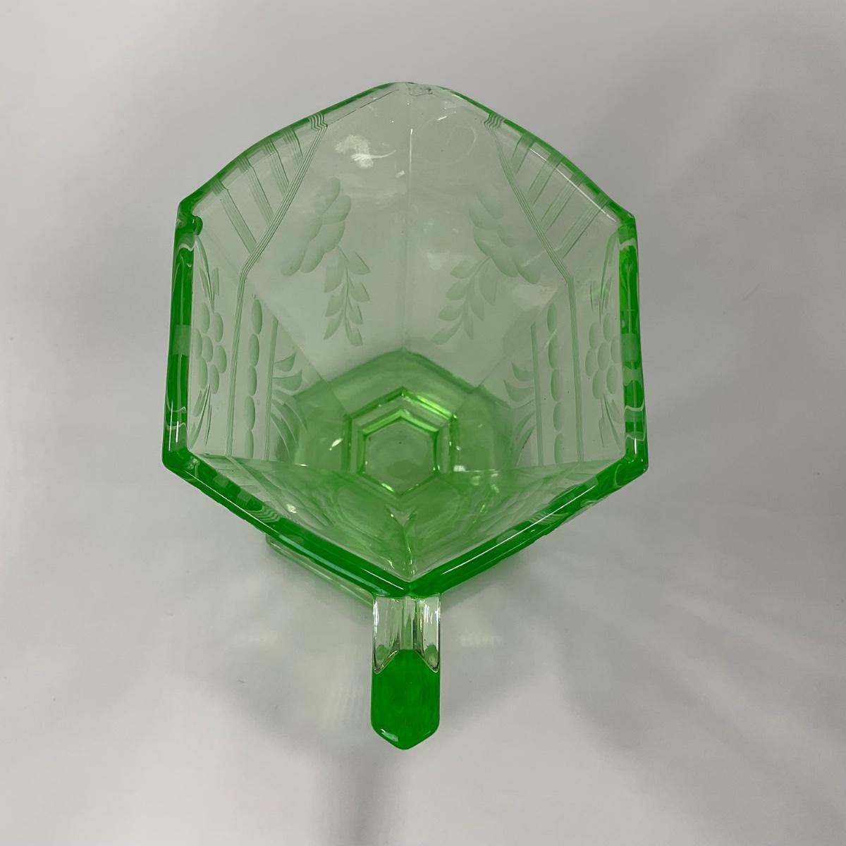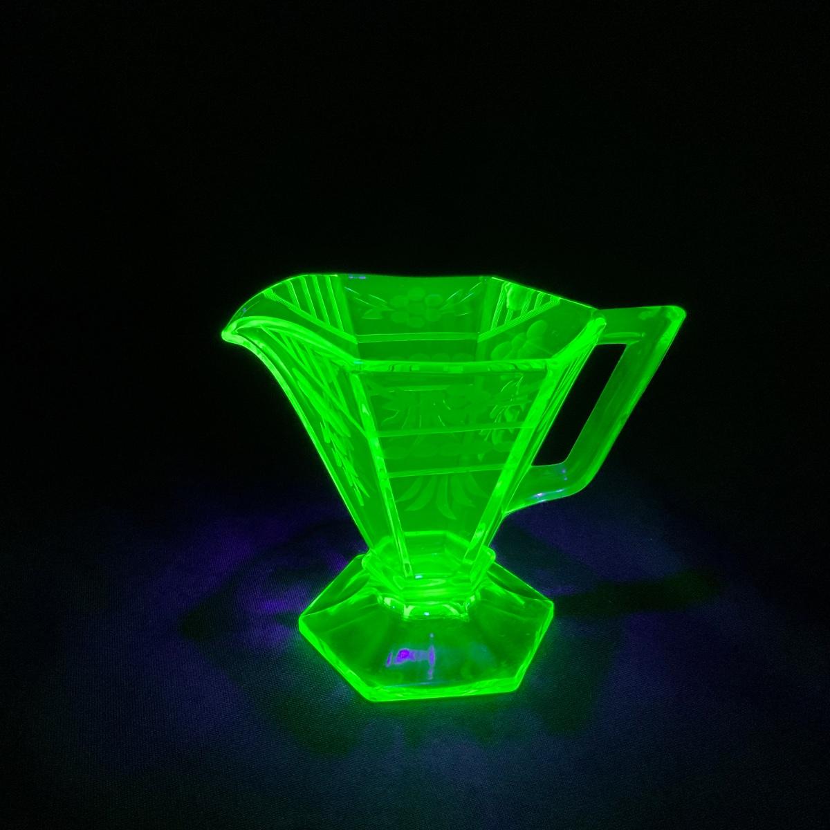 -92- URANIUM | Etched Green Depression Glass Creamer