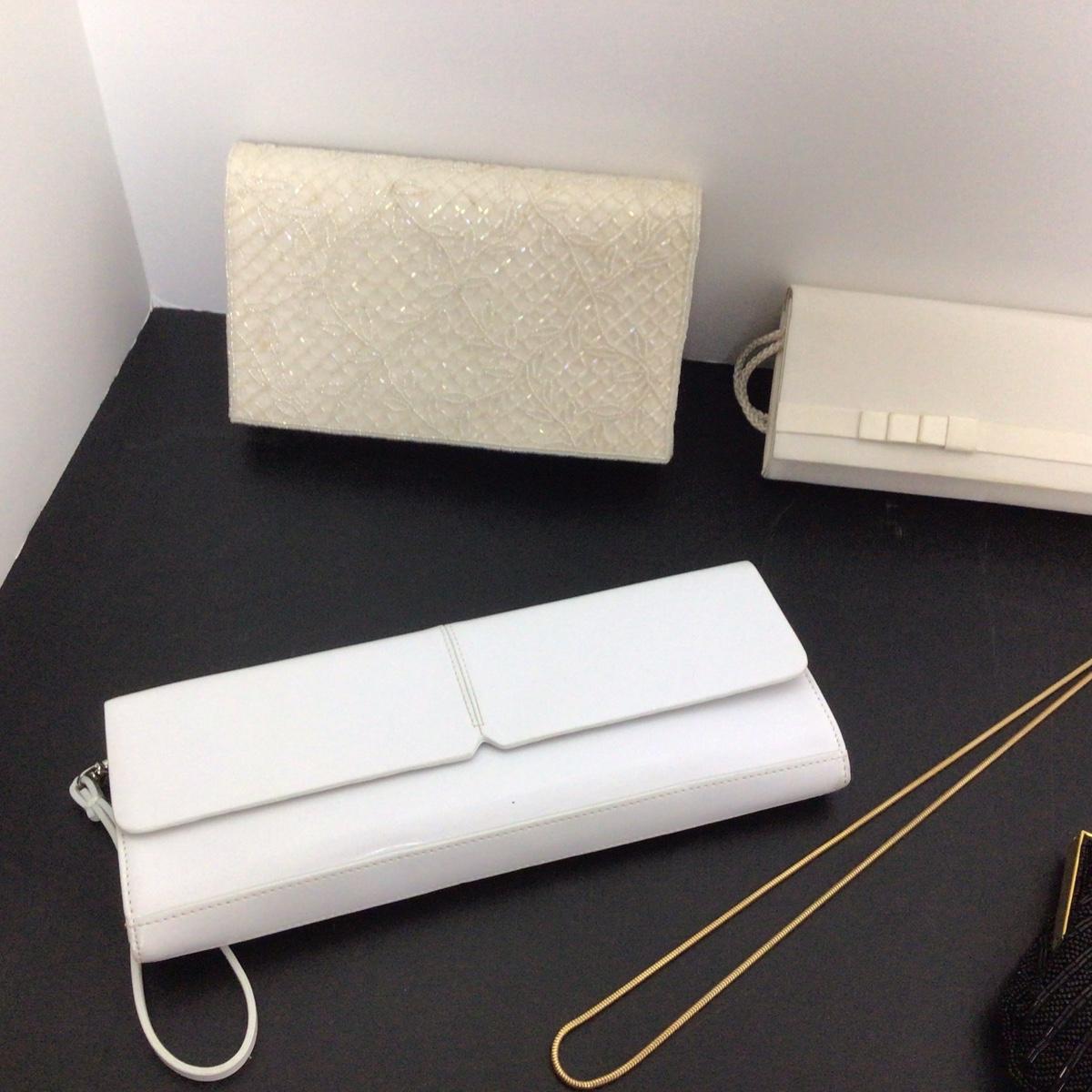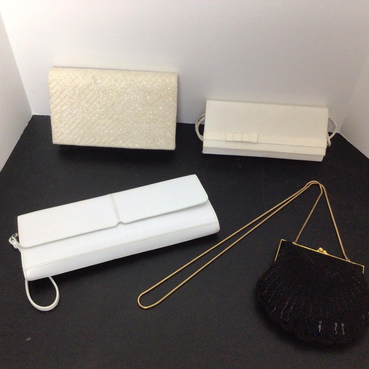 There are 4 bags in the lot, 3 are white and one is black beaded.