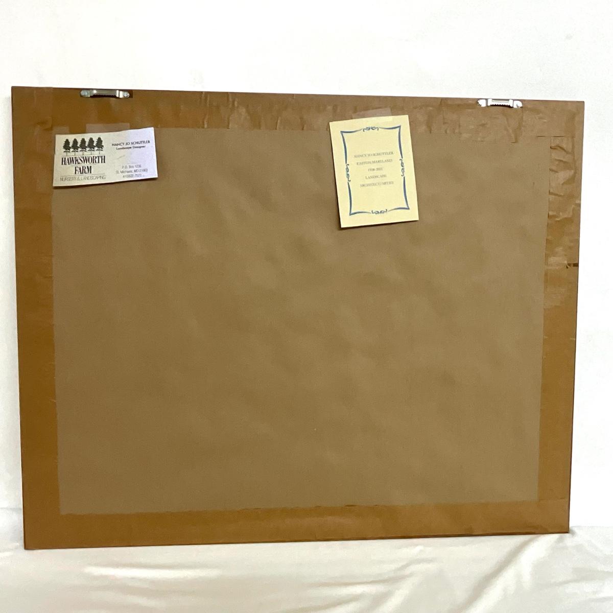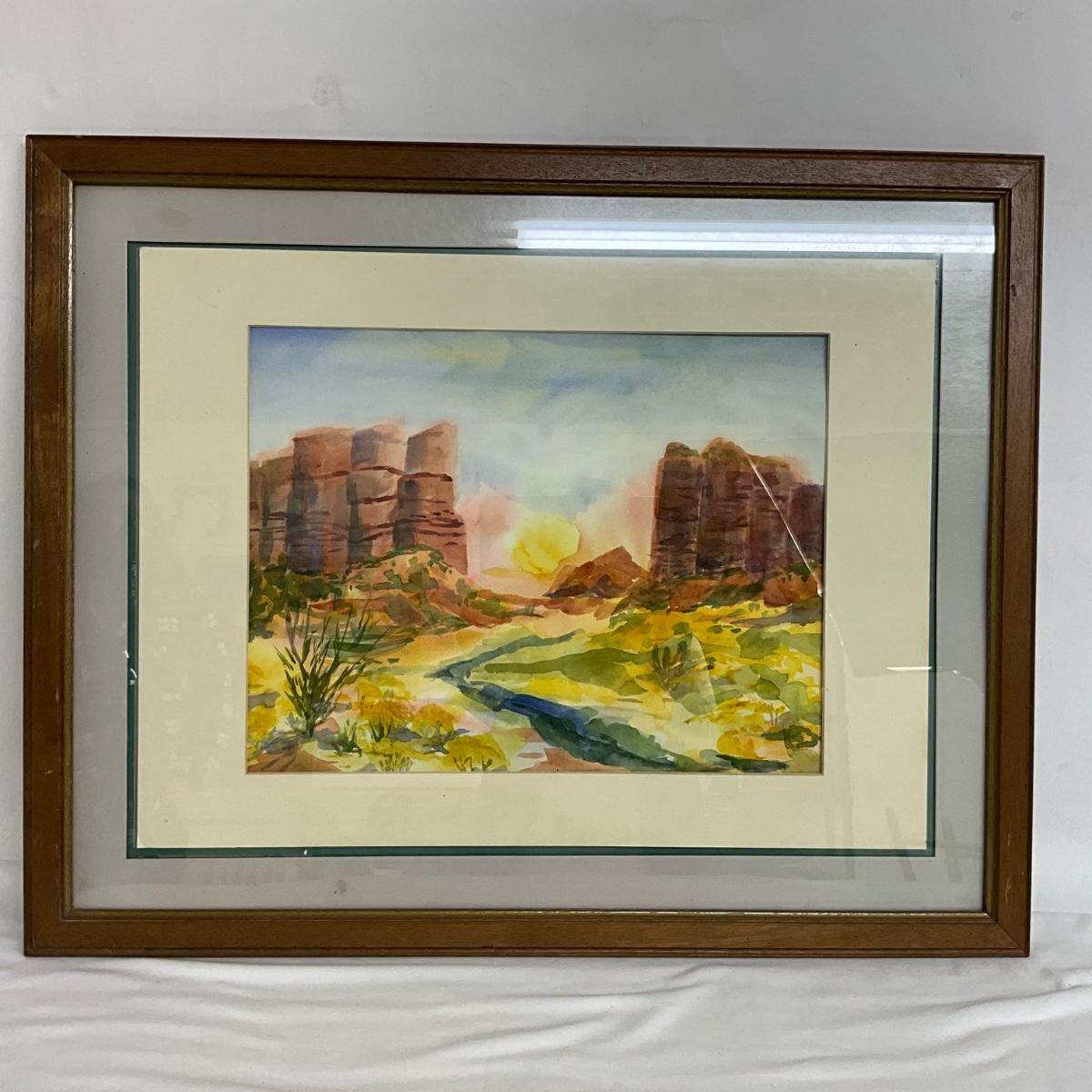 The watercolor is matted and framed, measures 30"w x 24.5"h, not signed by done by Nancy Jo Schuttler.